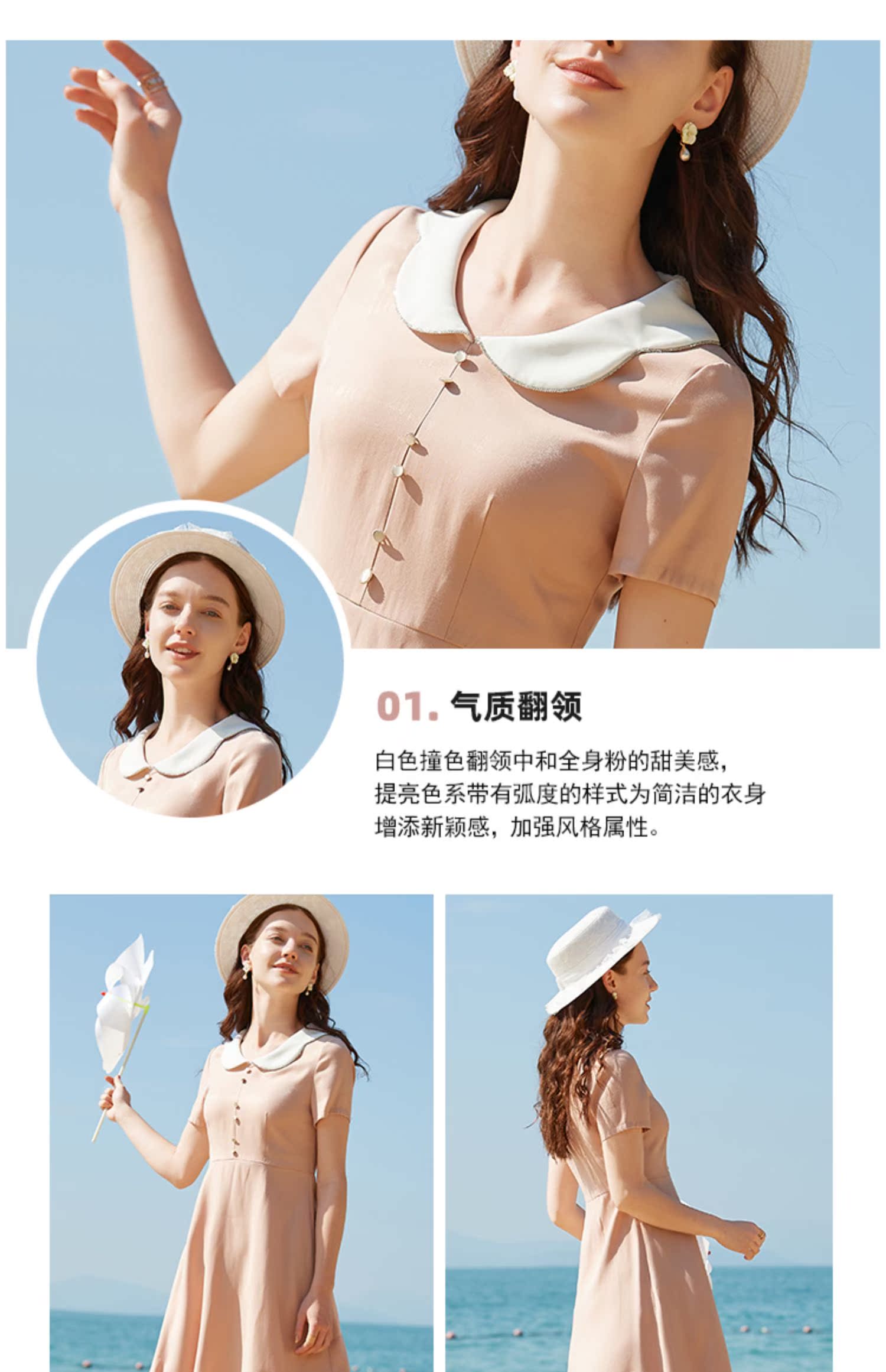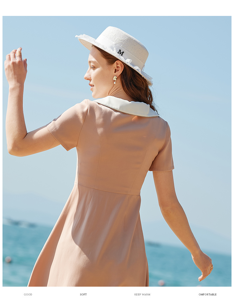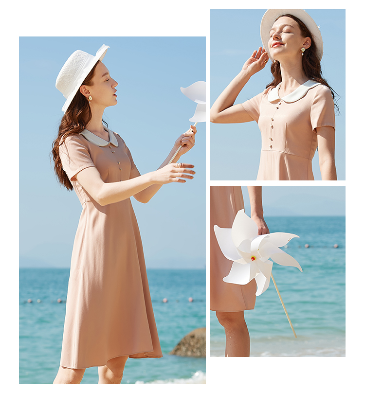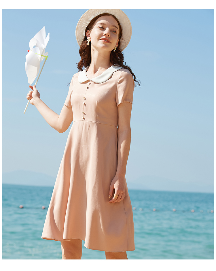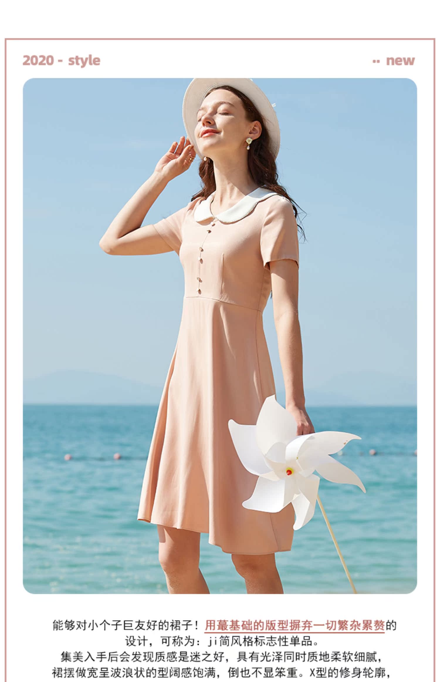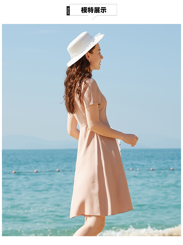 欧芮儿2020夏装新款粉色短袖连衣裙女中长款气质显瘦收腰a字裙潮