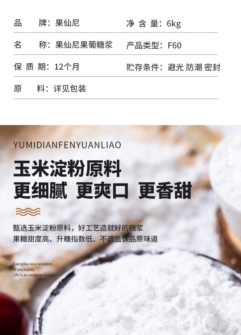 6kg 果仙尼 F60果葡糖浆 果糖 柠檬果茶奶茶咖啡店商用饮品原料