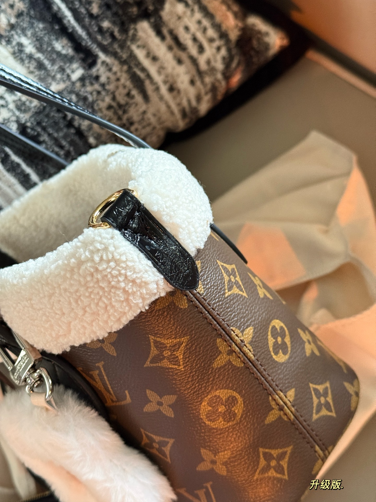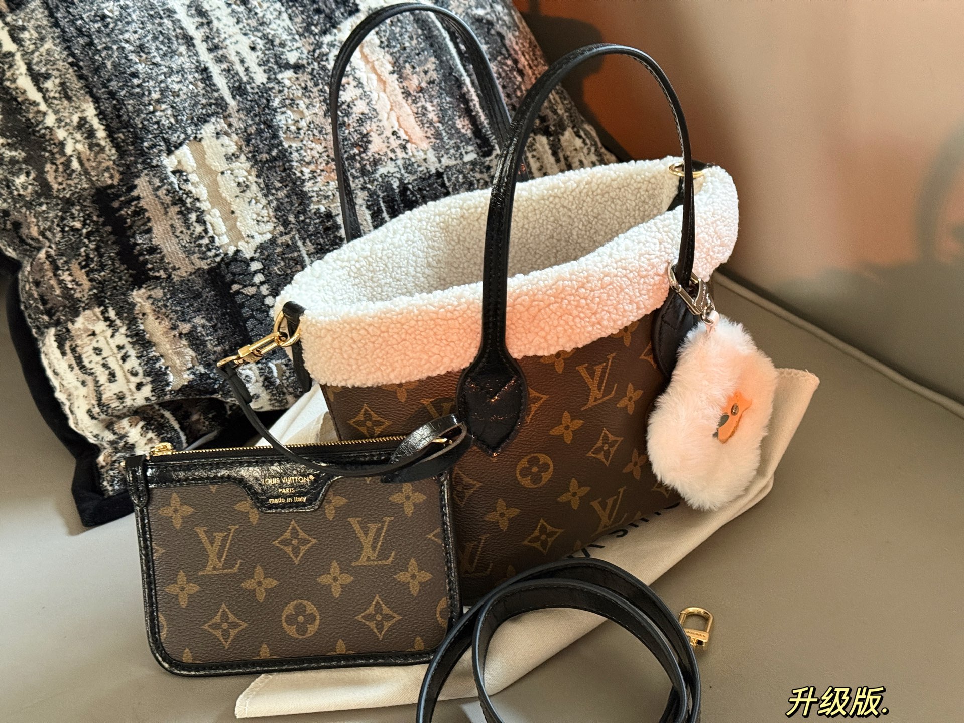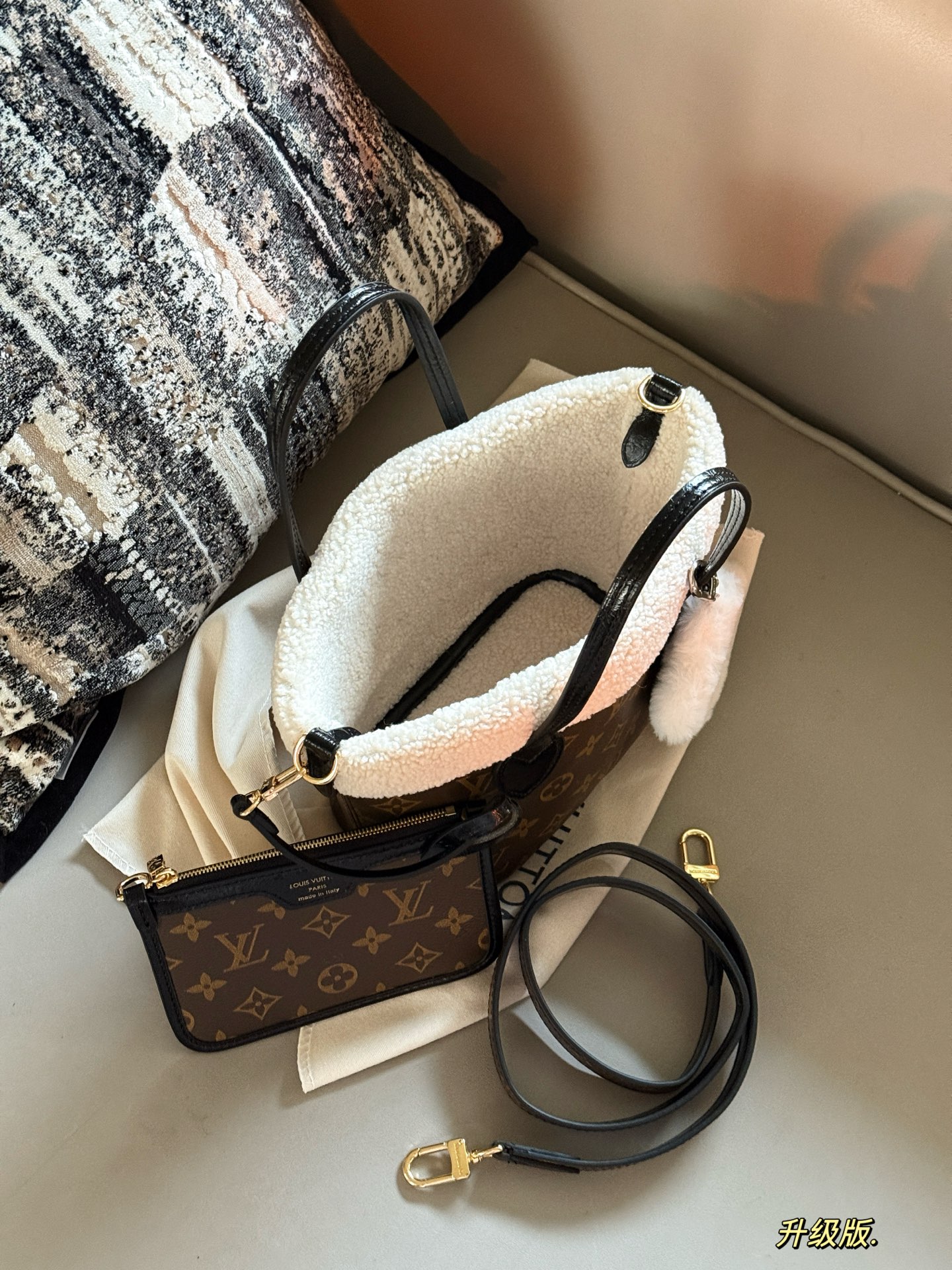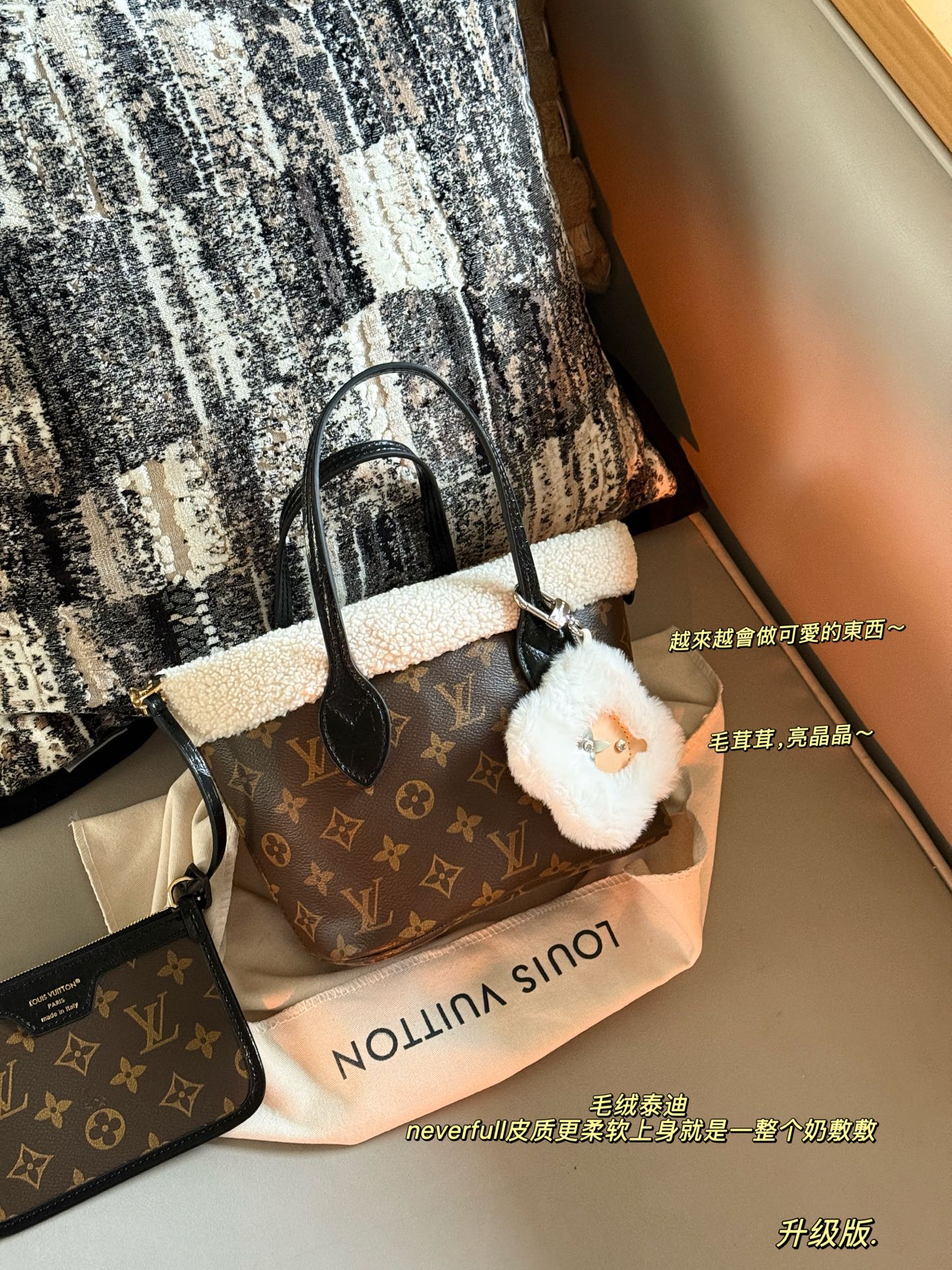 顶级免税版 VIP专柜体验 收到即官网同样 LV 2025滑雪系列 Neverfull bb 很适合冬季,毛茸茸滴 而且多种背法,可以两面用 比很多包包都实用! 配置✅毛茸茸的挂件