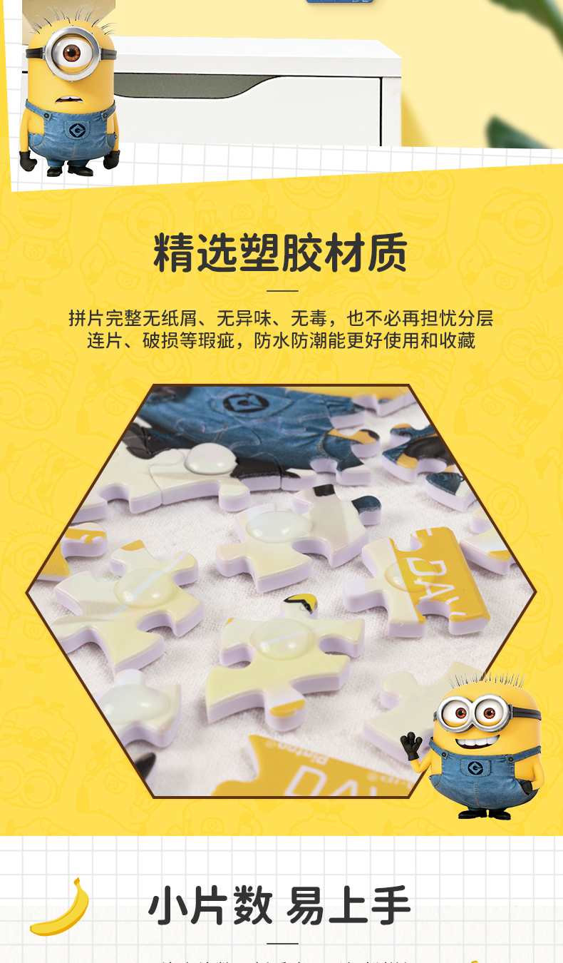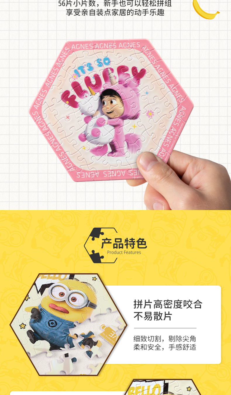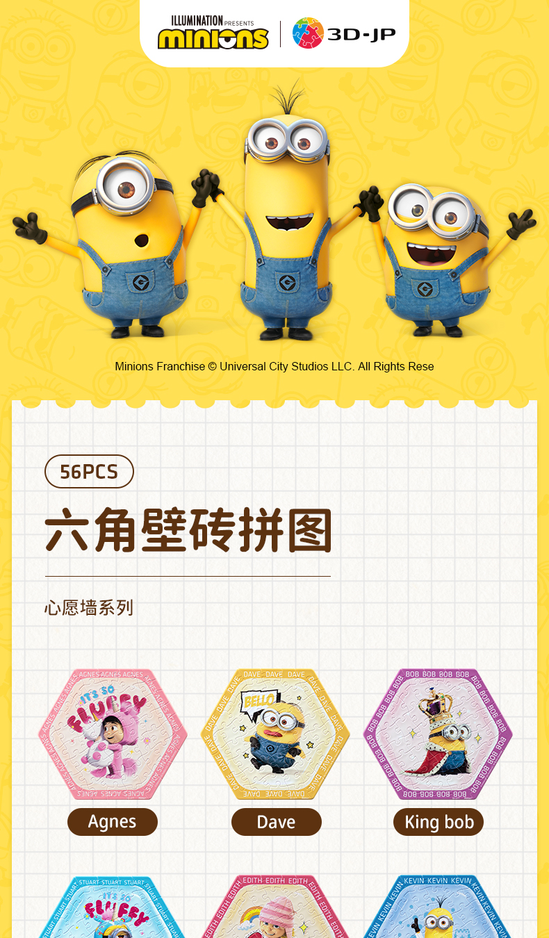 【折扣商品 不退不换】56片 六角壁砖拼图 塑料拼图 小黄人-心愿墙系列