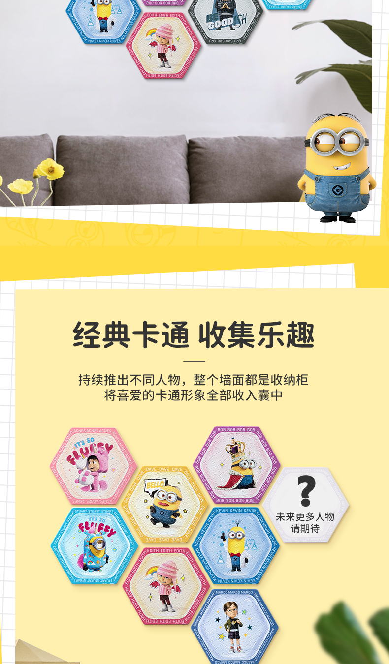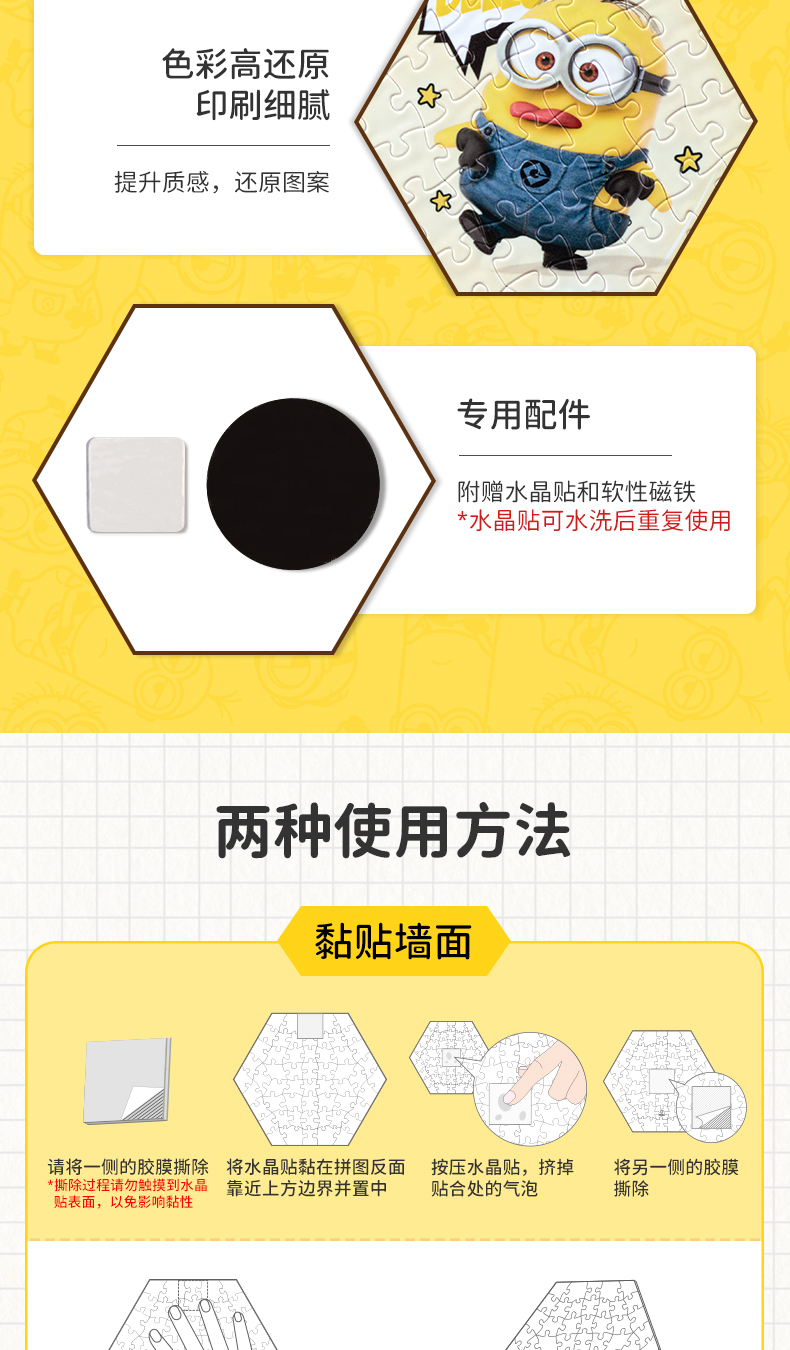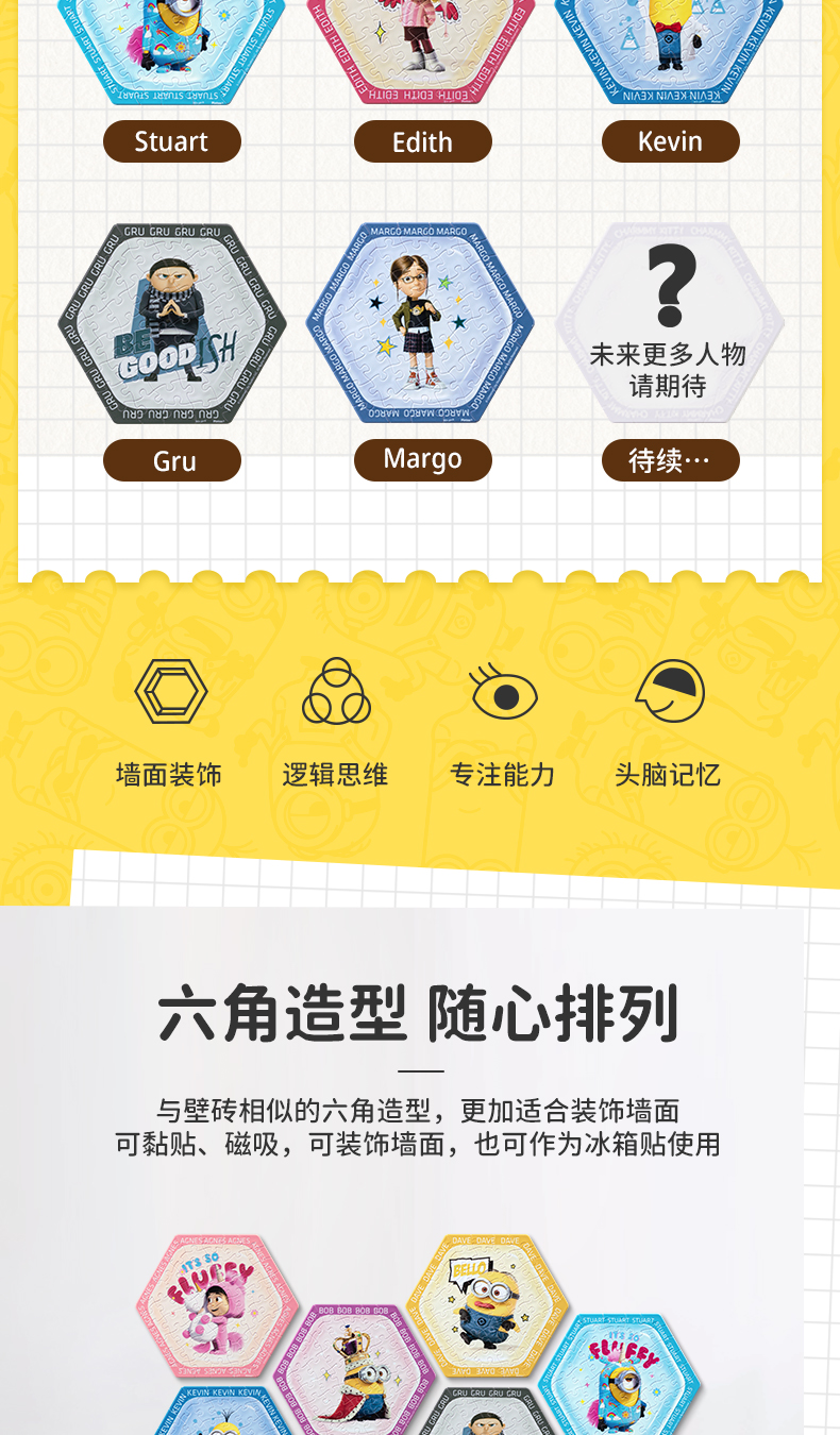 【折扣商品 不退不换】56片 六角壁砖拼图 塑料拼图 小黄人-心愿墙系列