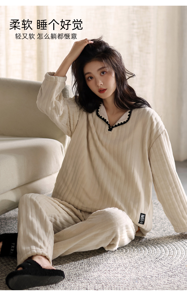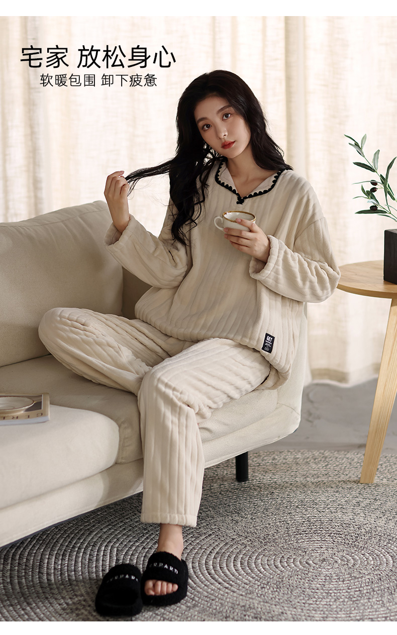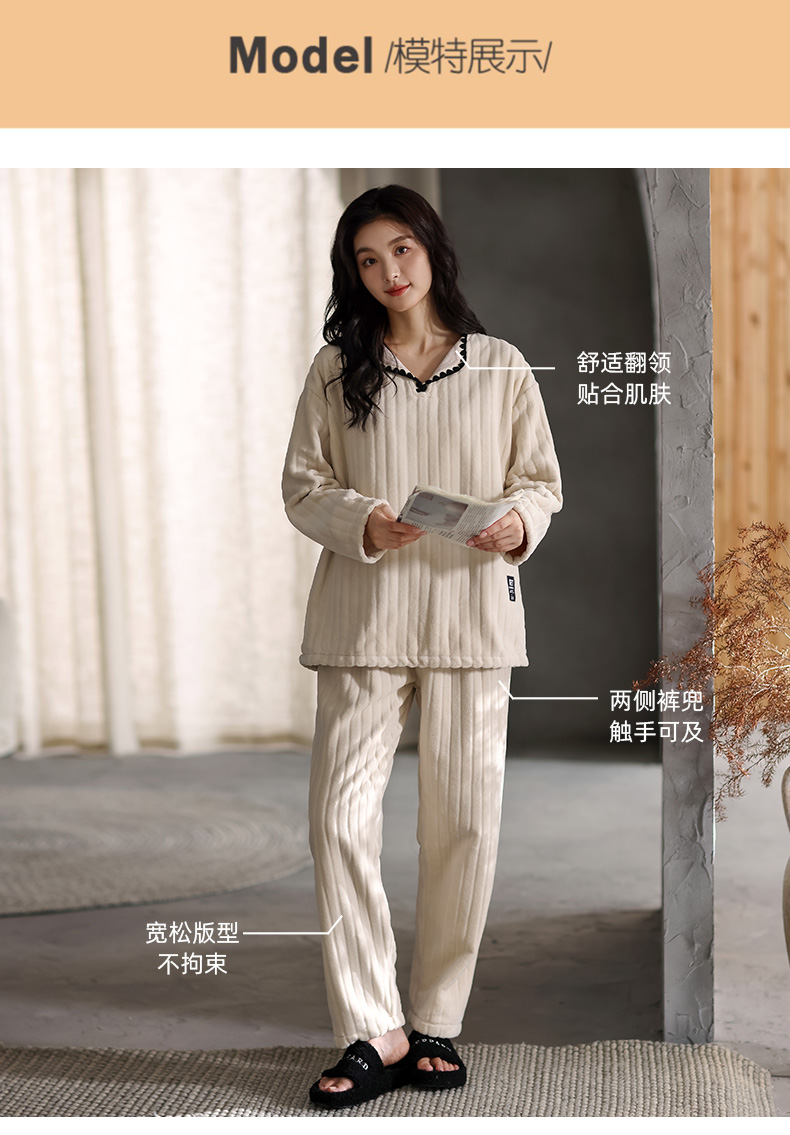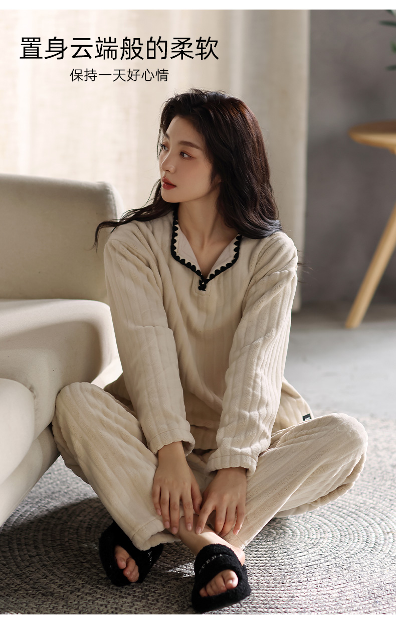 【冬季迎新】洁丽雅女士保暖珊瑚绒家居服加绒加厚亲肤睡衣套装女