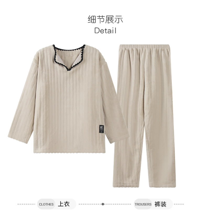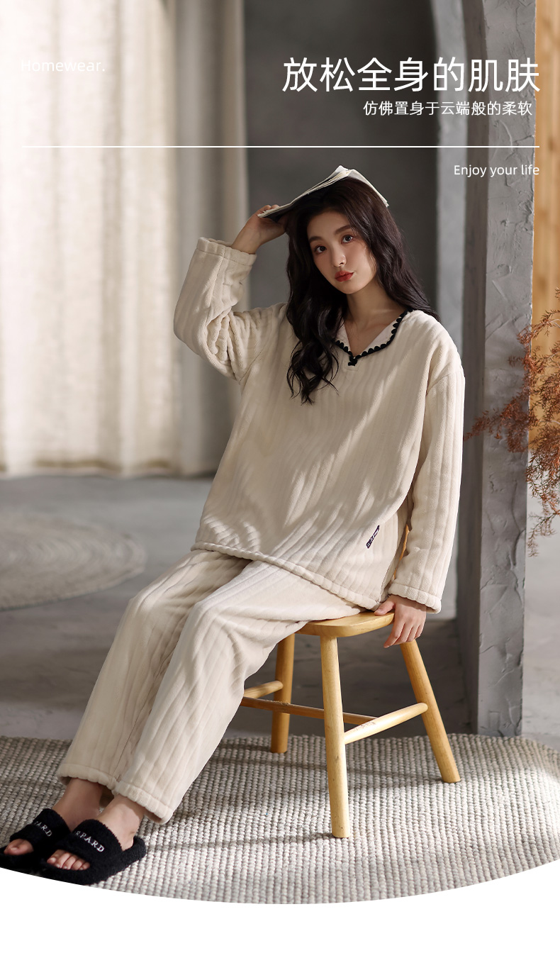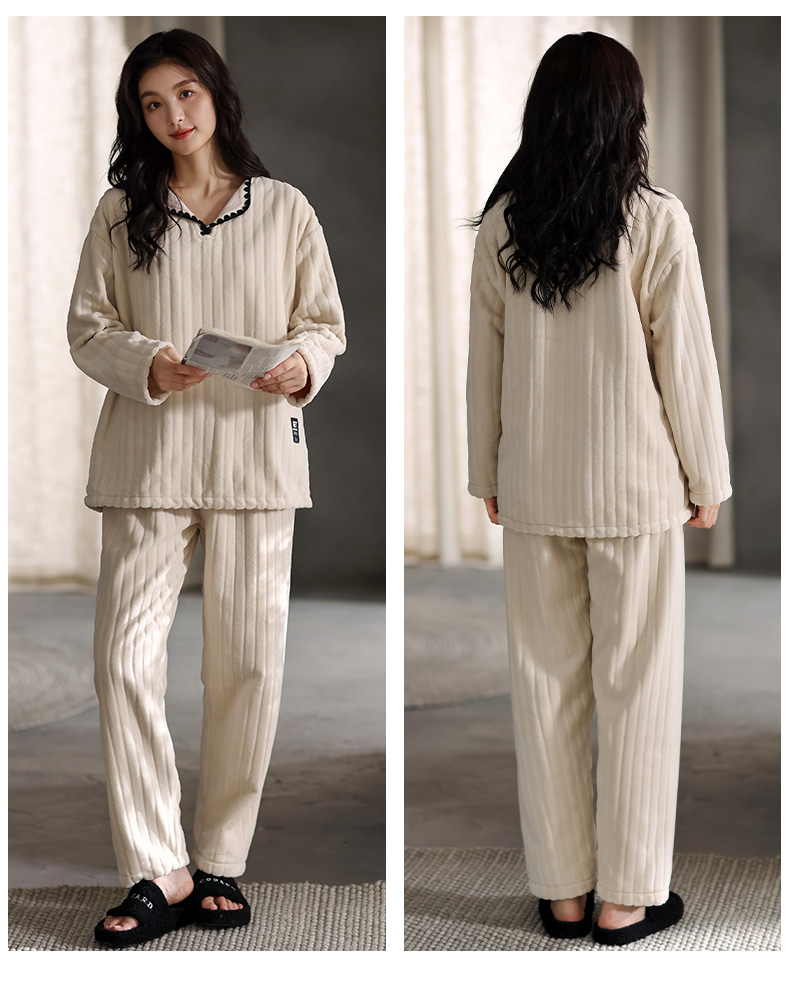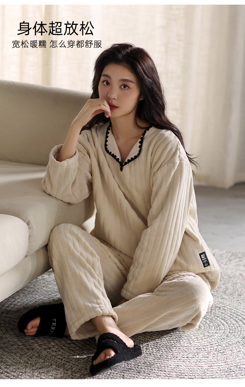 【冬季迎新】洁丽雅女士保暖珊瑚绒家居服加绒加厚亲肤睡衣套装女