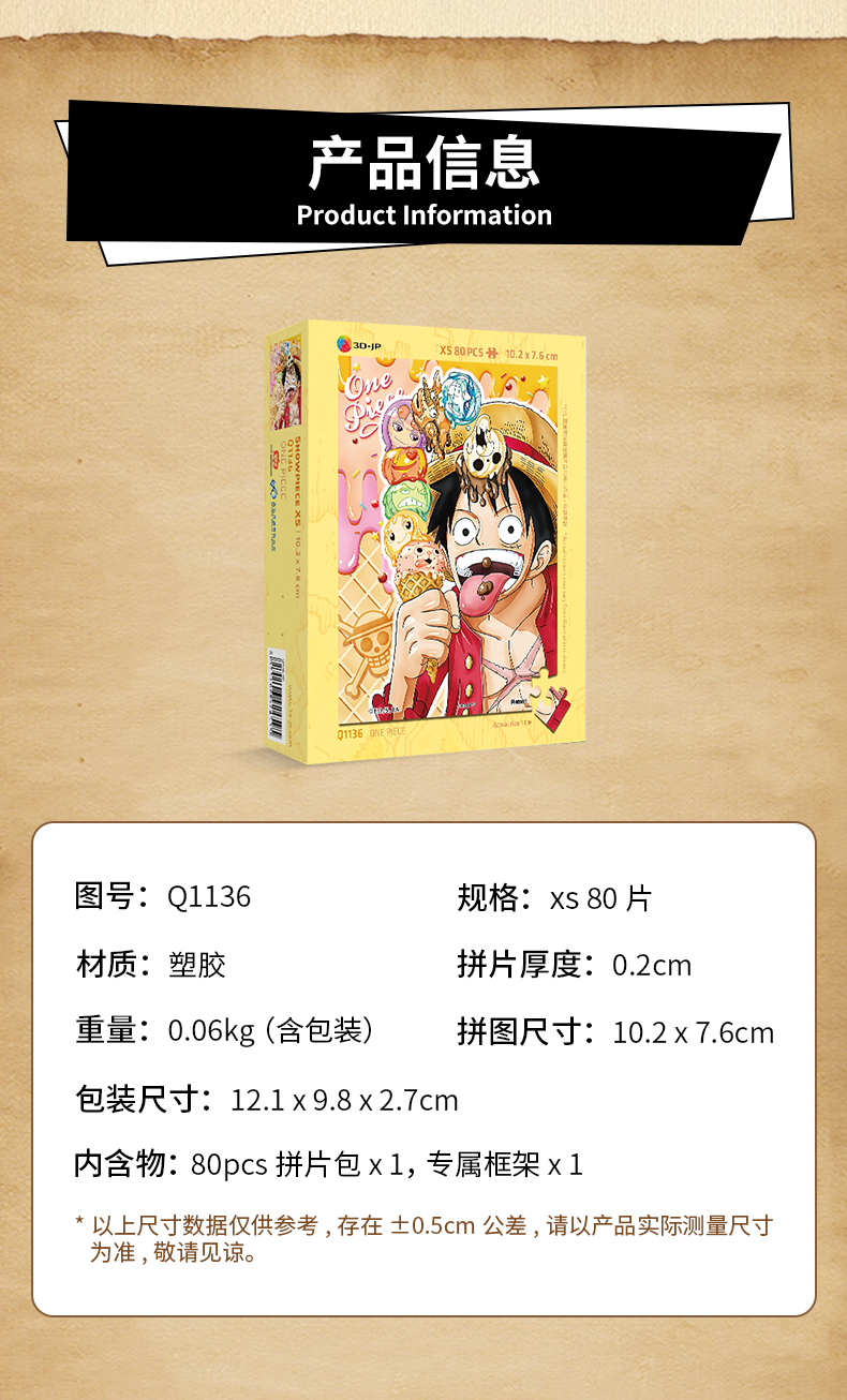 【折扣商品 不退不换】80片 迷你拼图 Q1136 ONE PIECE-Luffy with Ice Cream