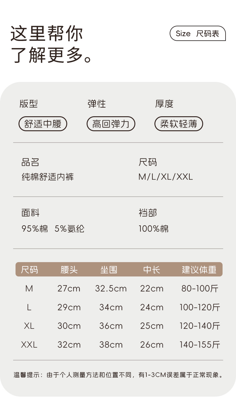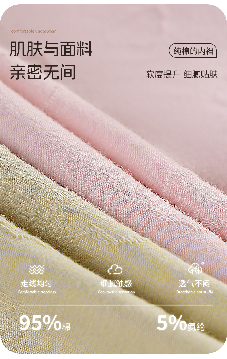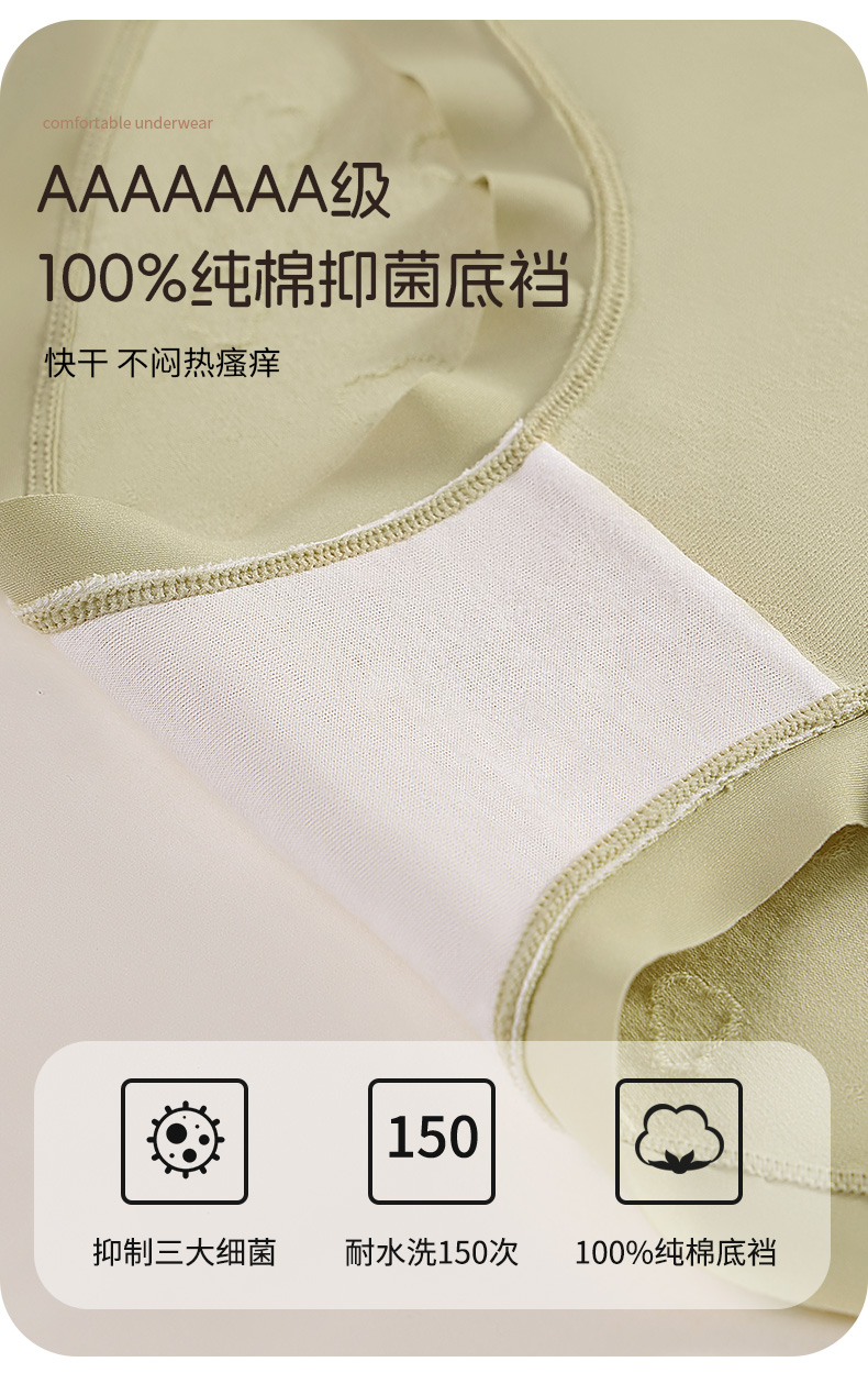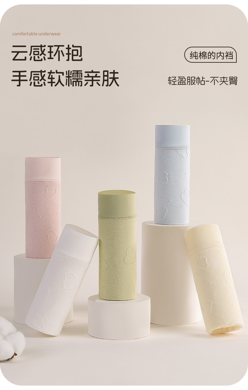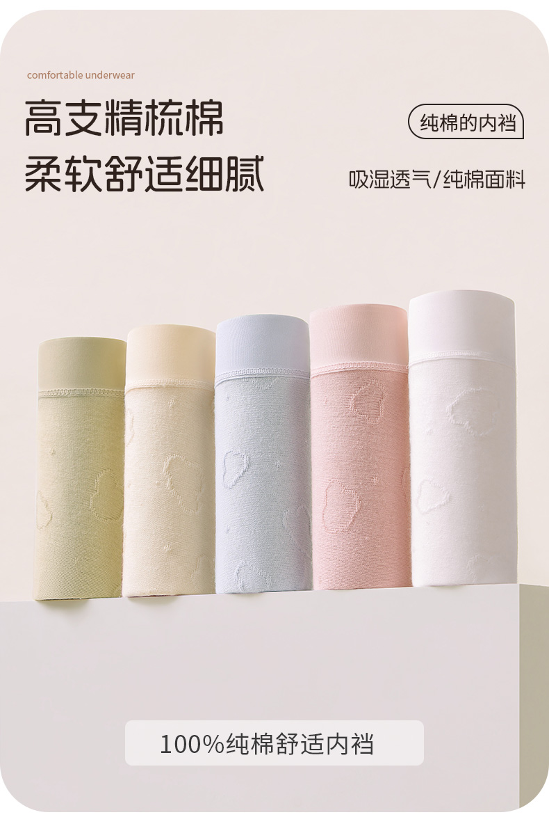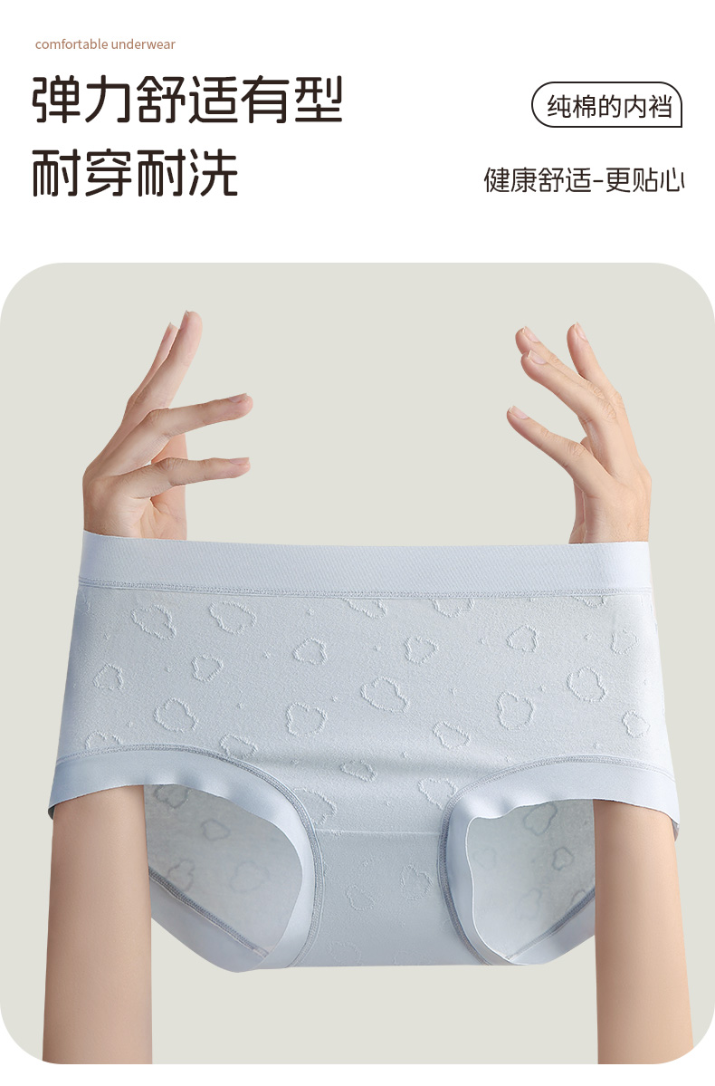 【7A抑菌】洁丽雅4条装中高腰纯棉女士内裤云感亲肤双层纯棉内裆柔软舒适三角裤女