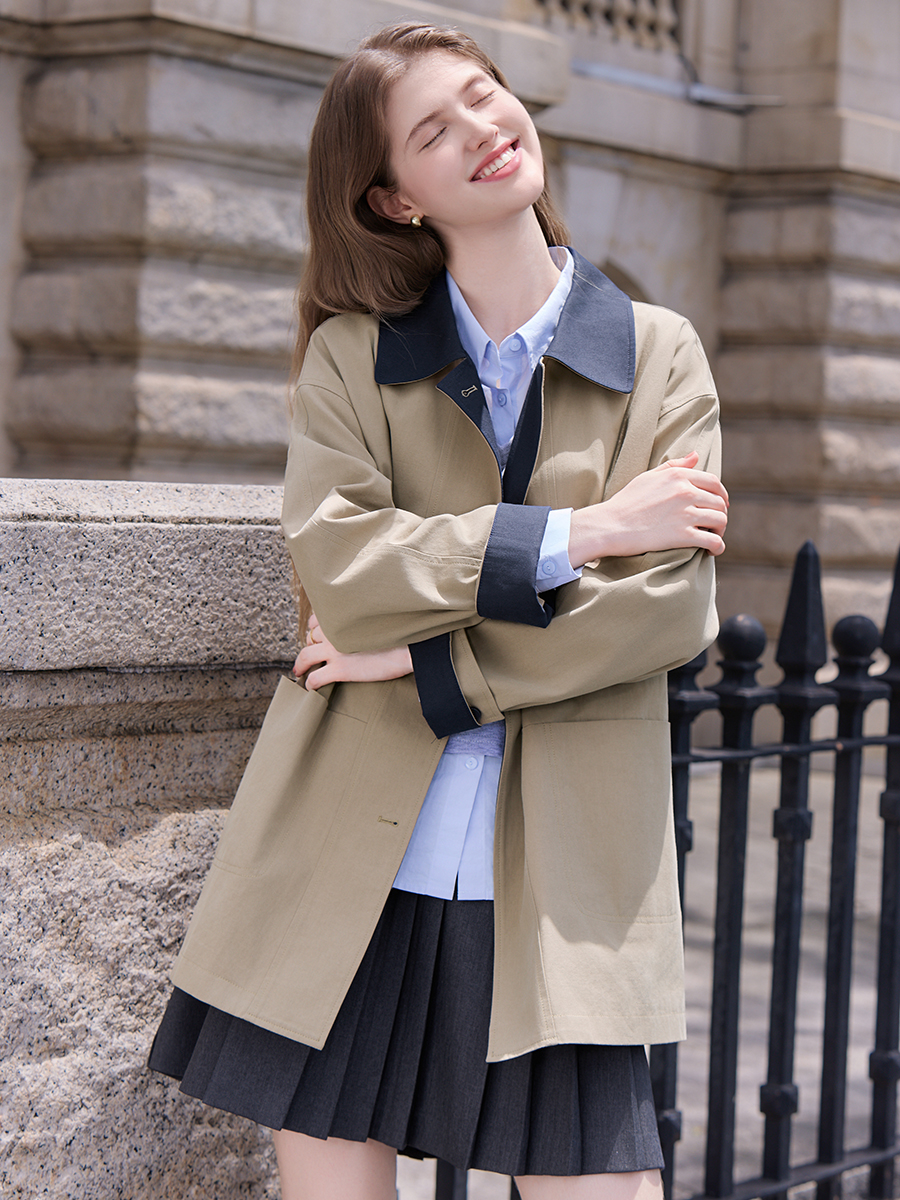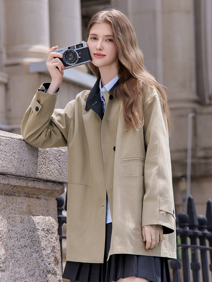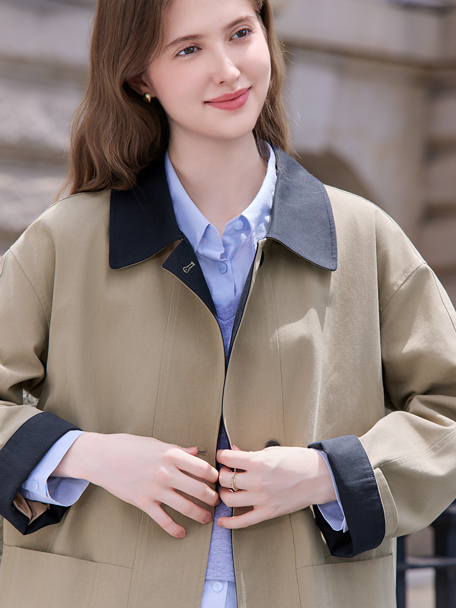 透气性极佳: 棉和莱赛尔都是顶级的透气纤维。这种面料制成的风衣在春夏秋三季穿着都不会感到闷热,体感非常舒适。