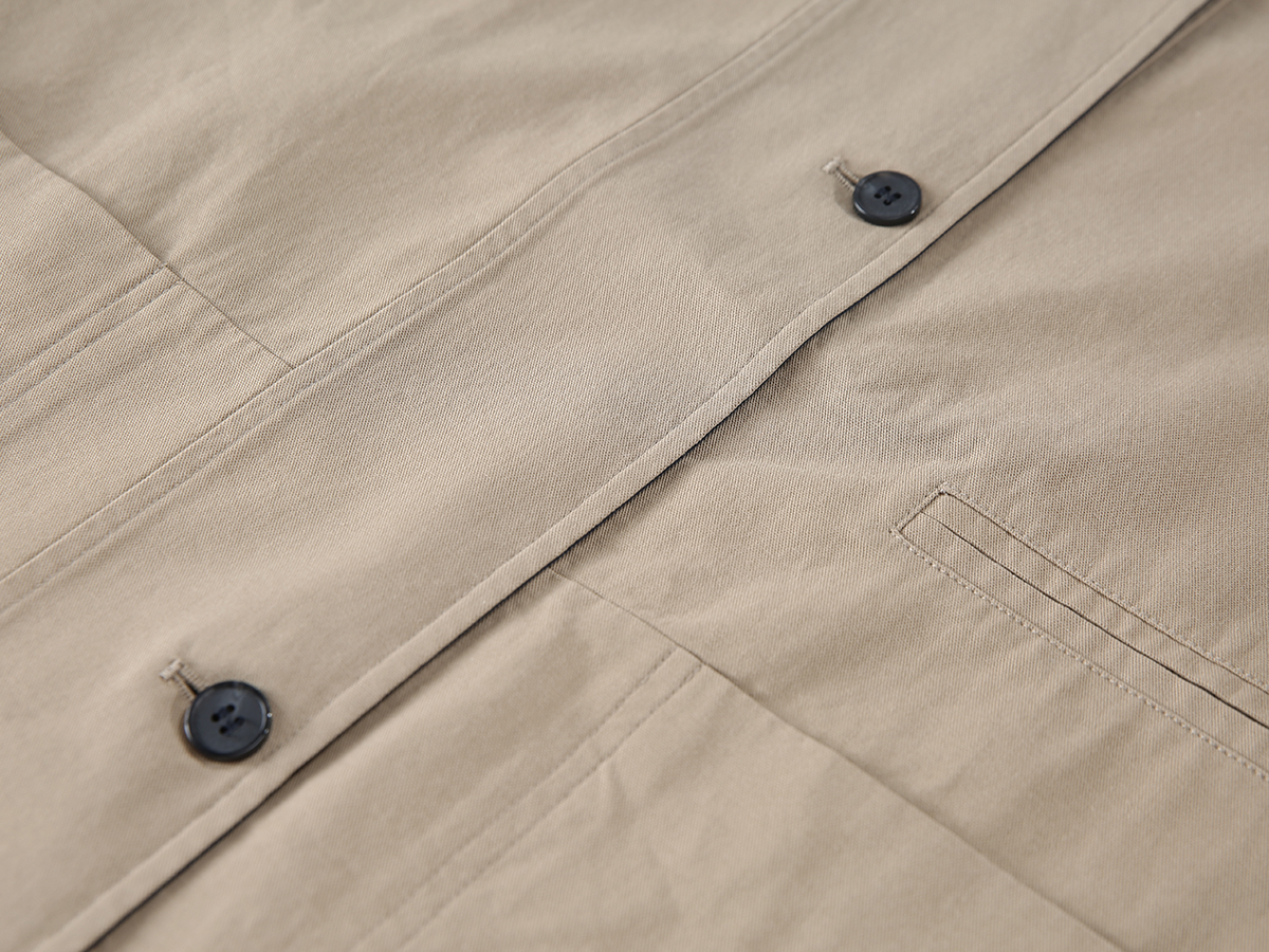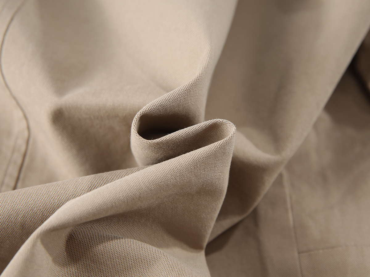 纯棉风衣最大的痛点就是易皱。莱赛尔的加入极大地改善了面料的抗皱性能。虽然还无法达到 polyester(聚酯纤维)那种级别的免烫,但相比纯棉,褶皱会更少,且更容易恢复平整。