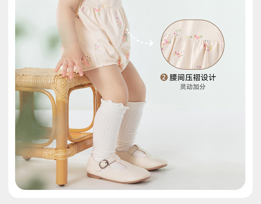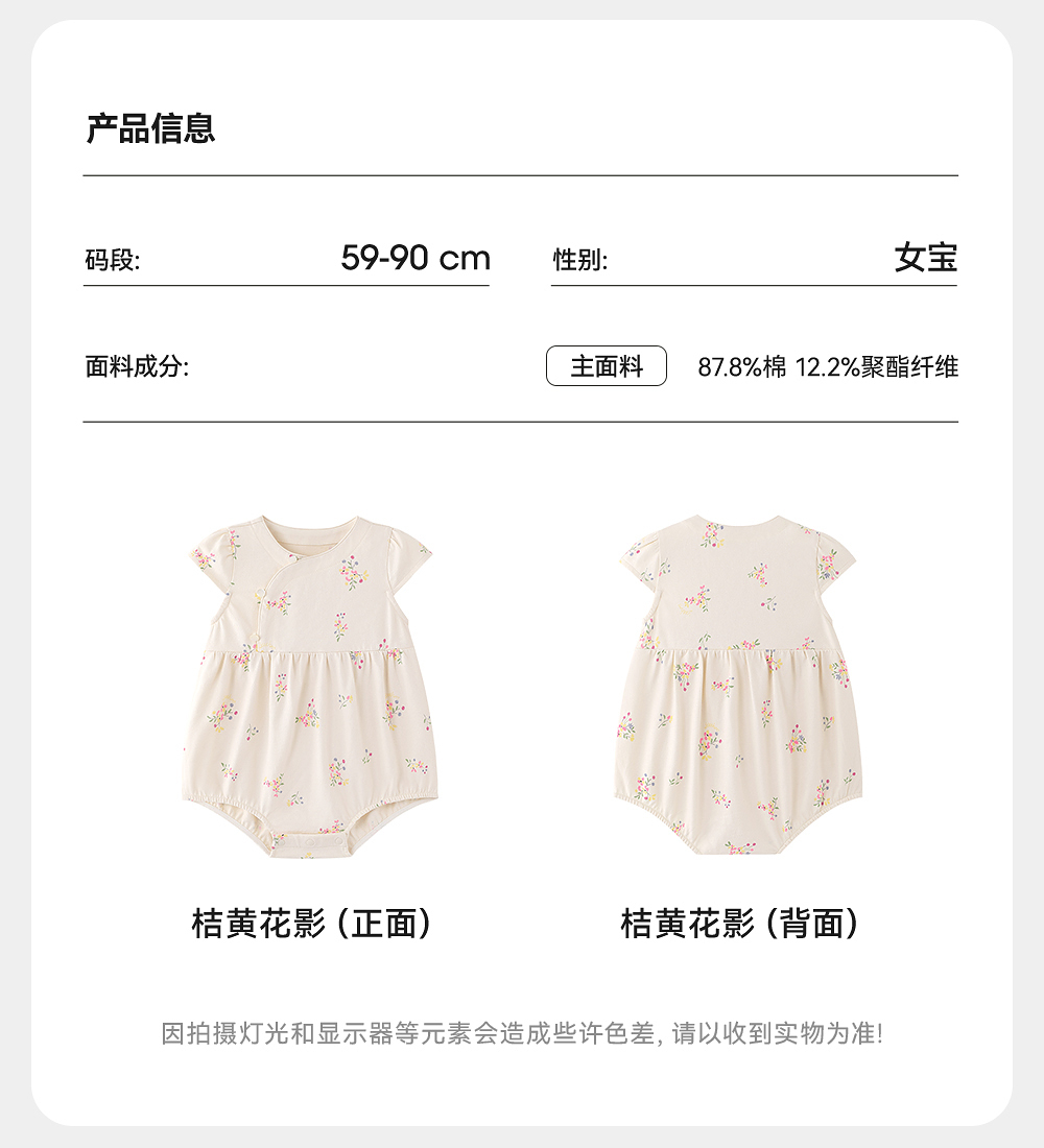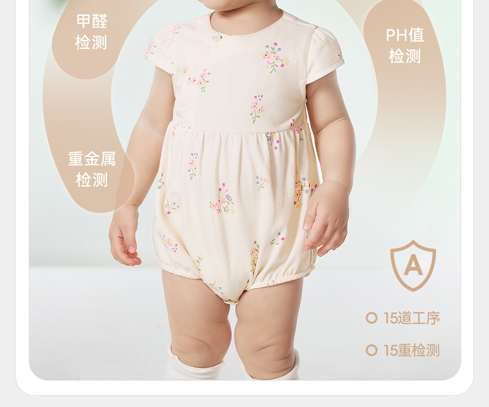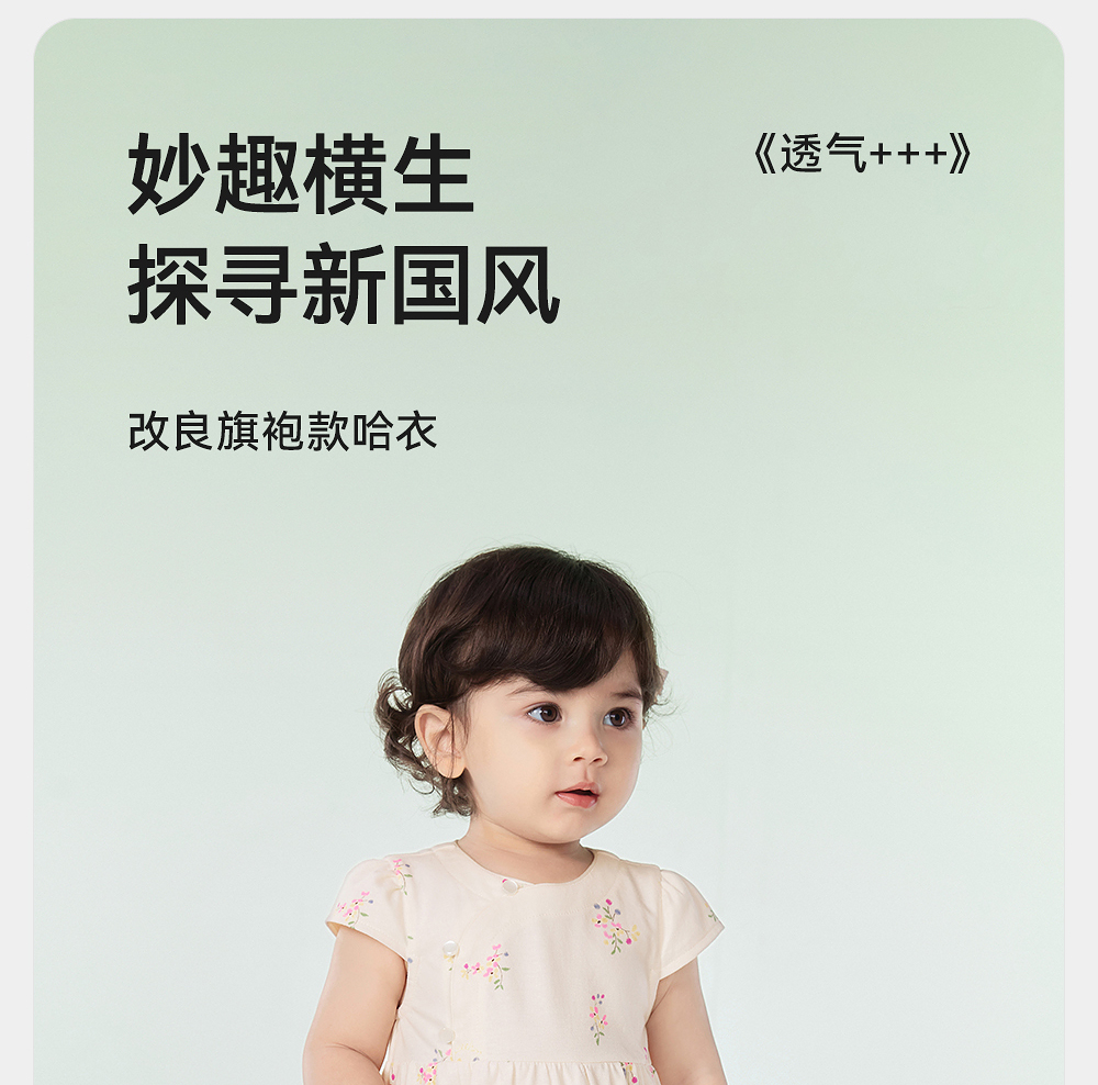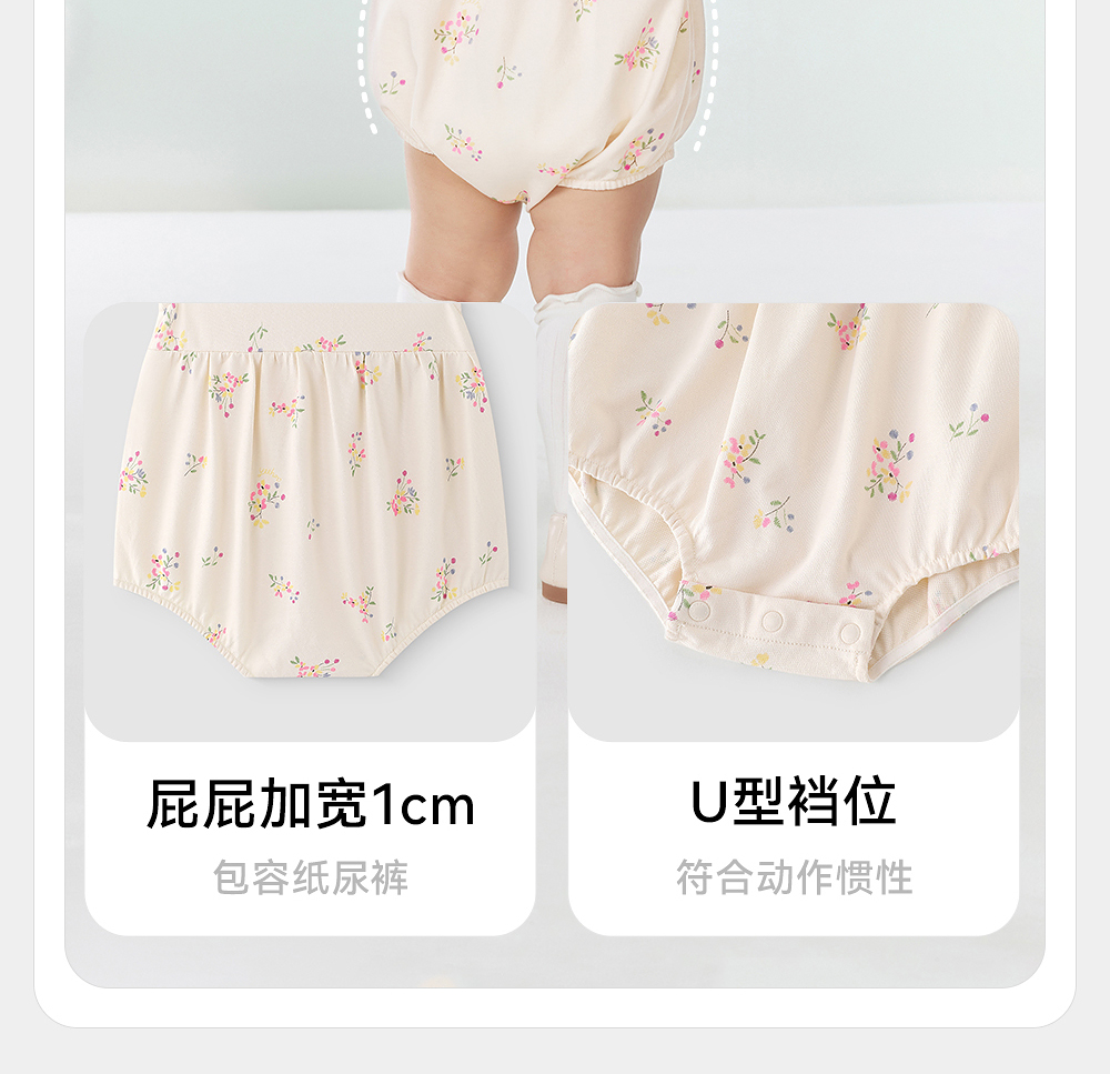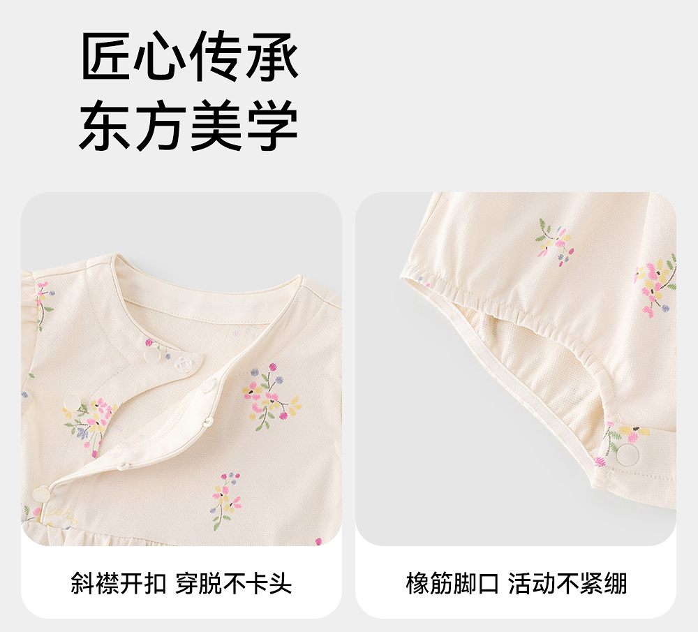 英氏婴儿衣服夏季女童国风连体衣月亮裆女宝宝包屁衣YRHGJ2R022A