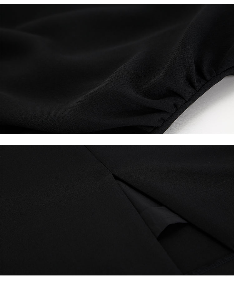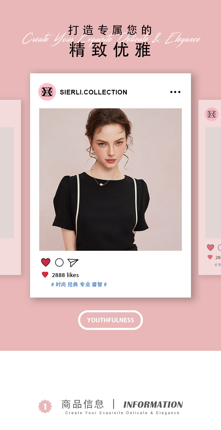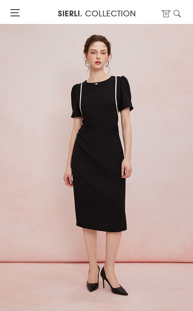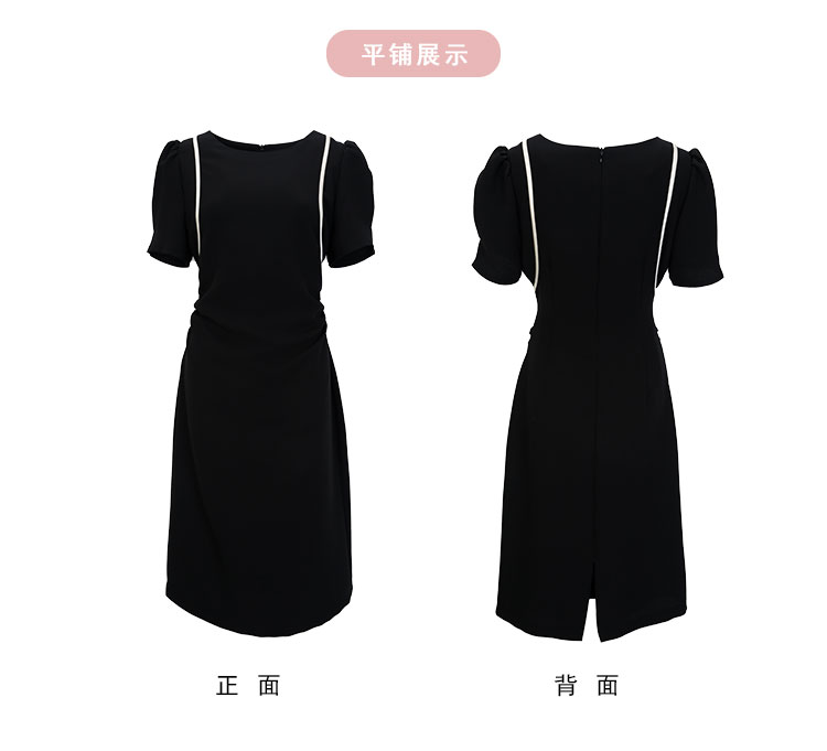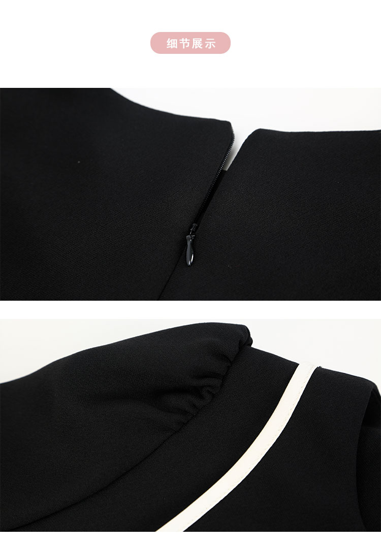 QF846斯尔丽25新款法式浪漫圆领撞色滚边显肩窄高级白领气质款连衣裙