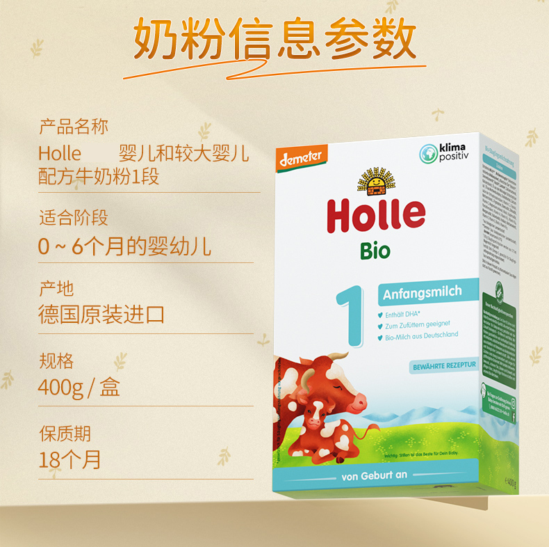 【跨境进口】1段奶粉 | Holle(泓乐)婴儿配方奶粉1段400g (0-6个月) 德国原装进口(跨境商品报关后不支持退货,介意慎拍)