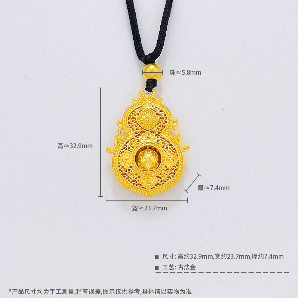 【限时克减150元】足金999.9 #葫芦 #宫廷风 古法镂空挂绳吊坠国潮古风人生四美葫芦喜报三元可转金珠葫芦吊坠(含珠子)(GFDZW00390-01),(预售产品下单后不退款不退货不换货不补差价)