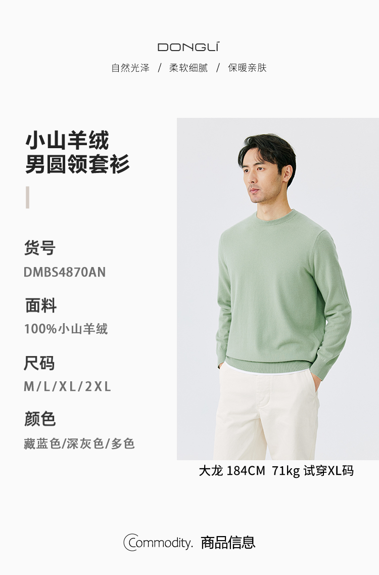 东黎 • 小山羊绒男士秋冬圆领基础款打底百搭套衫 4870