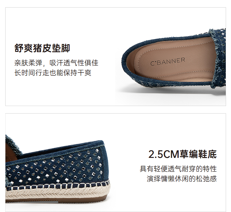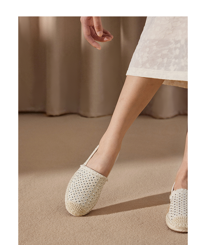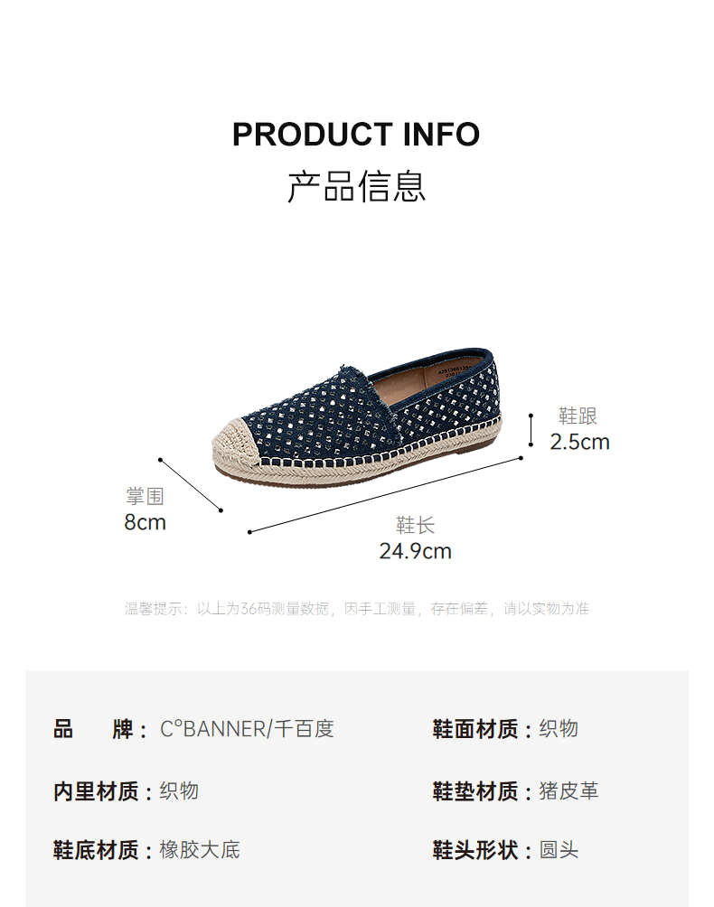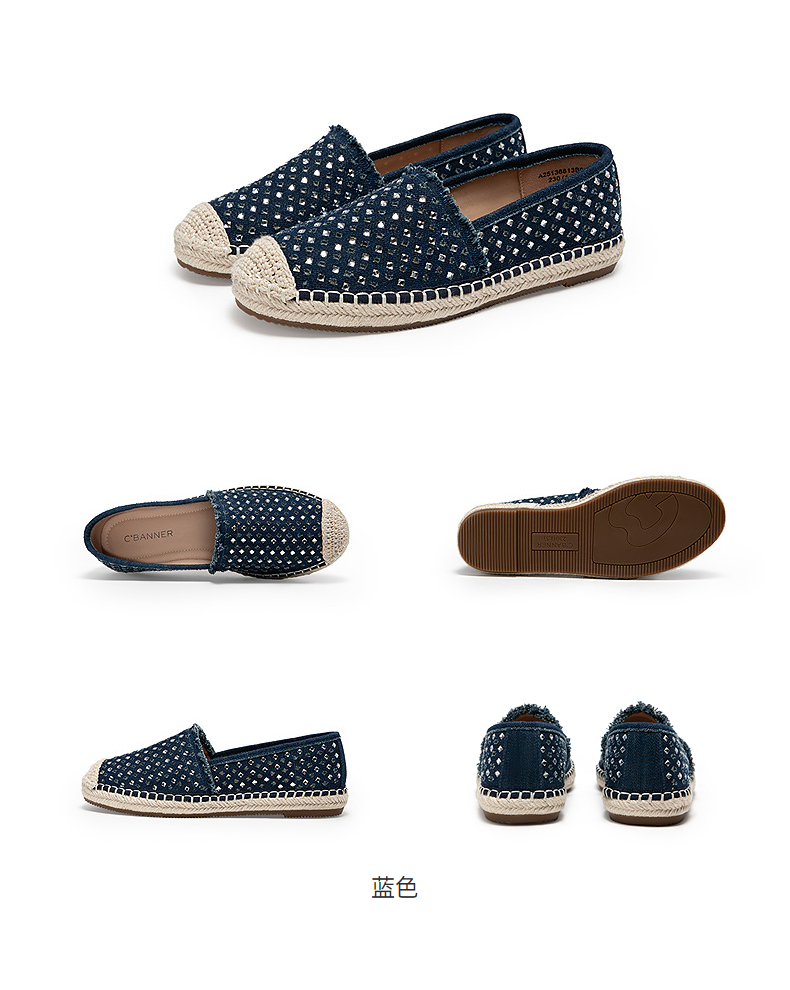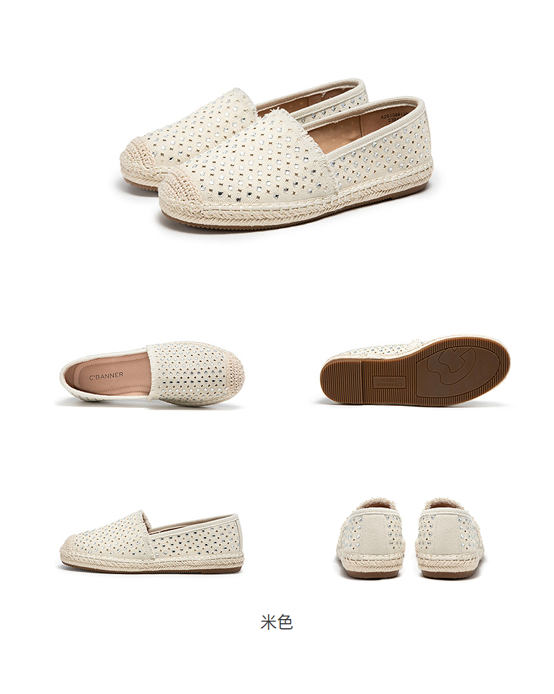 千百度闪钻编织底渔夫鞋女休闲平底鞋舒适浅口单鞋A25136813
