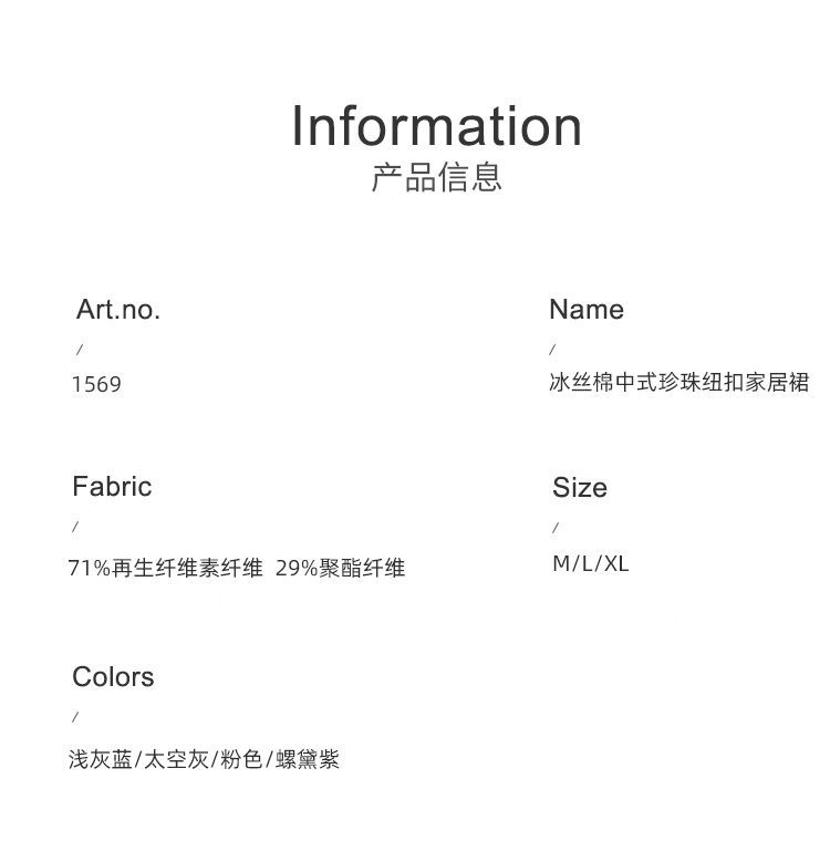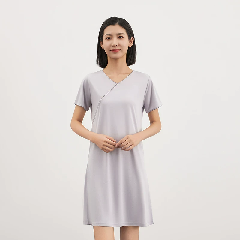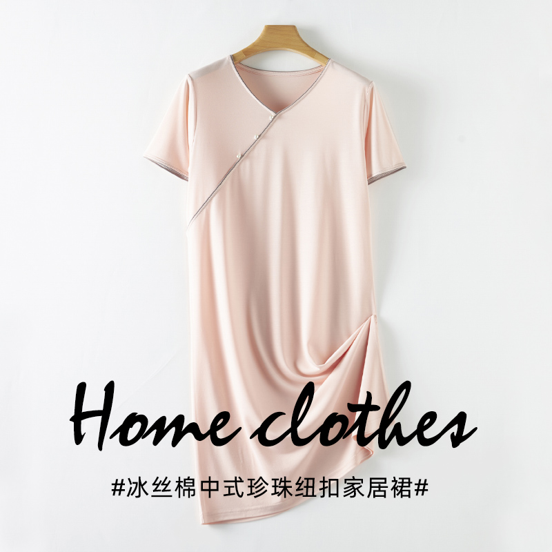 Mylyis 冰丝棉中式珍珠纽扣家居裙 家居服1569 柔软亲肤,清凉透气,宽松版型,可自由舒展