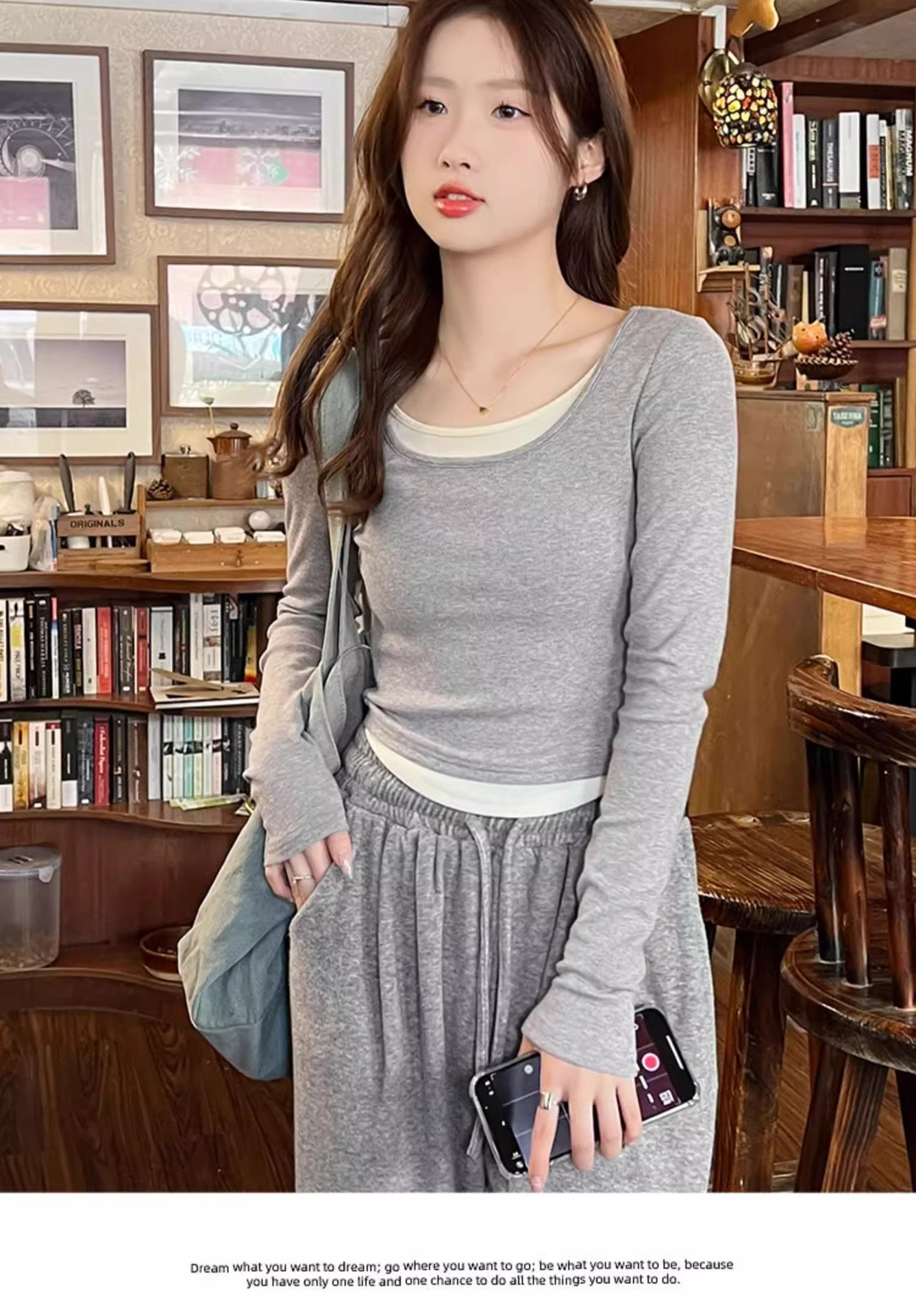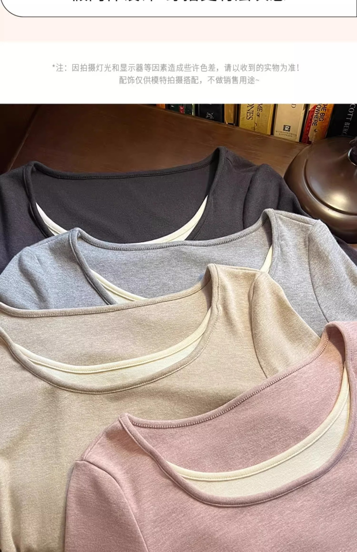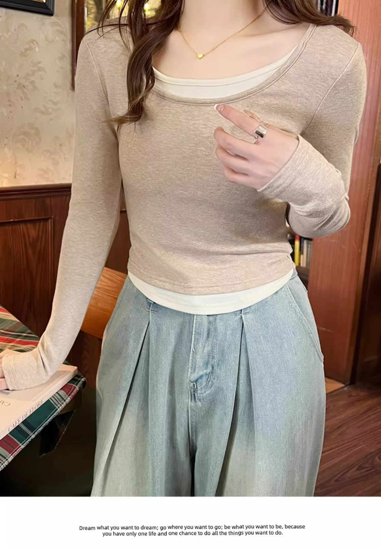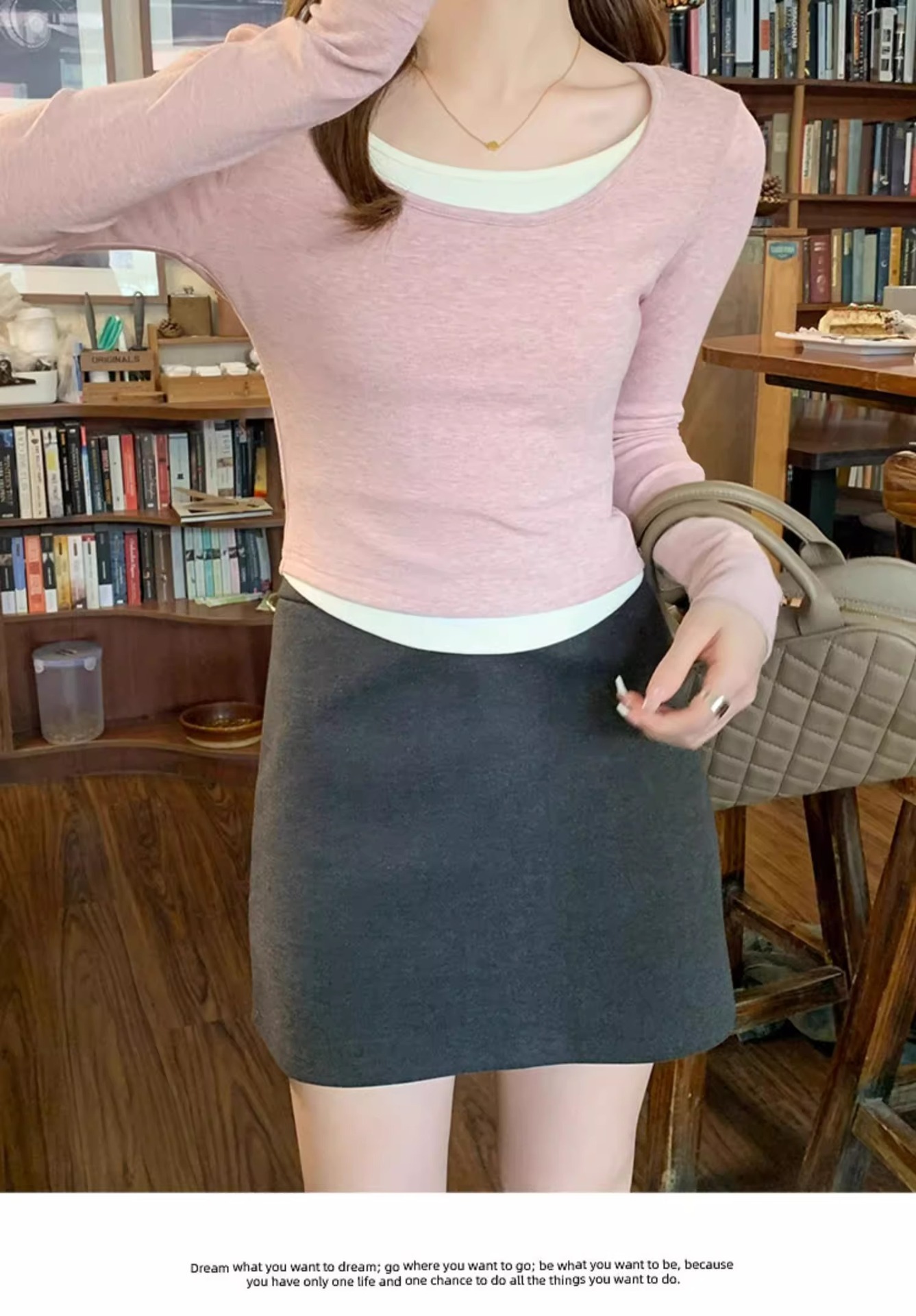 早春新款【粉色拼接假两件 长袖T恤女】纯欲风 撞色打底衫内搭 紧身上衣