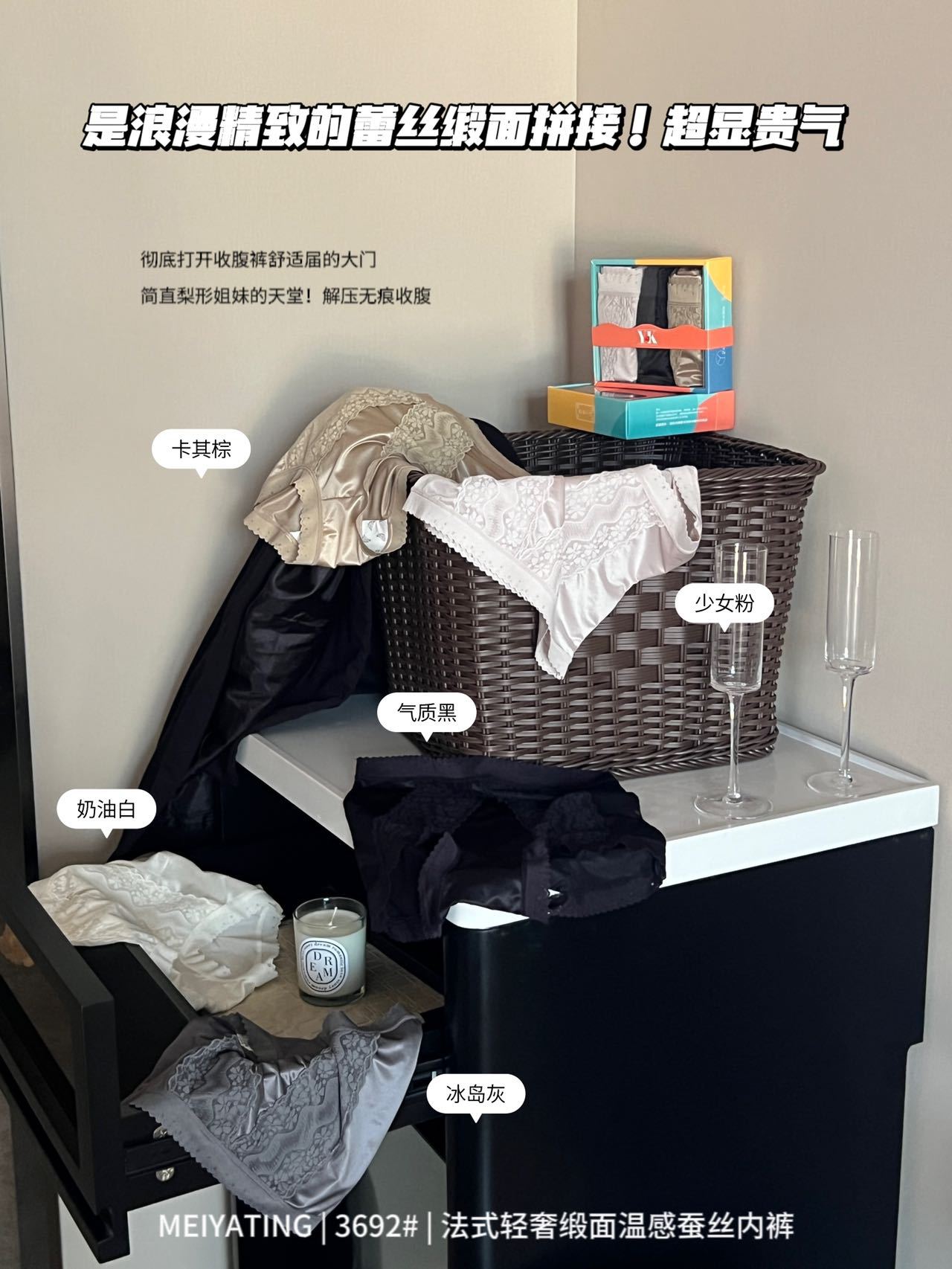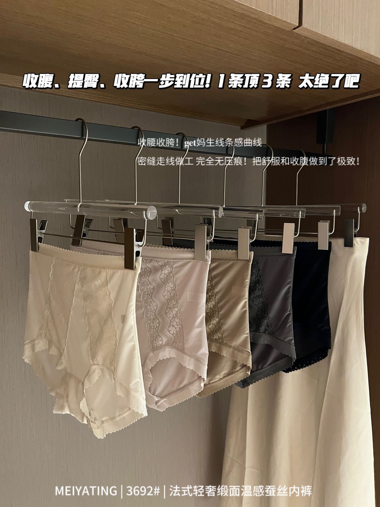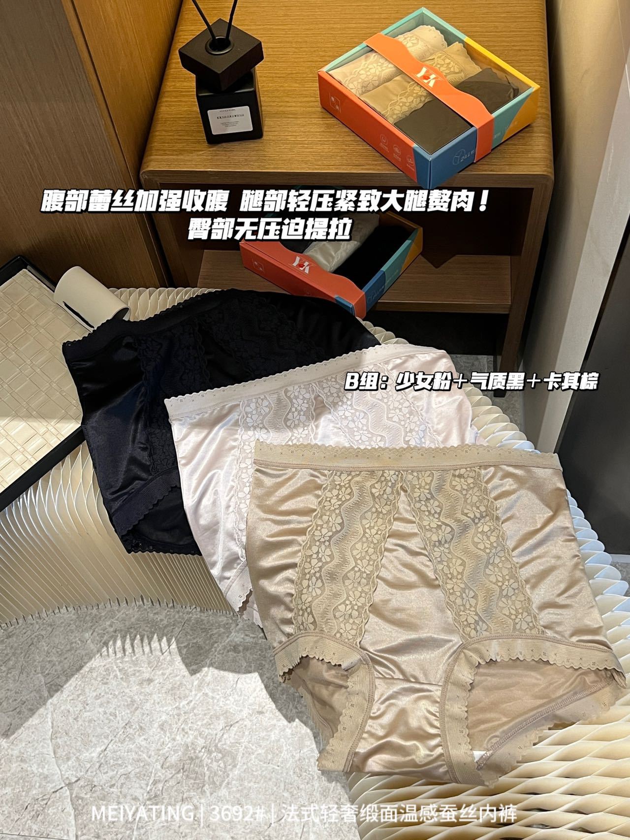 3条装【法式轻奢缎面 温感蚕丝内裤女士】高弹高腰 收腹提臀 舒适抑菌三角裤
