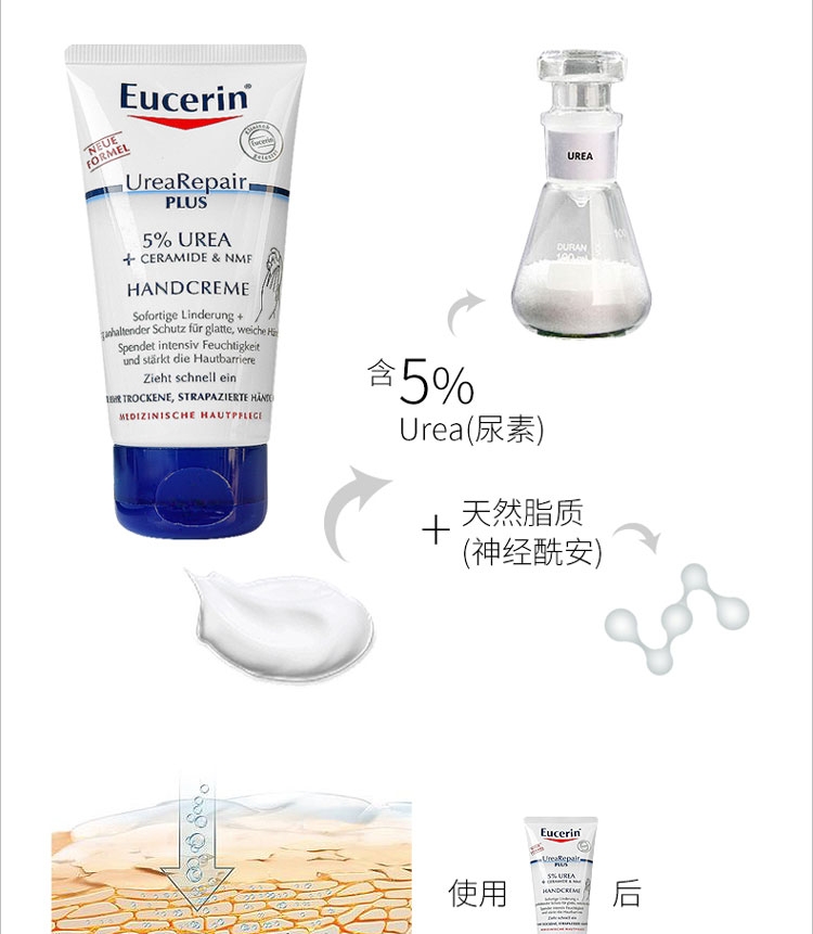 保税| EUCERIN优色林5%尿素加qiang修护shen度滋养护手霜75ml