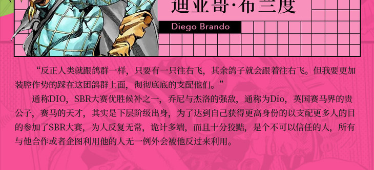 《飙马野郎》是荒木飞吕彦所著的漫画作品。1890年,一场世纪大赛「SBR」于美国举行,全长共6000公里,是人类史上骑乘马匹横越北美大陆的比赛!为了拿下高达5千万美元(60亿日元)的冠军奖金,一群强悍的冒险家们正式展开了他们的争战!