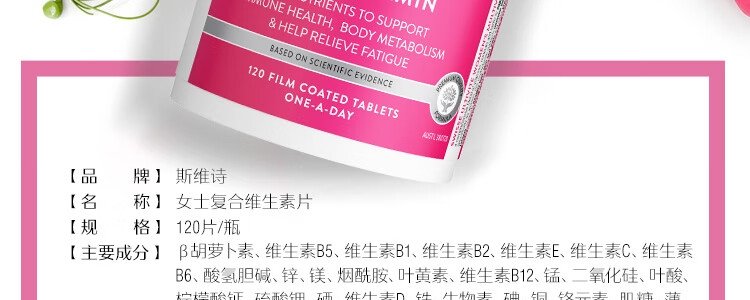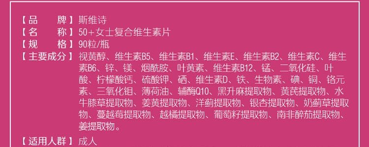 【保税】澳洲Swisse 女士复合维生素片120粒/50+女性复合维生素片90粒 女性成人多种综合维生素保健品 升级款