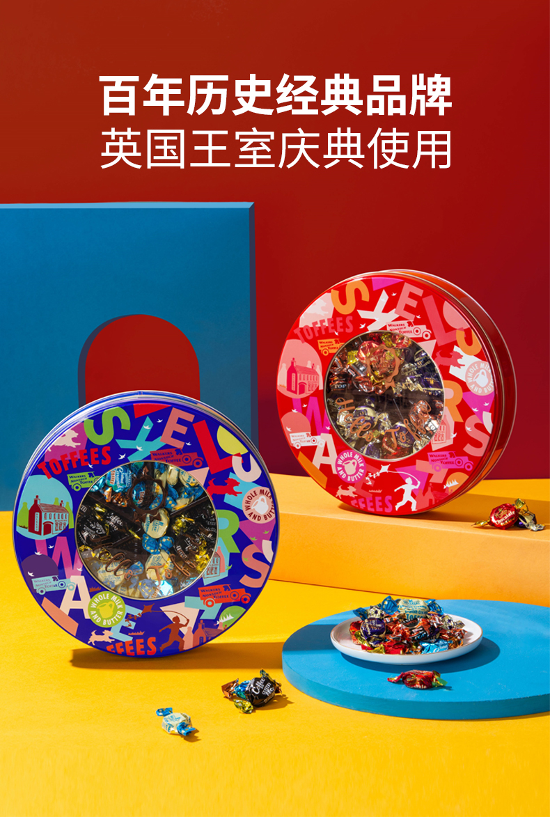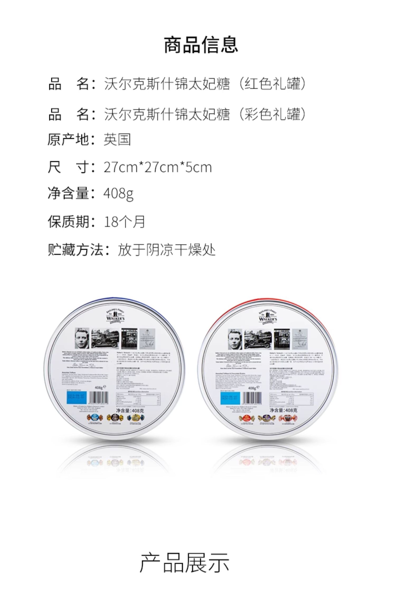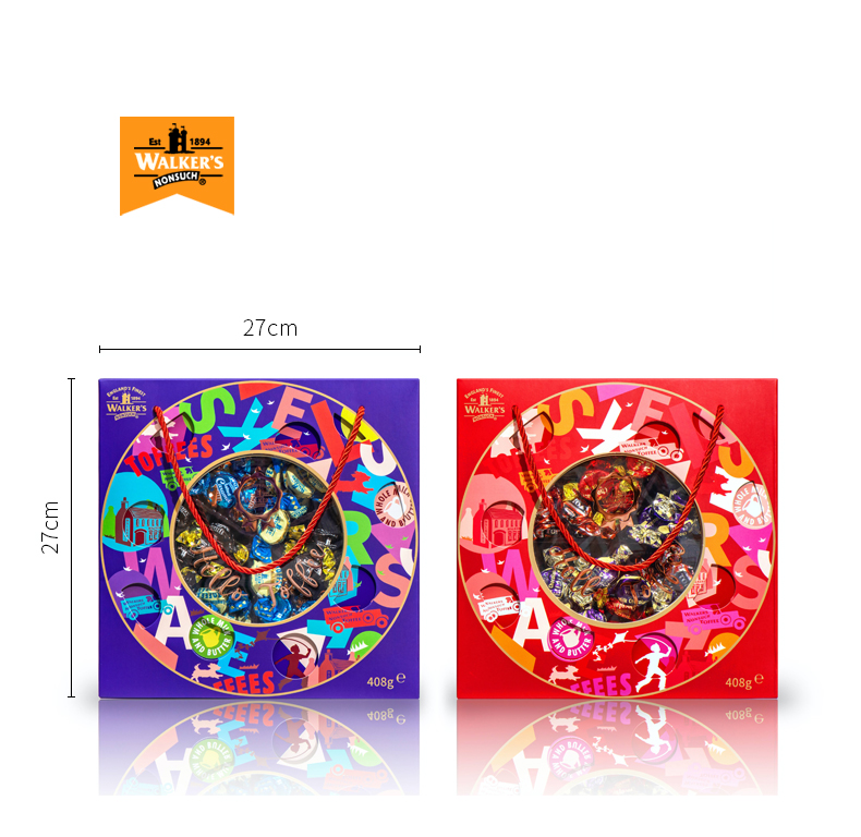 英国沃尔克斯什锦太妃糖红色礼罐/彩色礼罐408g 五种口味混装好吃不腻 062149/062264