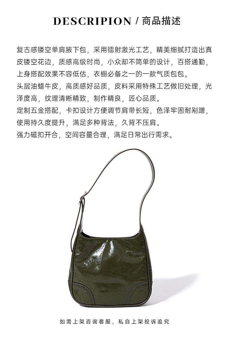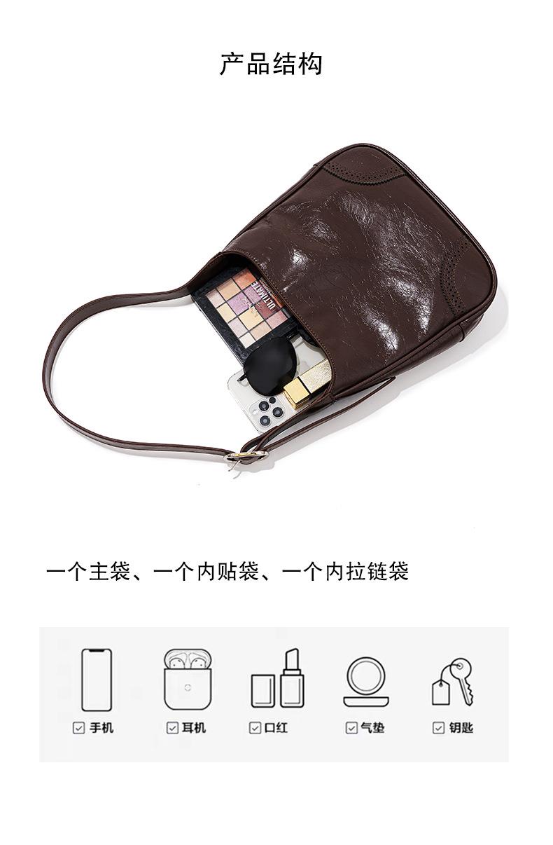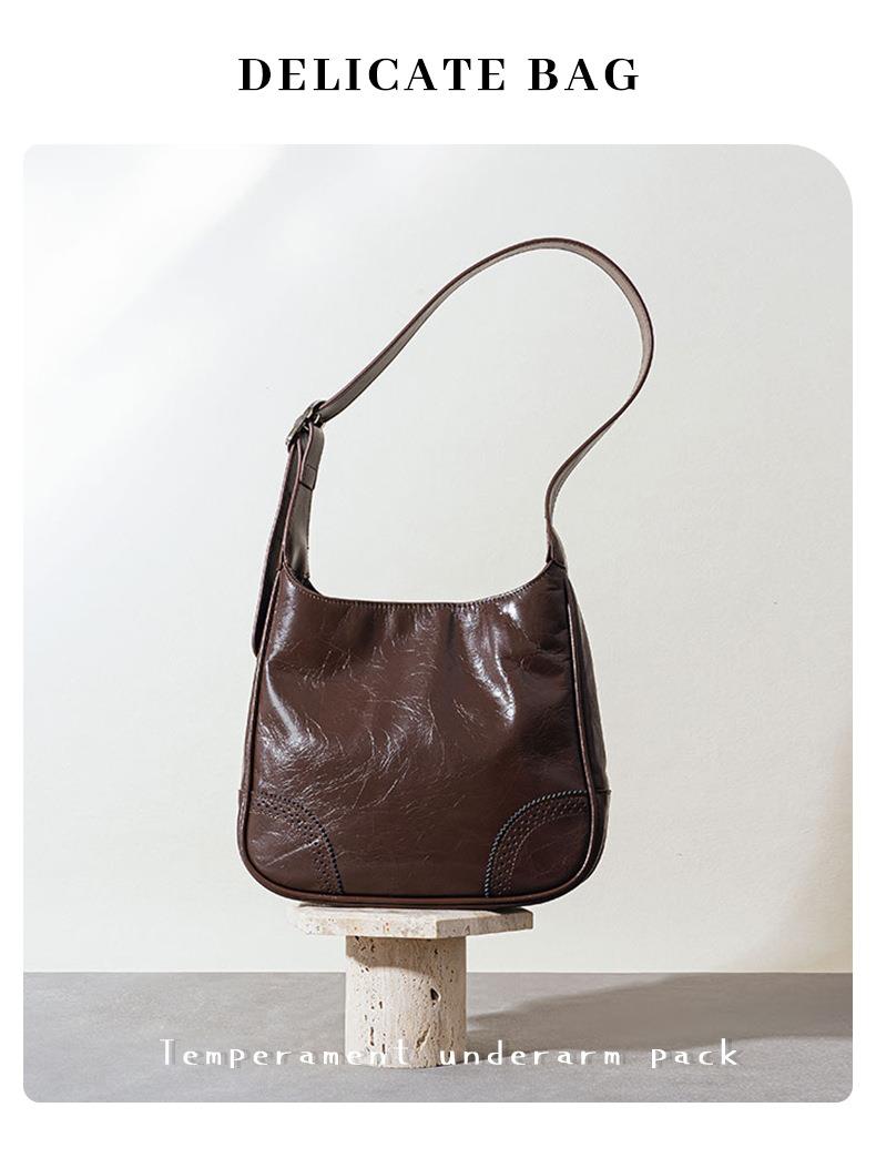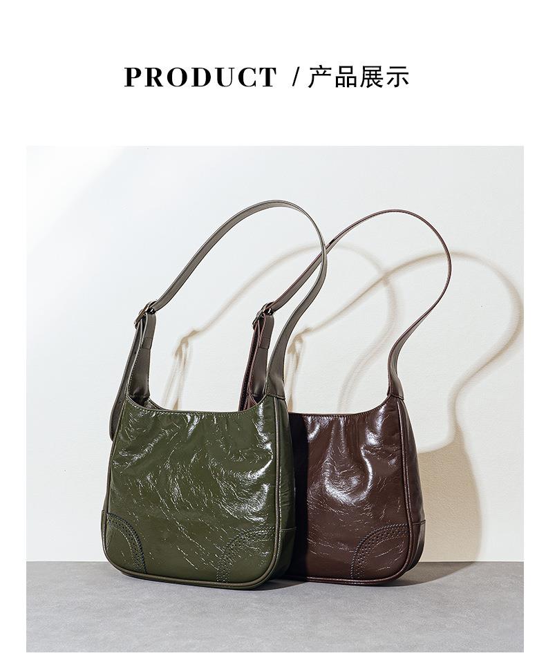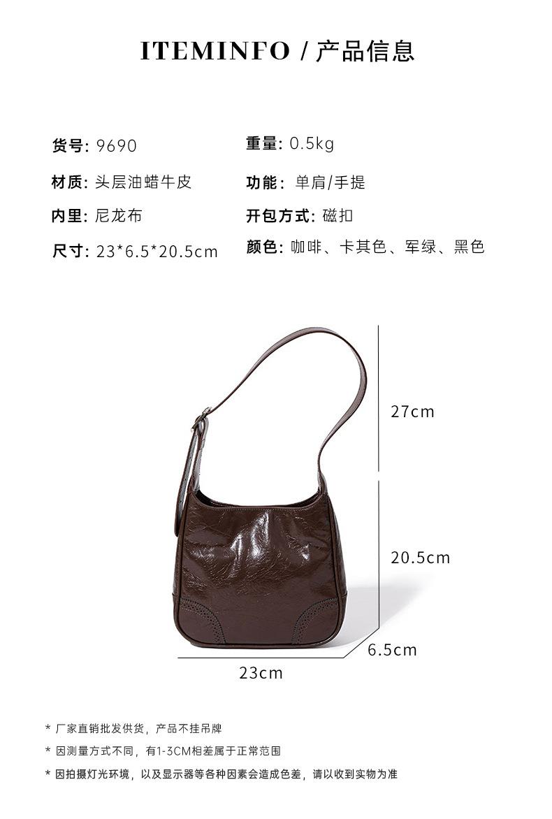 新款美式复古油蜡牛皮腋下包小众轻奢感手提包时尚潮流通勤单肩包