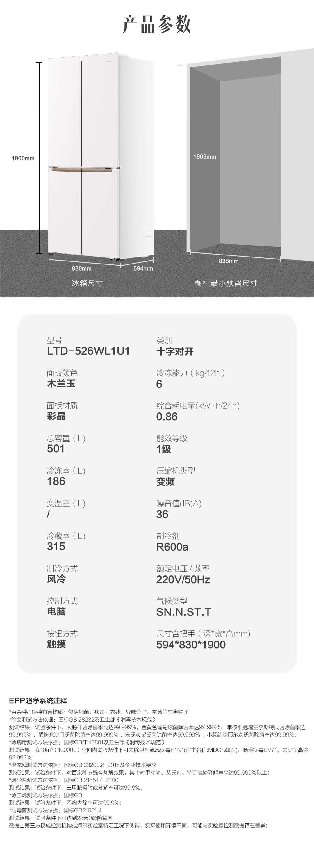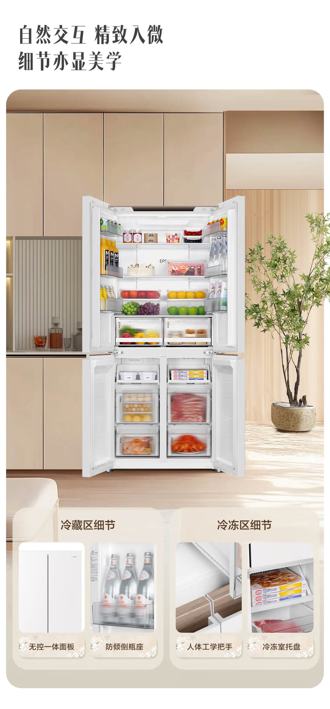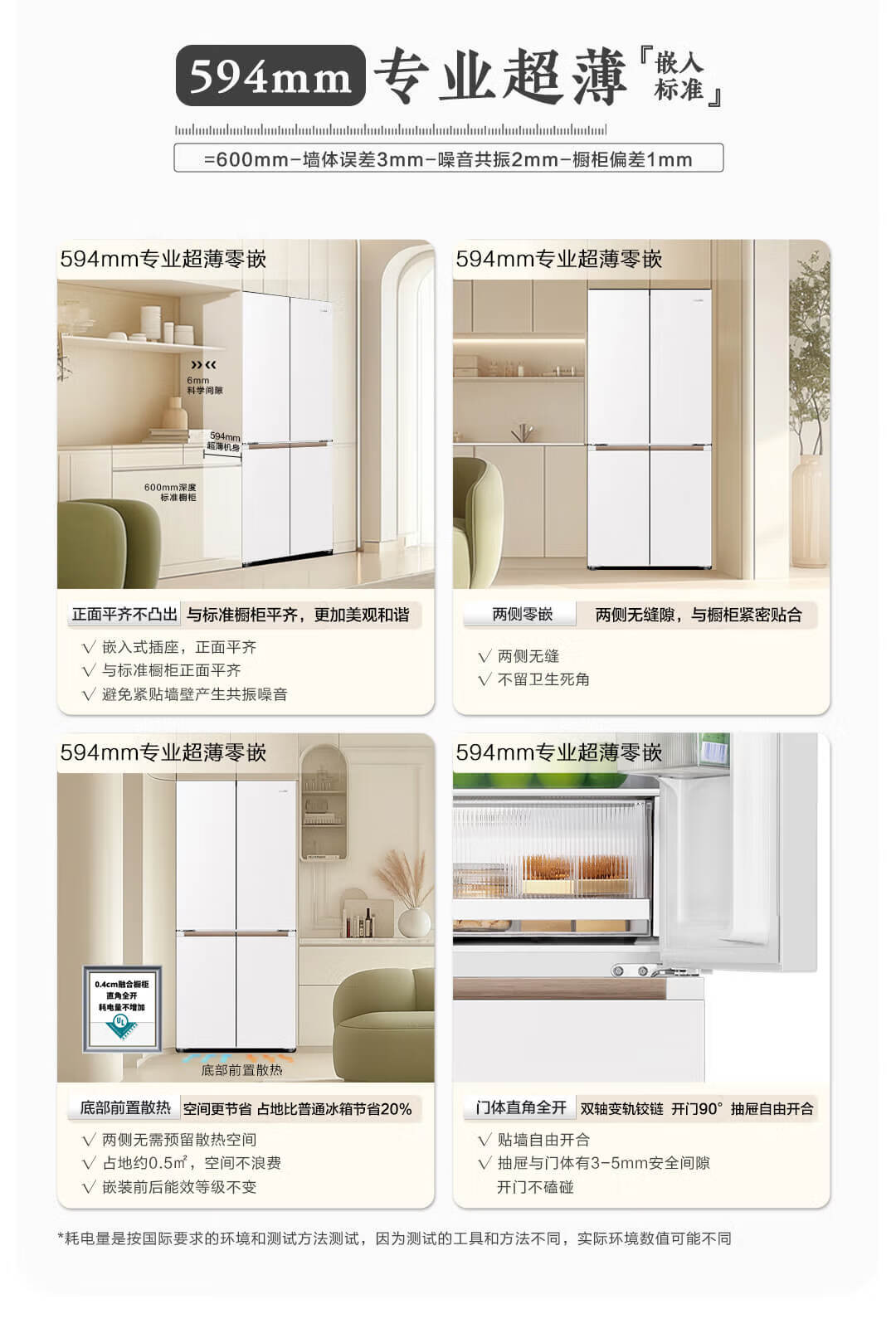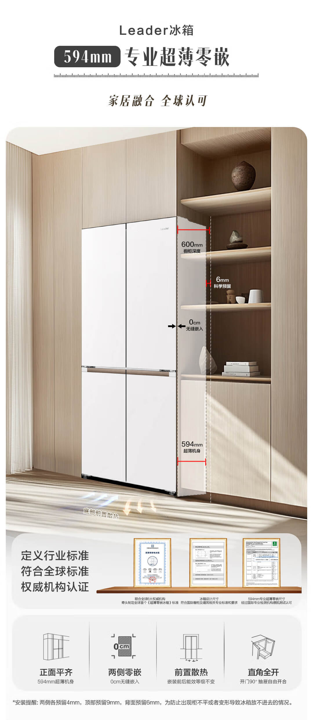 统帅(Leader)海尔智家出品501L十字对开四开门594mm超薄零嵌入式家用一级能效电冰箱底部前置散热LTD-526WL1U1