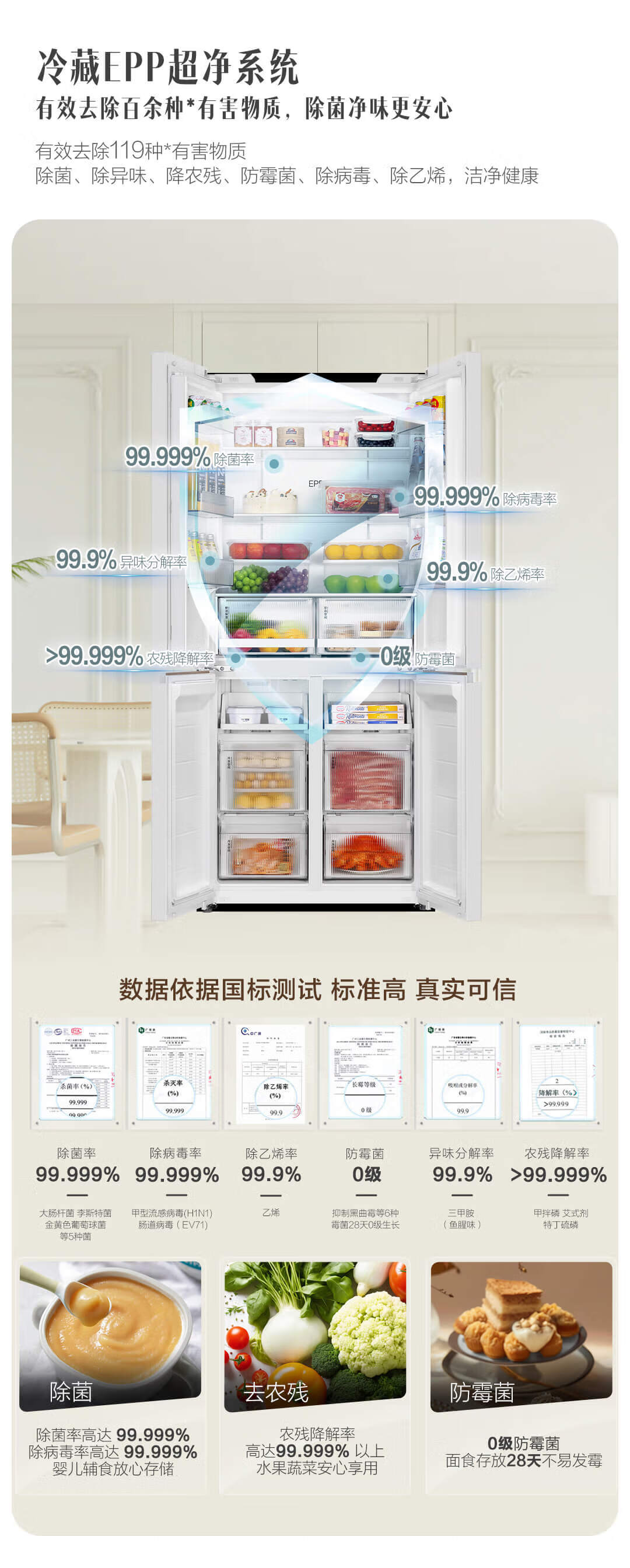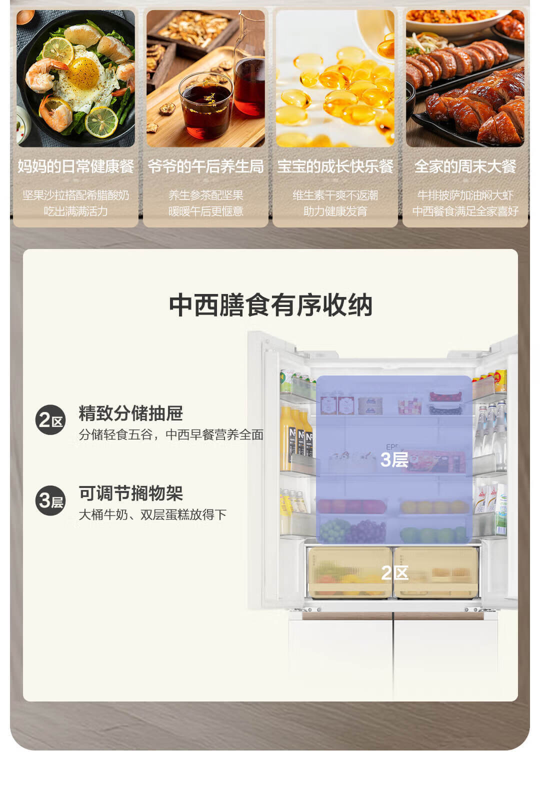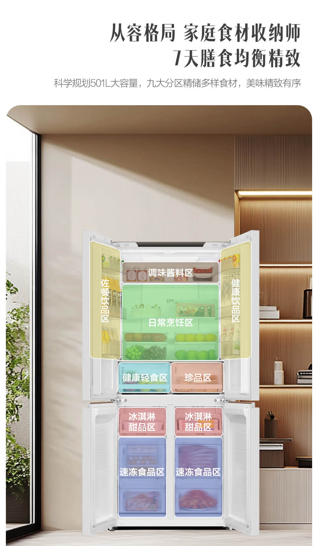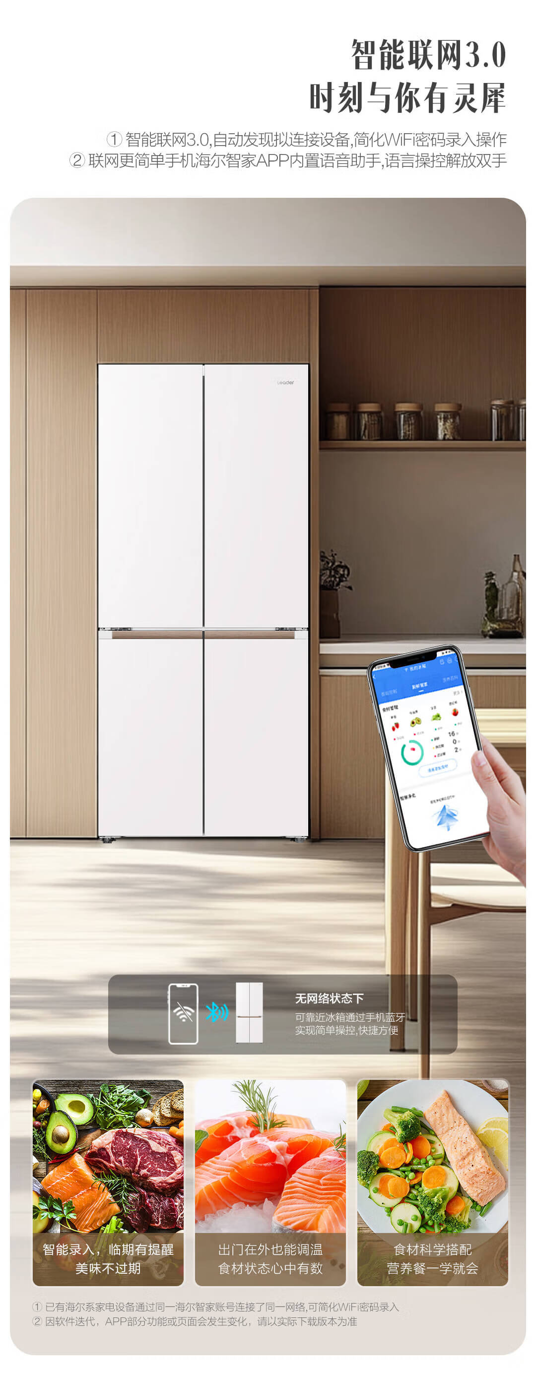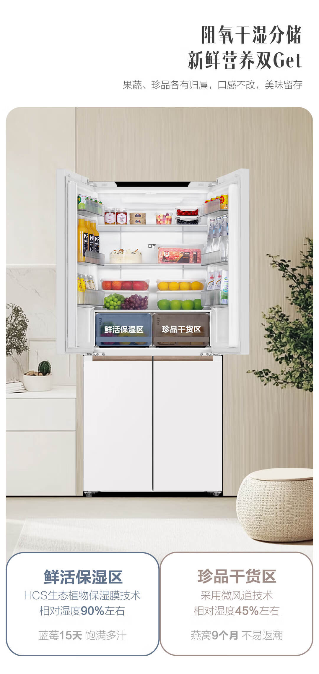 统帅(Leader)海尔智家出品501L十字对开四开门594mm超薄零嵌入式家用一级能效电冰箱底部前置散热LTD-526WL1U1