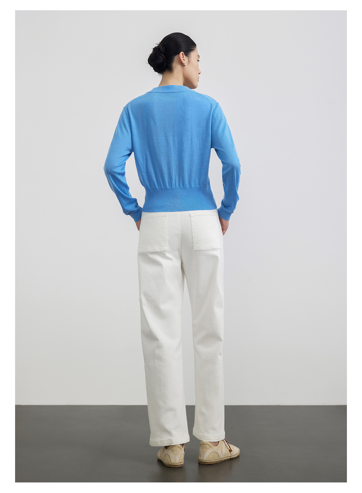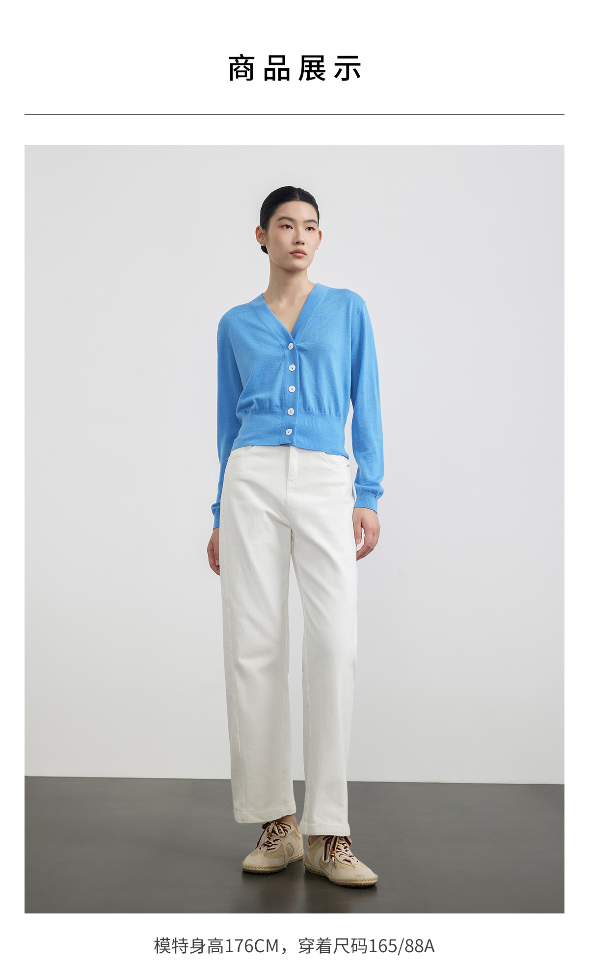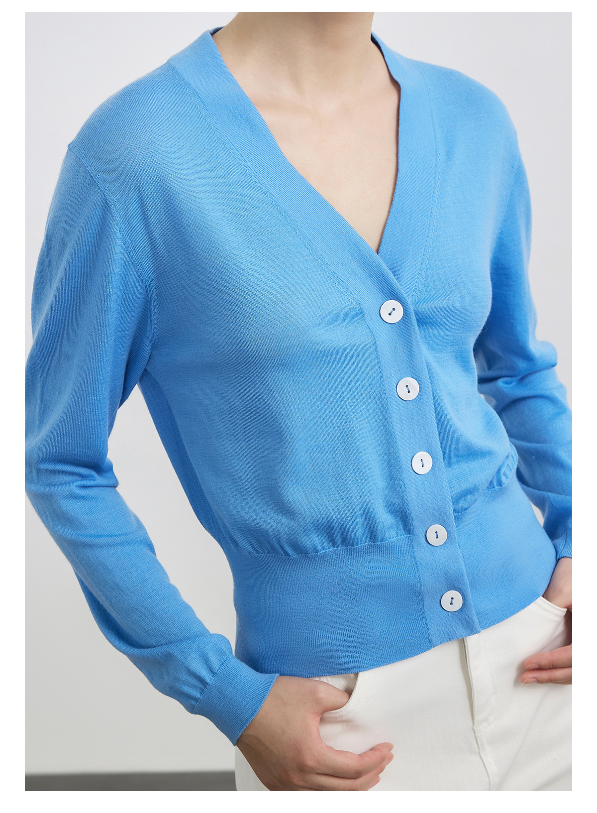 PURE TOUCH 宝蓝色V领短款针织开衫