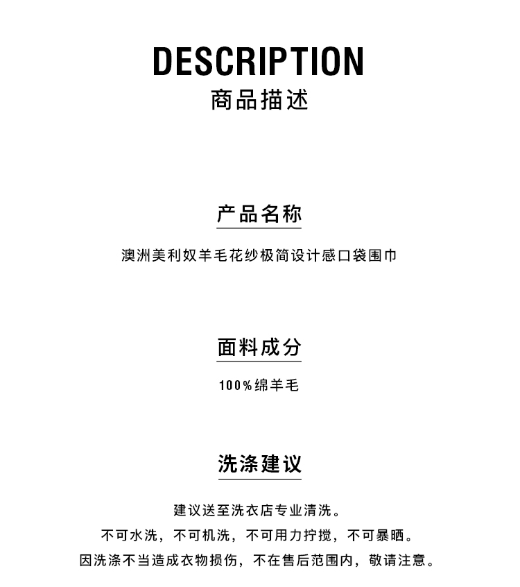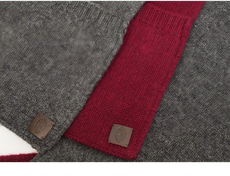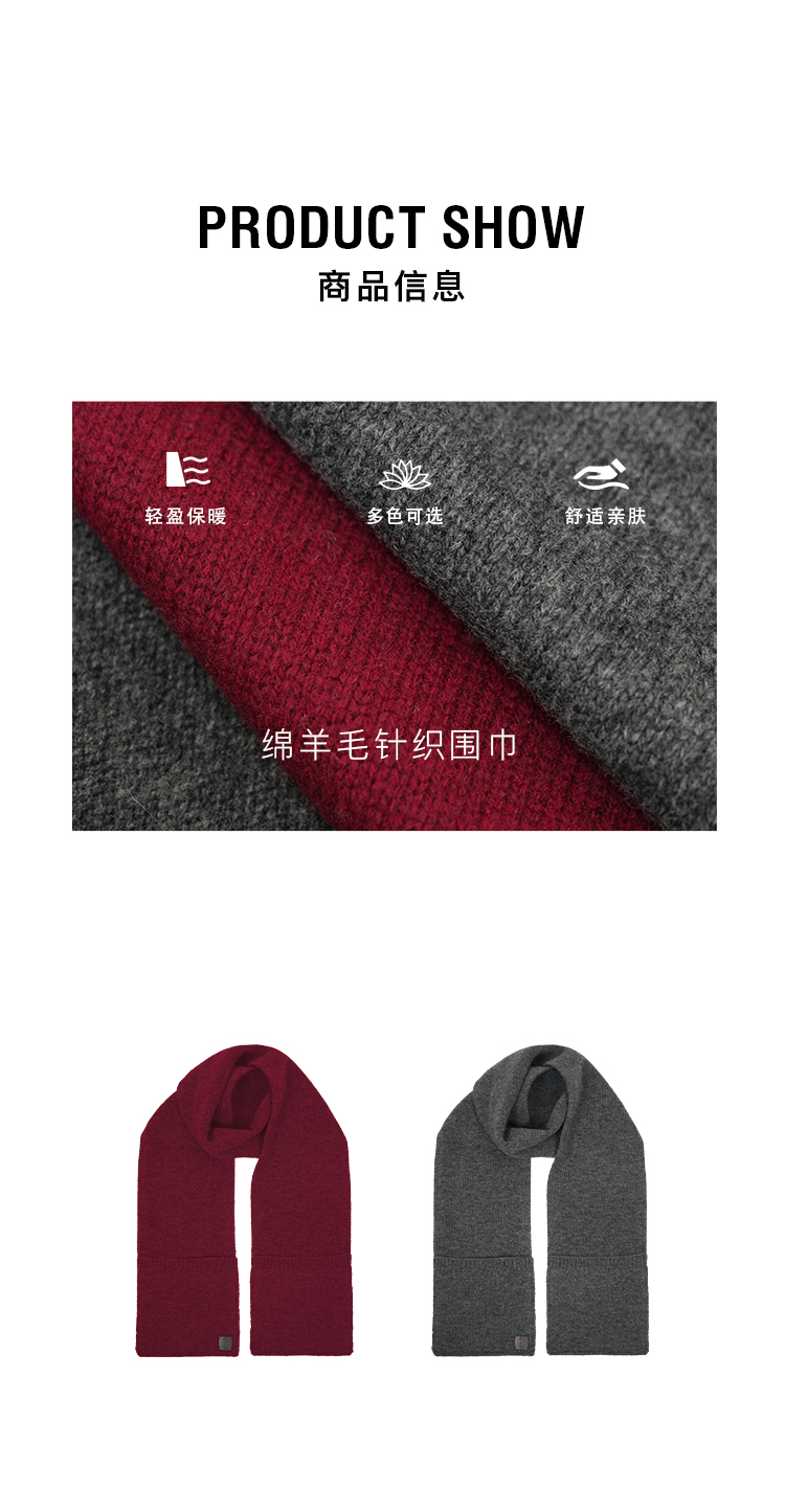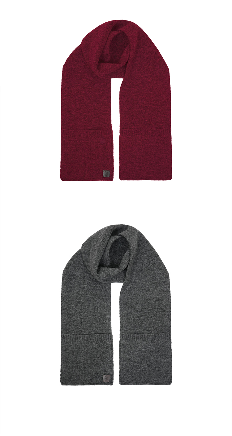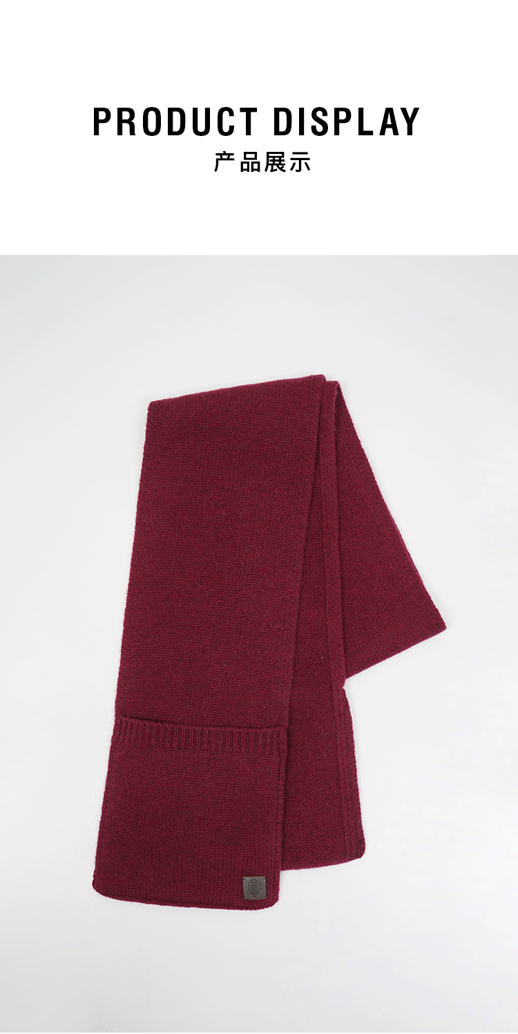 HIDEMI 澳洲美利奴羊毛花纱极简设计感口袋围巾 花灰色/勃艮第暗红