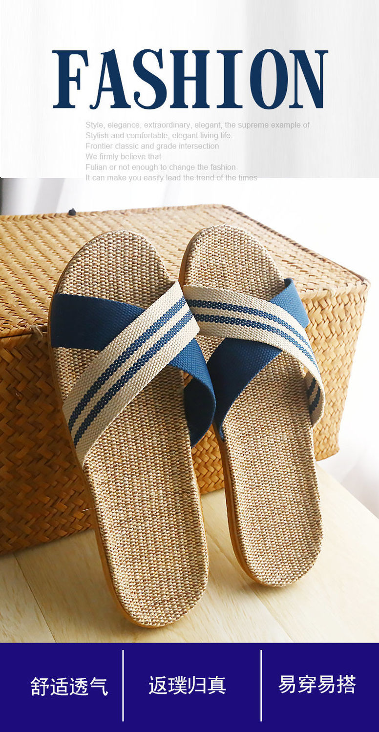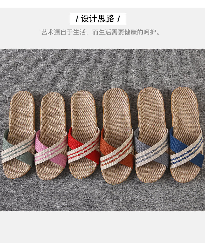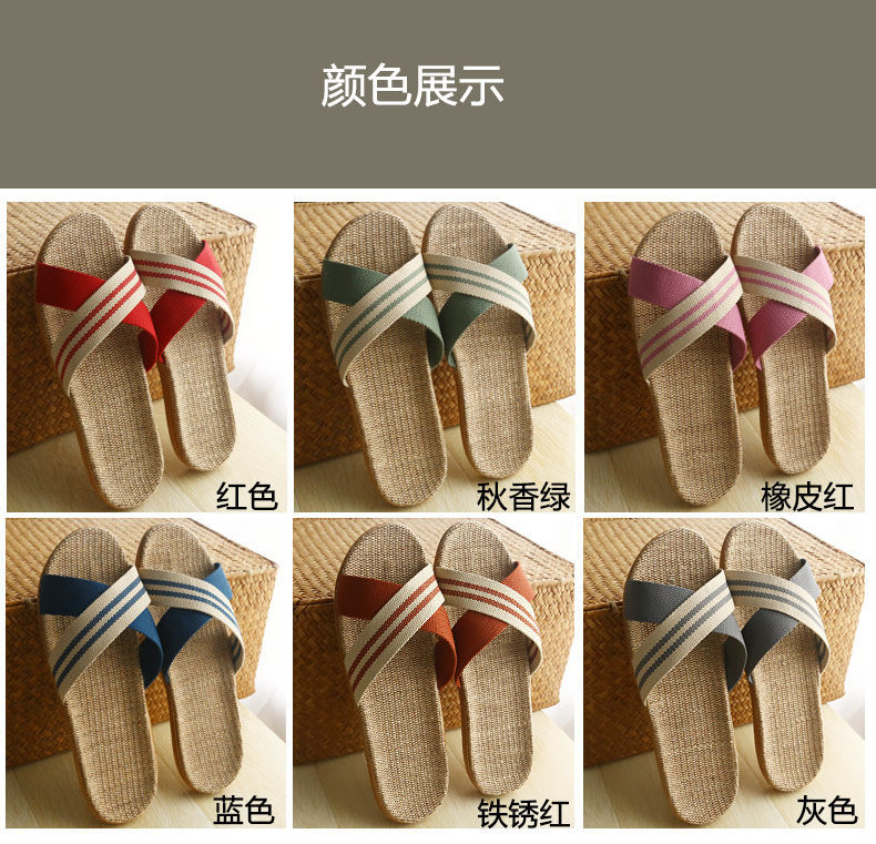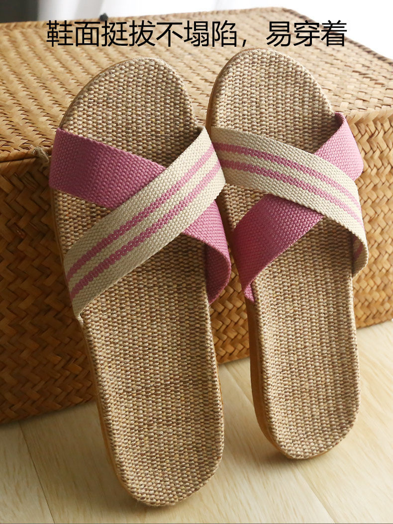 亚麻拖鞋女夏季室内厚底防滑情侣家居凉拖鞋男sjmh02