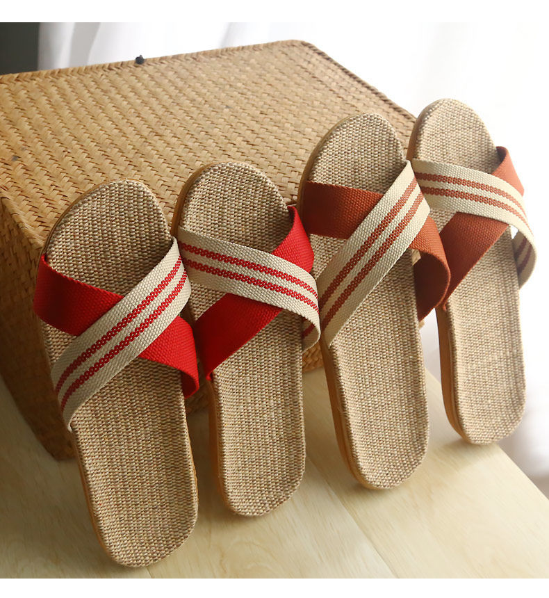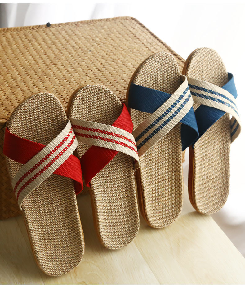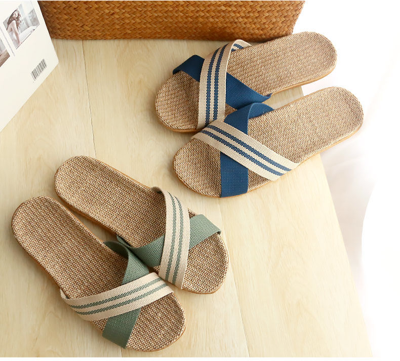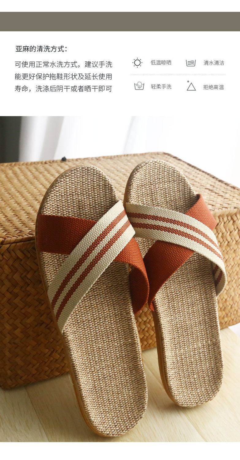 亚麻拖鞋女夏季室内厚底防滑情侣家居凉拖鞋男sjmh02