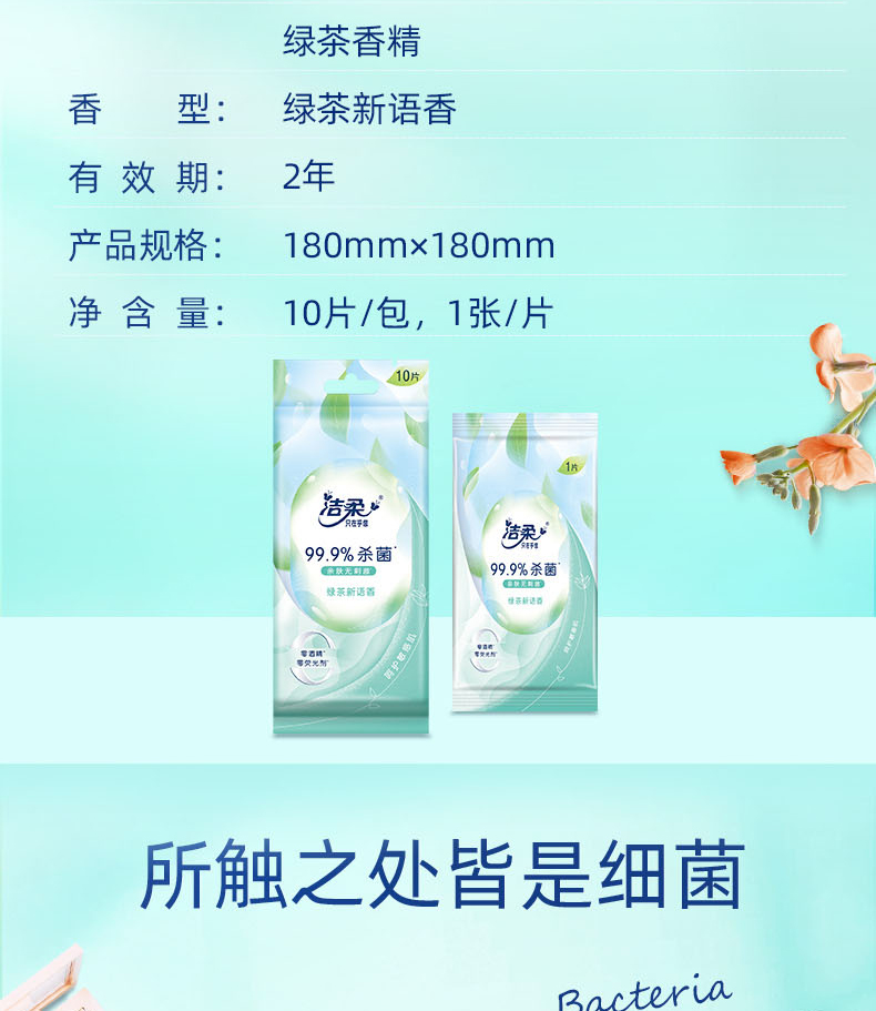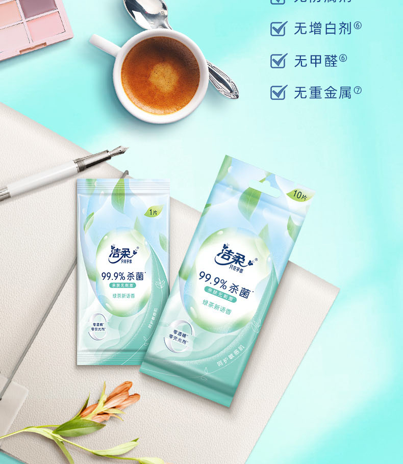 洁柔清爽洁肤湿巾(10片装)独立装10包