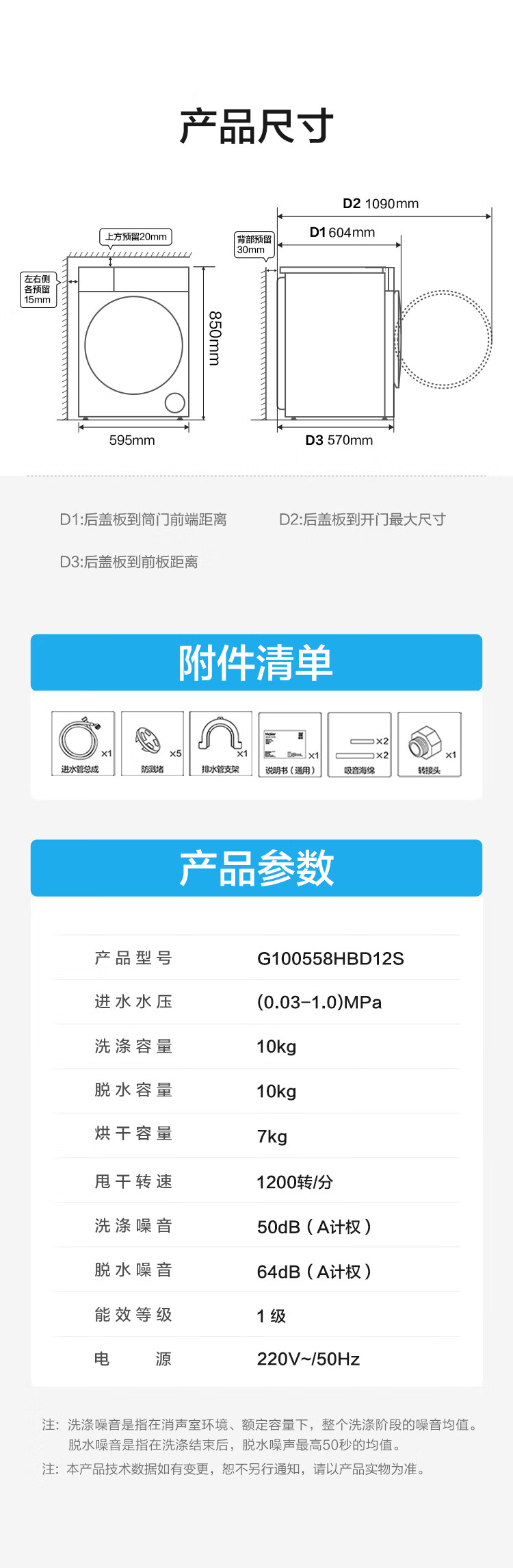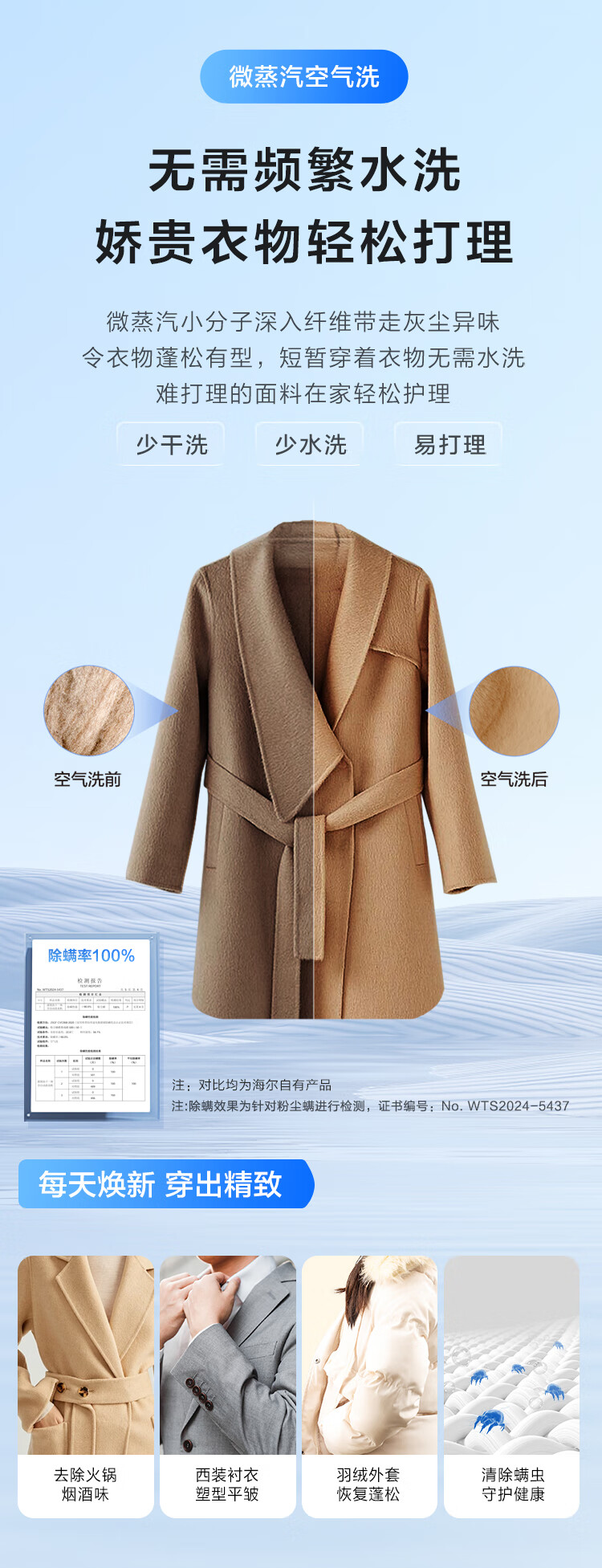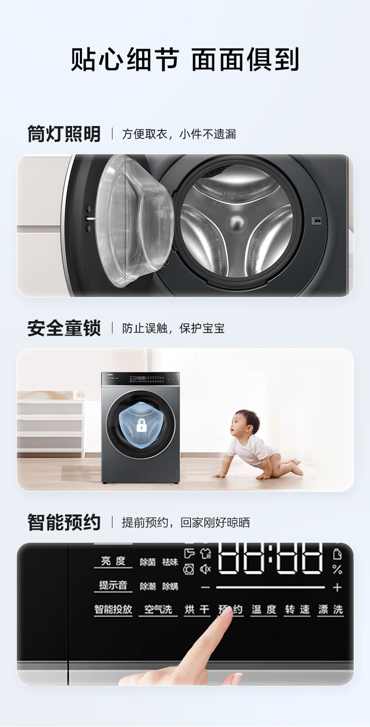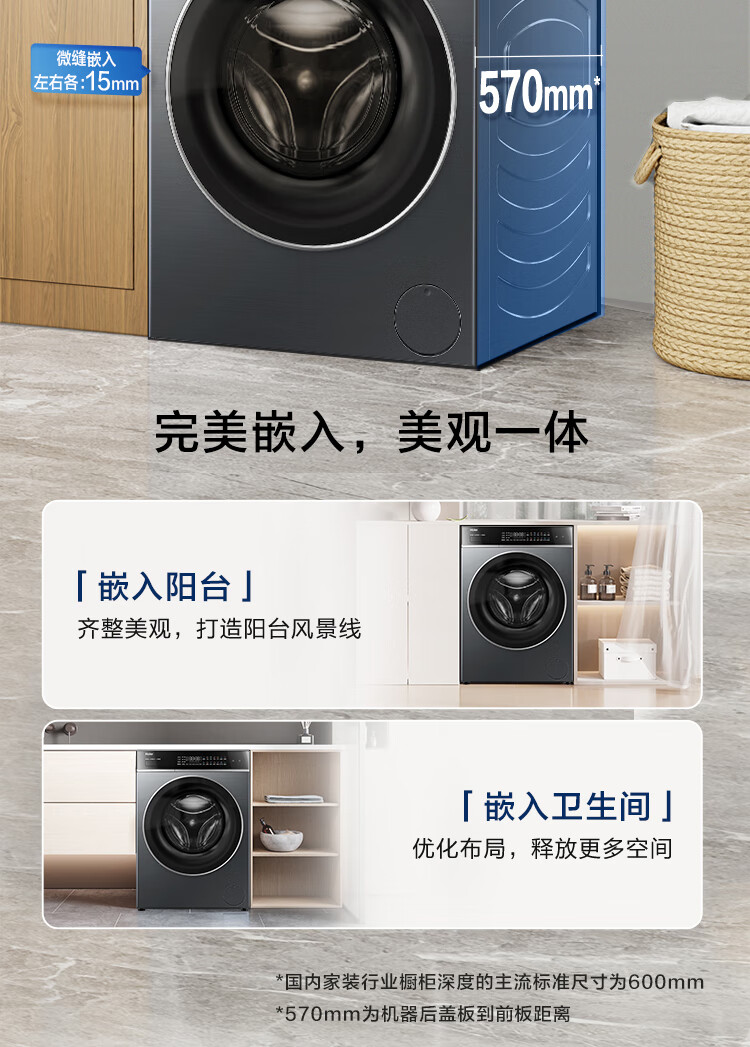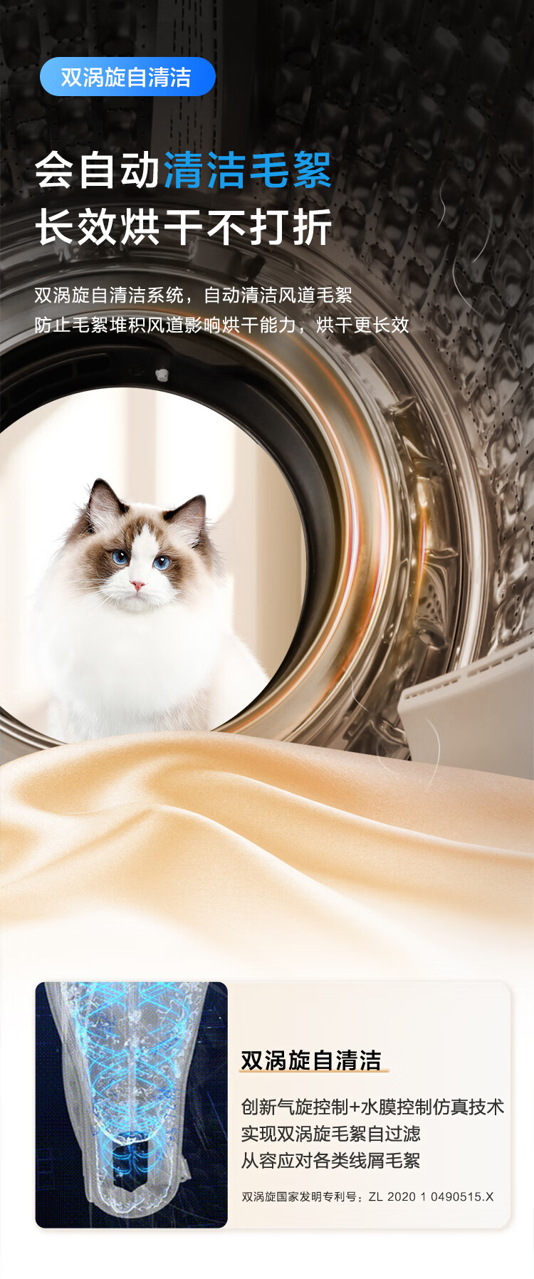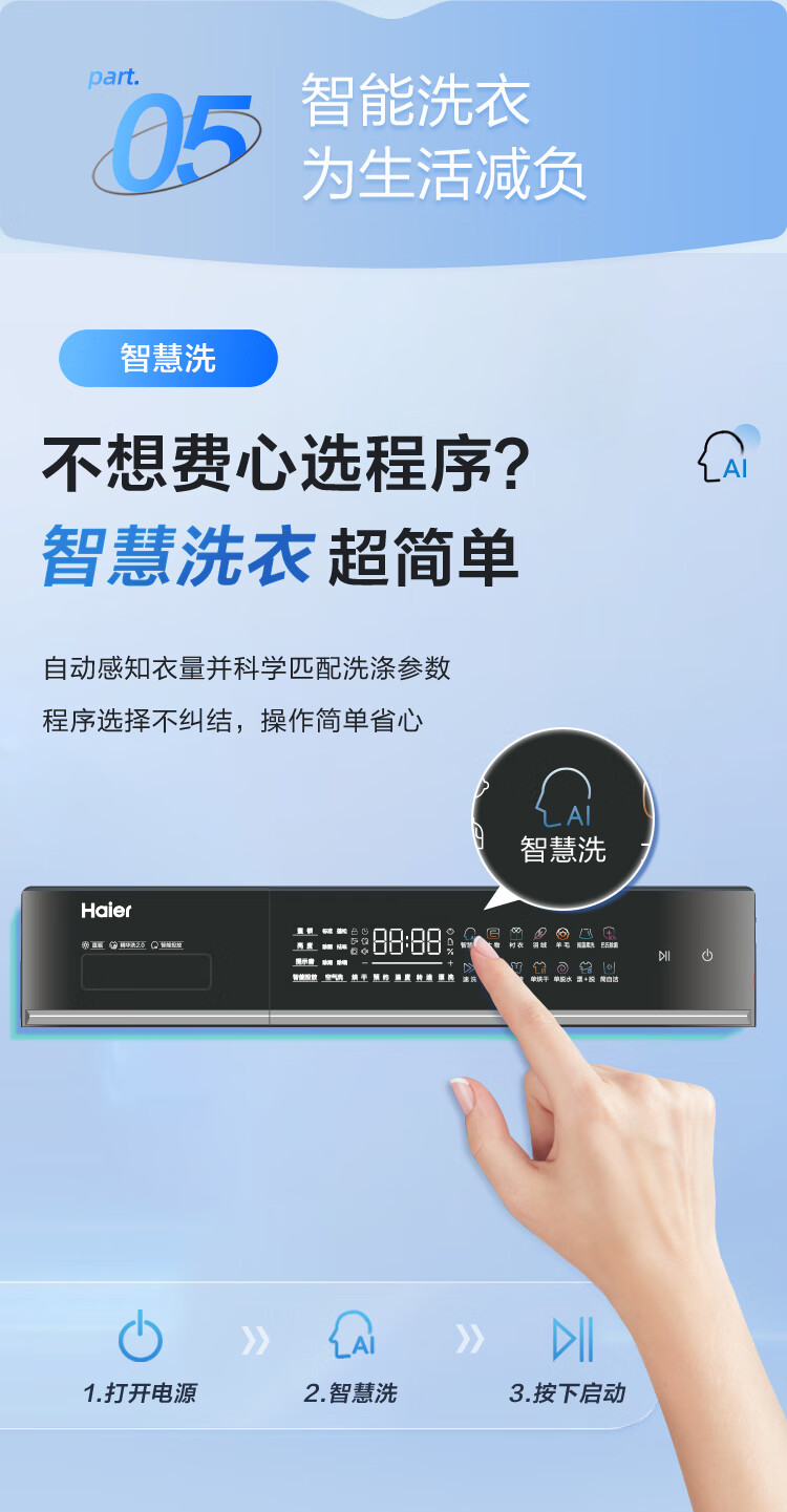海尔(Haier)【云溪直驱精华洗2.0】滚筒洗衣机全自动 10公斤洗烘一体除菌螨G100558HBD12S 超薄家用 直驱精华洗+除菌螨+智投+1.1洗净比