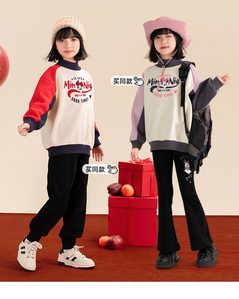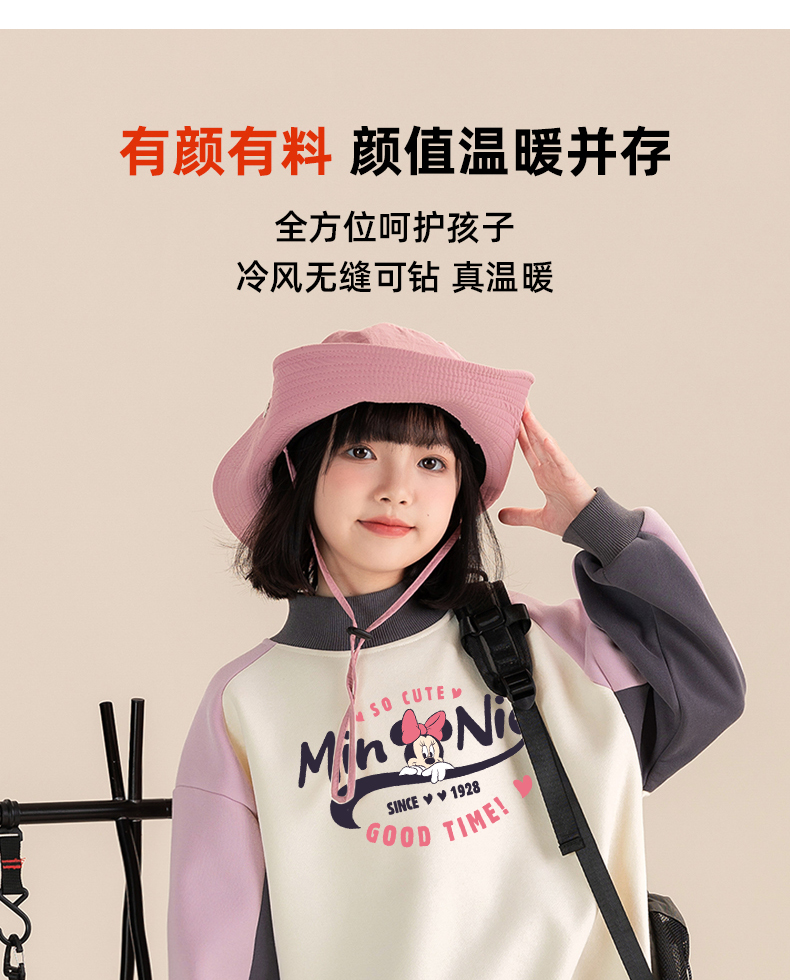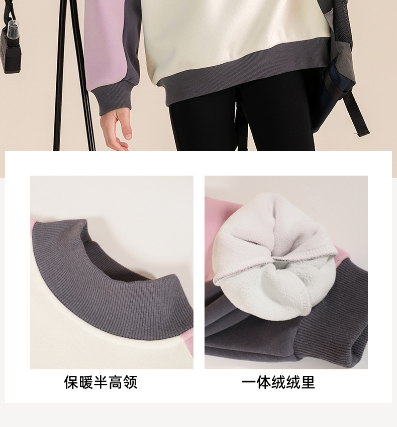 贝田2024新款冬季女童加绒卫衣加厚一体保暖秋冬款洋气女孩上衣潮