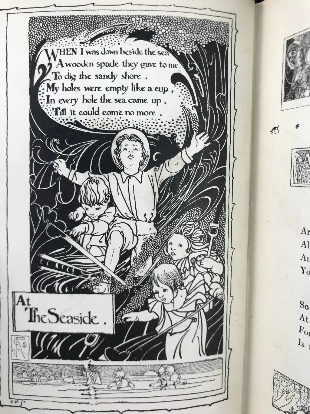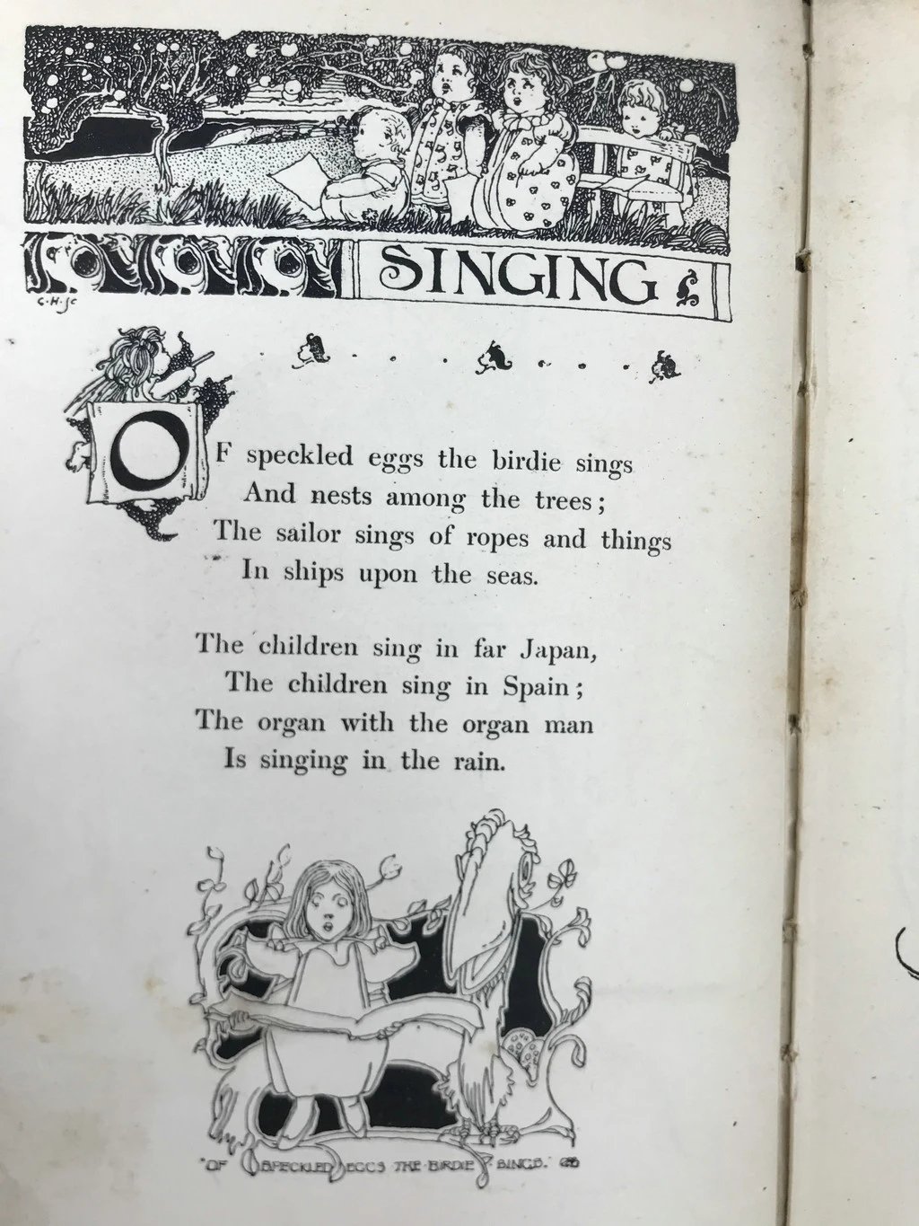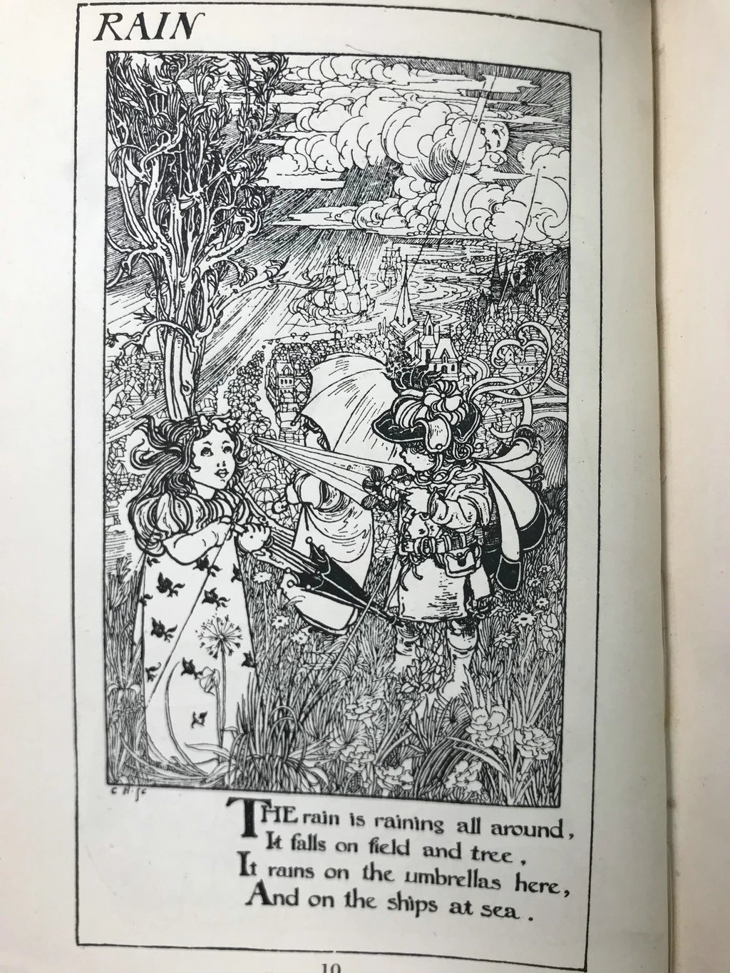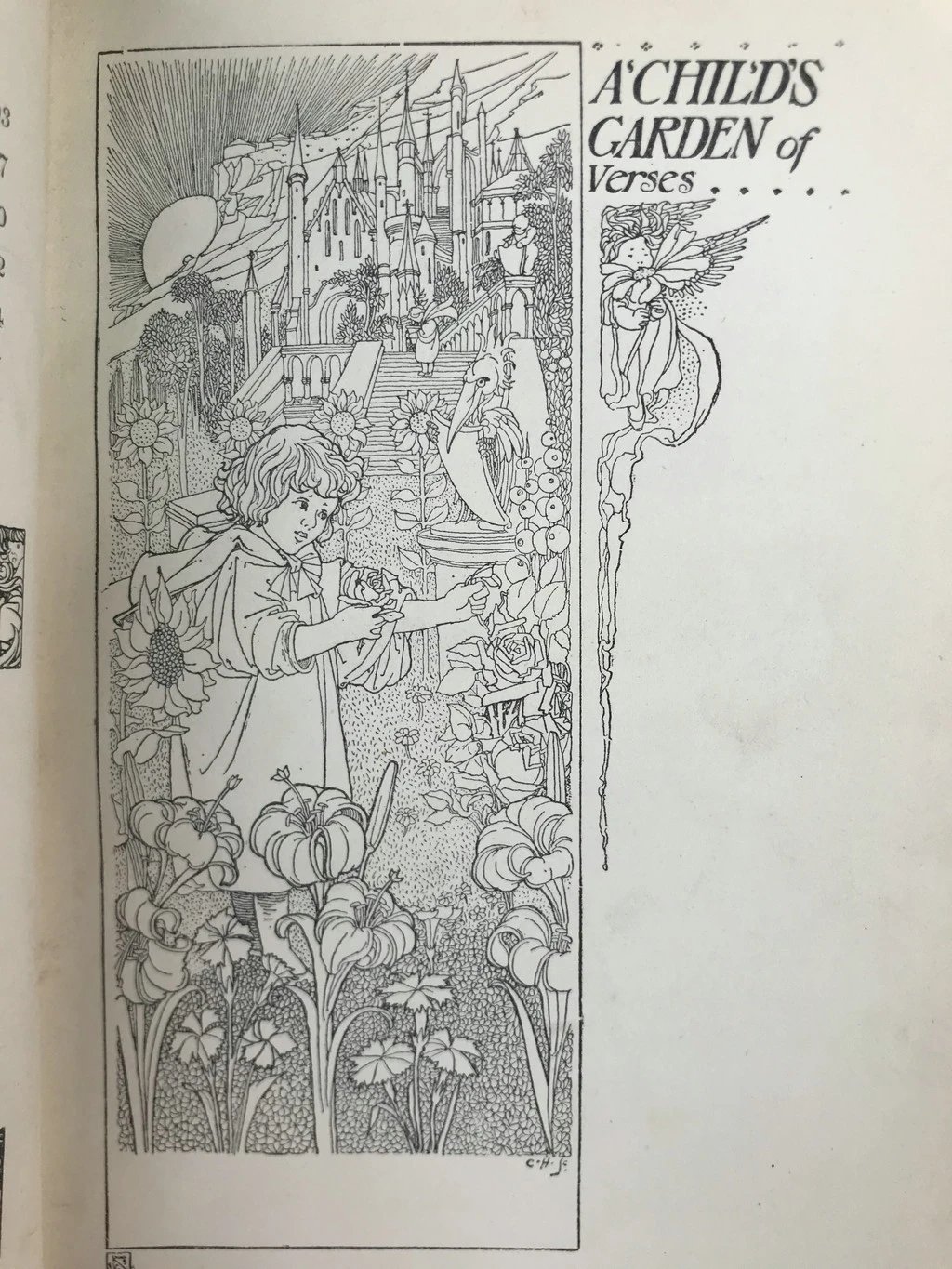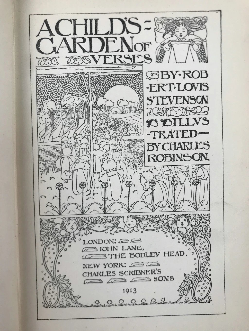 1913年 史蒂文森《童诗花园》 查尔斯·罗宾森百余幅插图 漆布精装36开