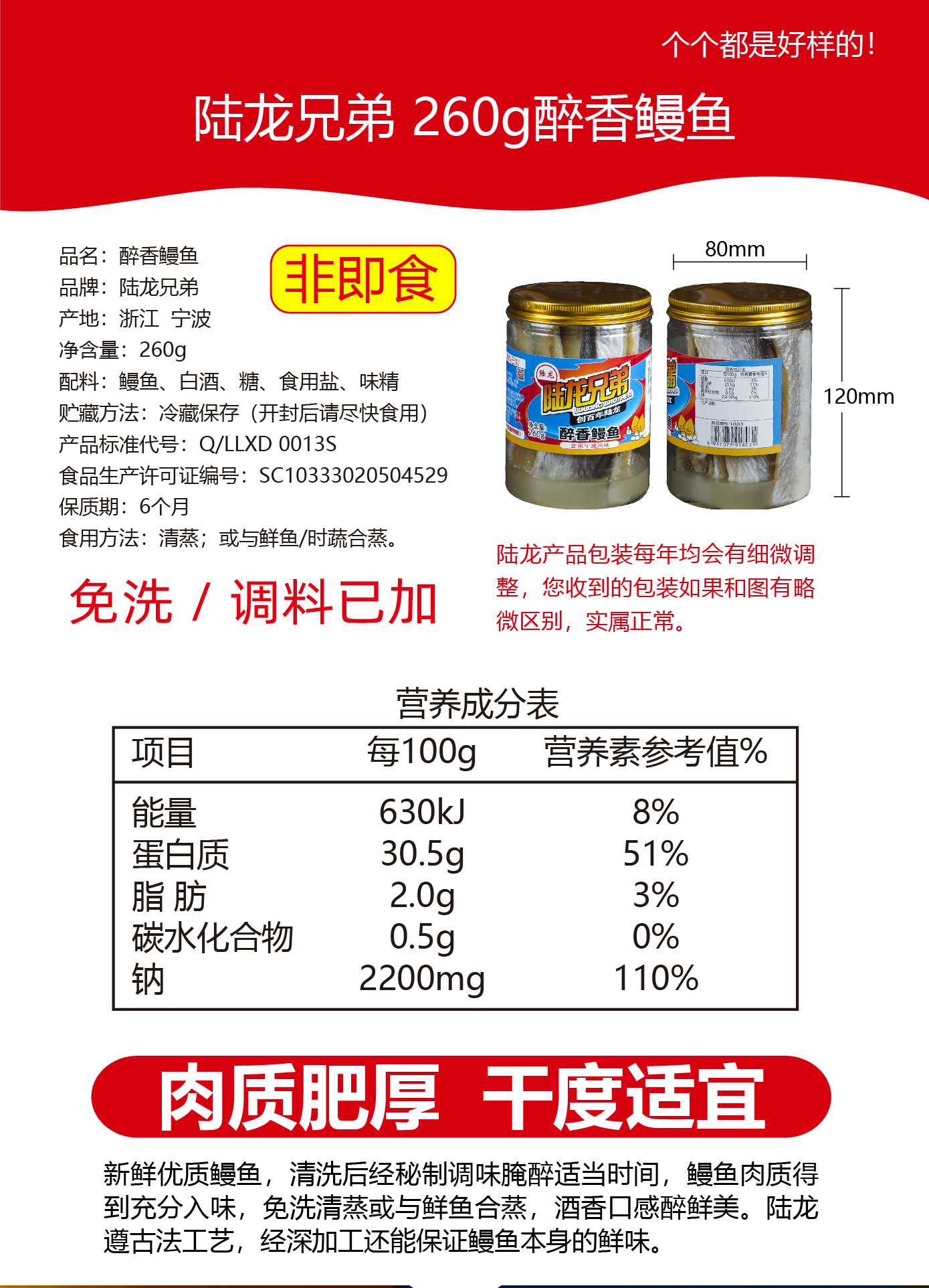 1803陆龙兄弟260g醉香鳗鱼