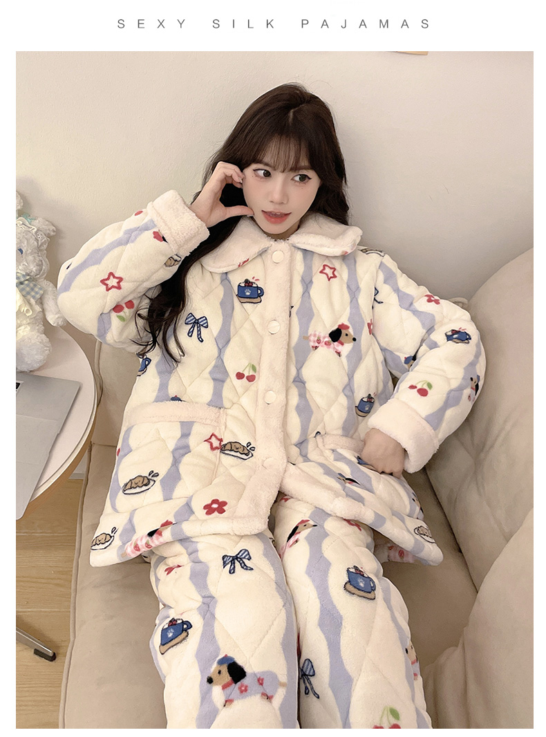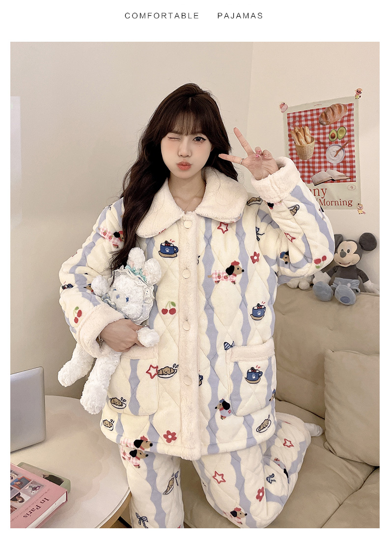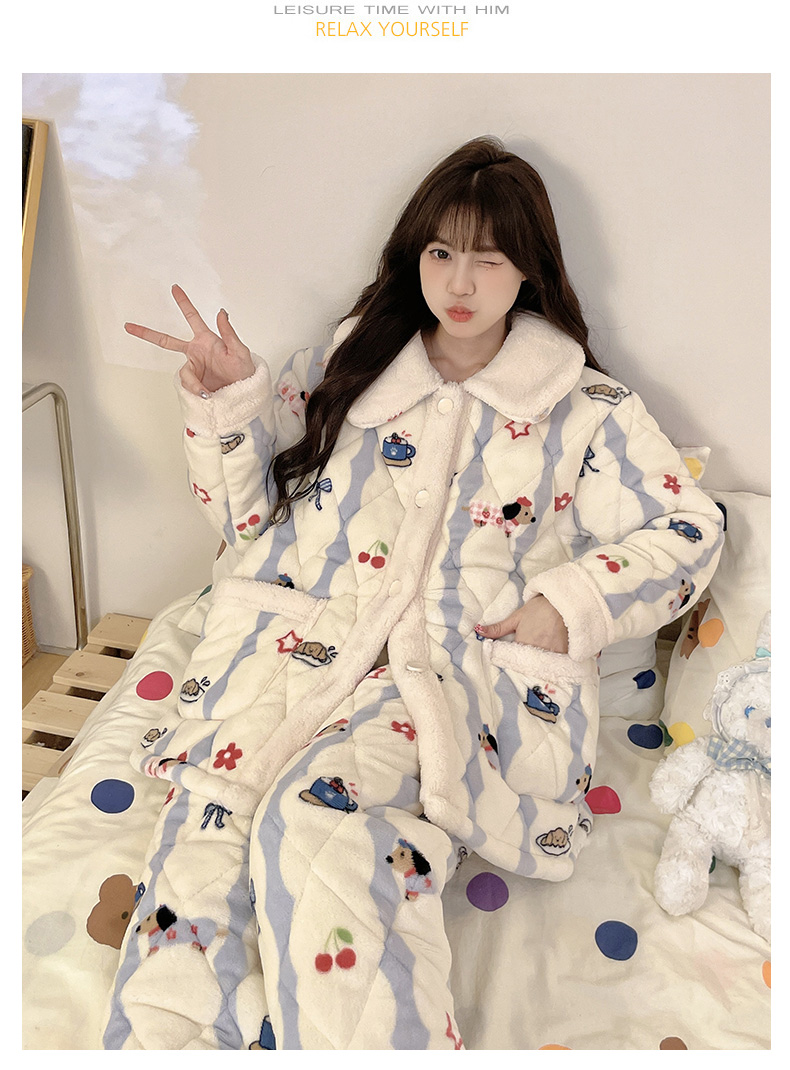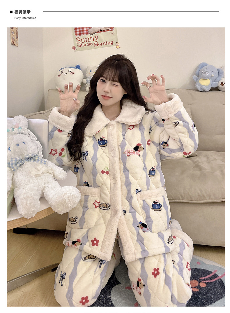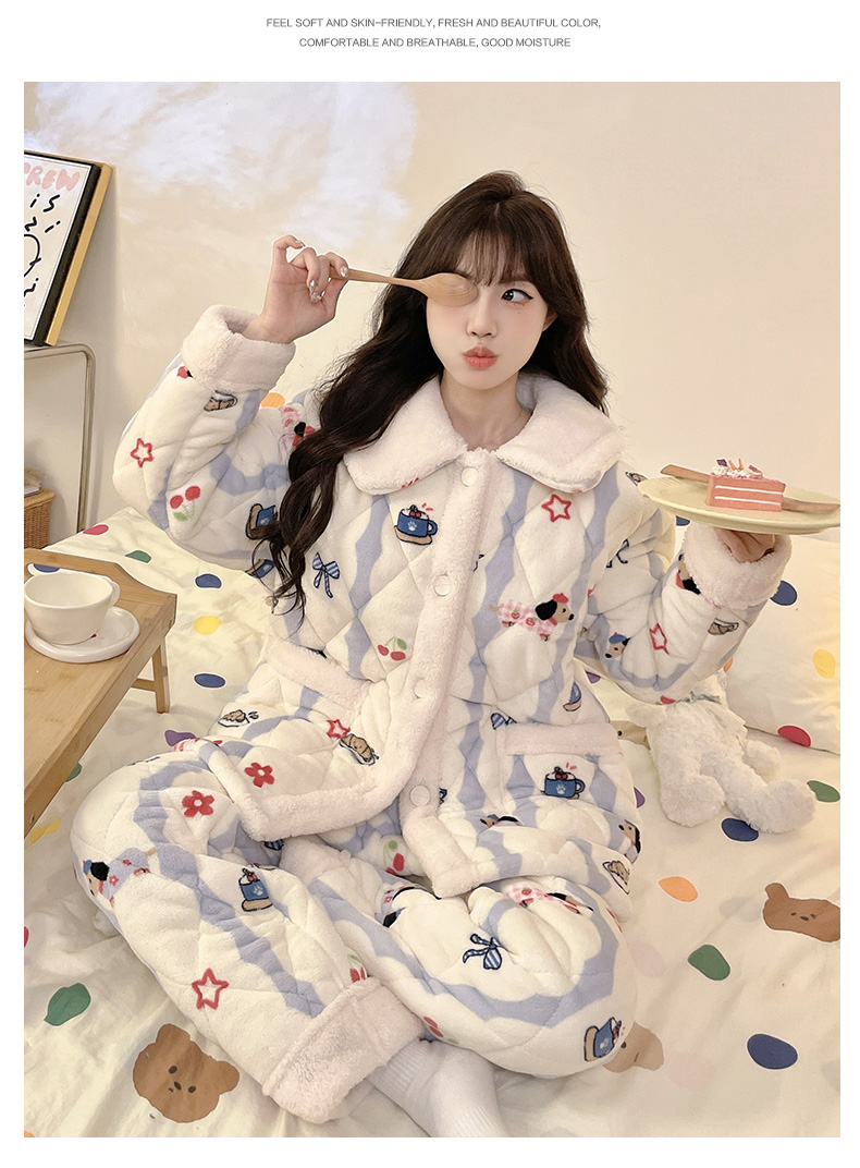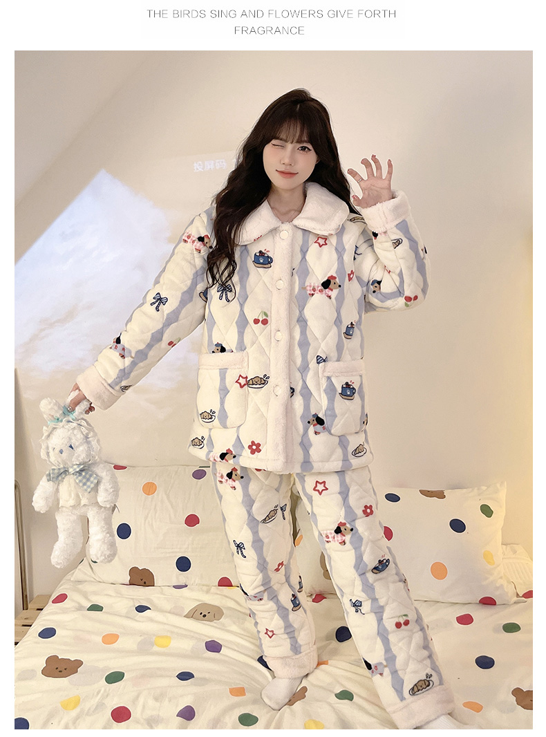 【GZ】无忧购超厚三层夹棉卡通加厚保暖法兰绒女士家居服套装(截单后7天发货)
