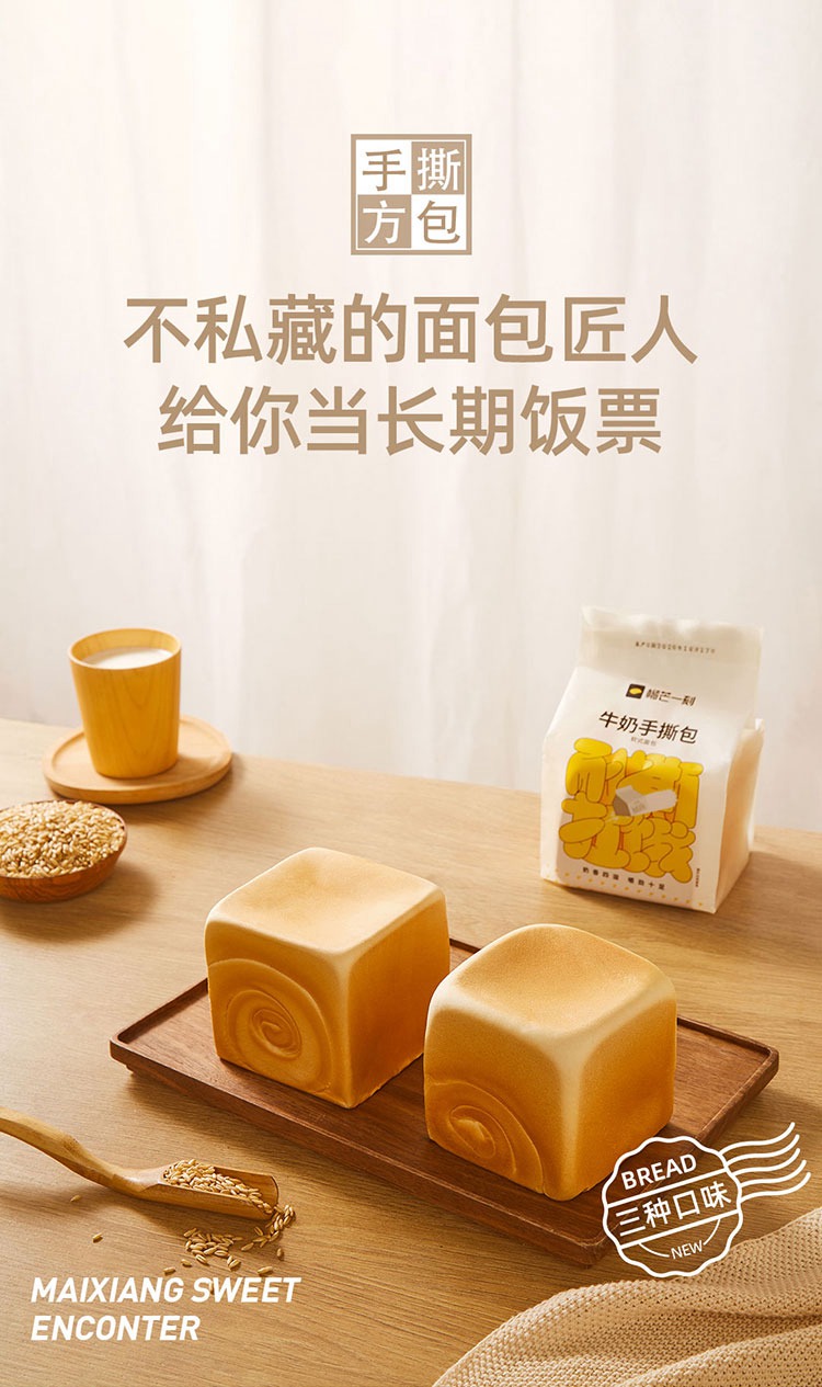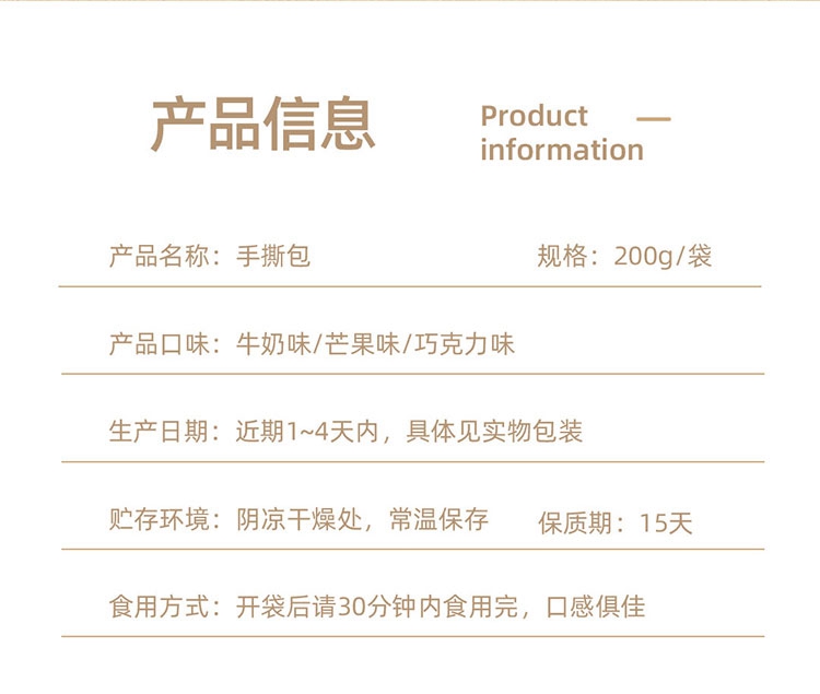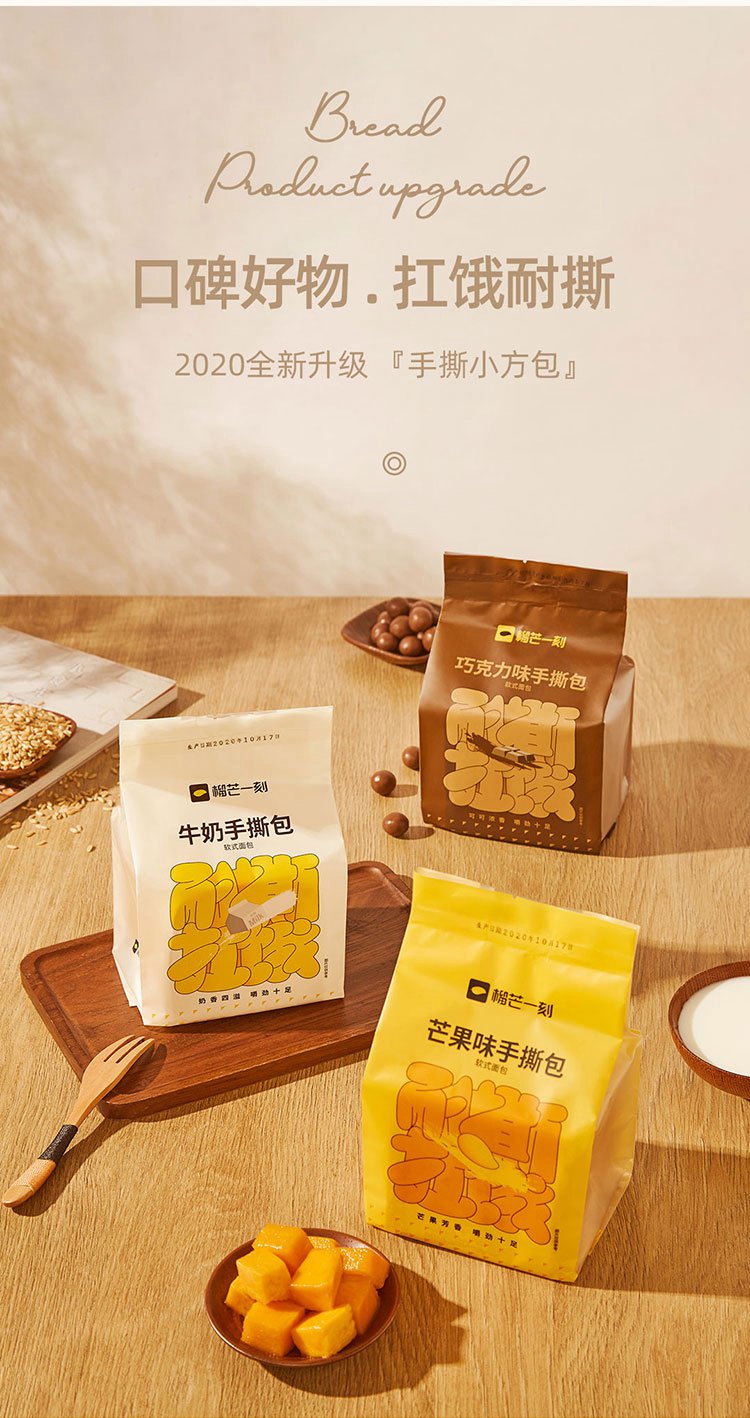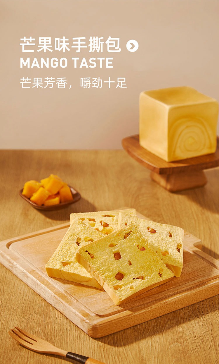 【榴芒一刻】手撕面包 200g/袋*3(巧克力味 芒果味 牛奶原味各1袋) 厂家直发 顺丰包邮
