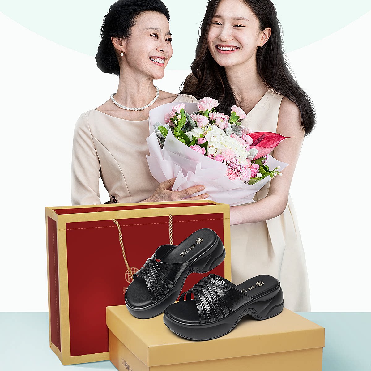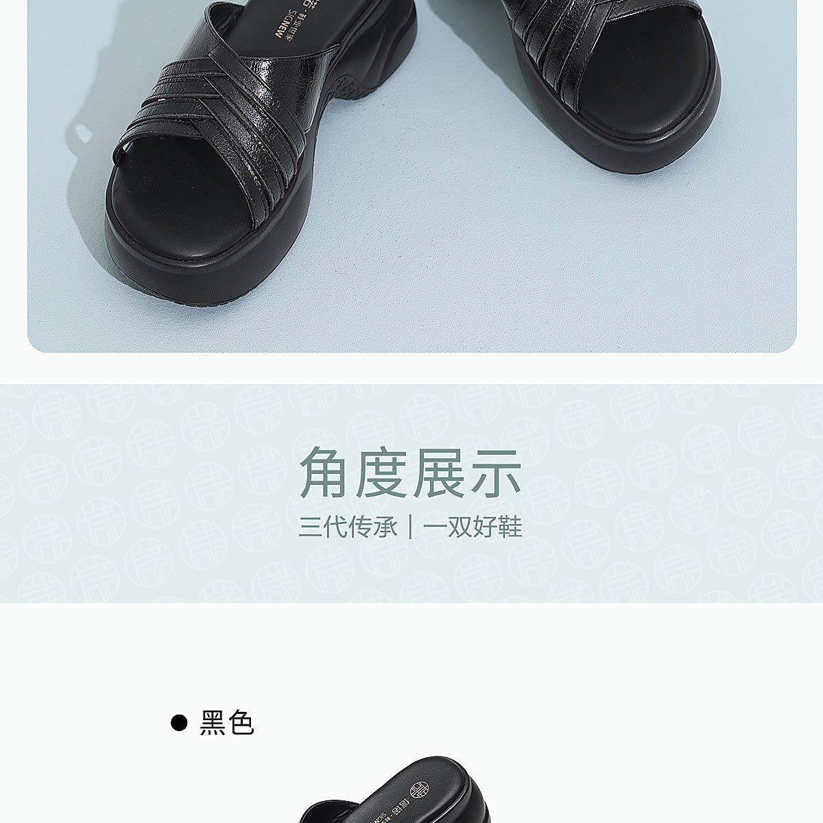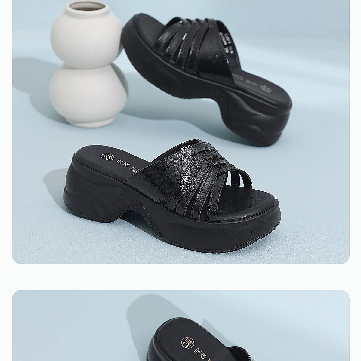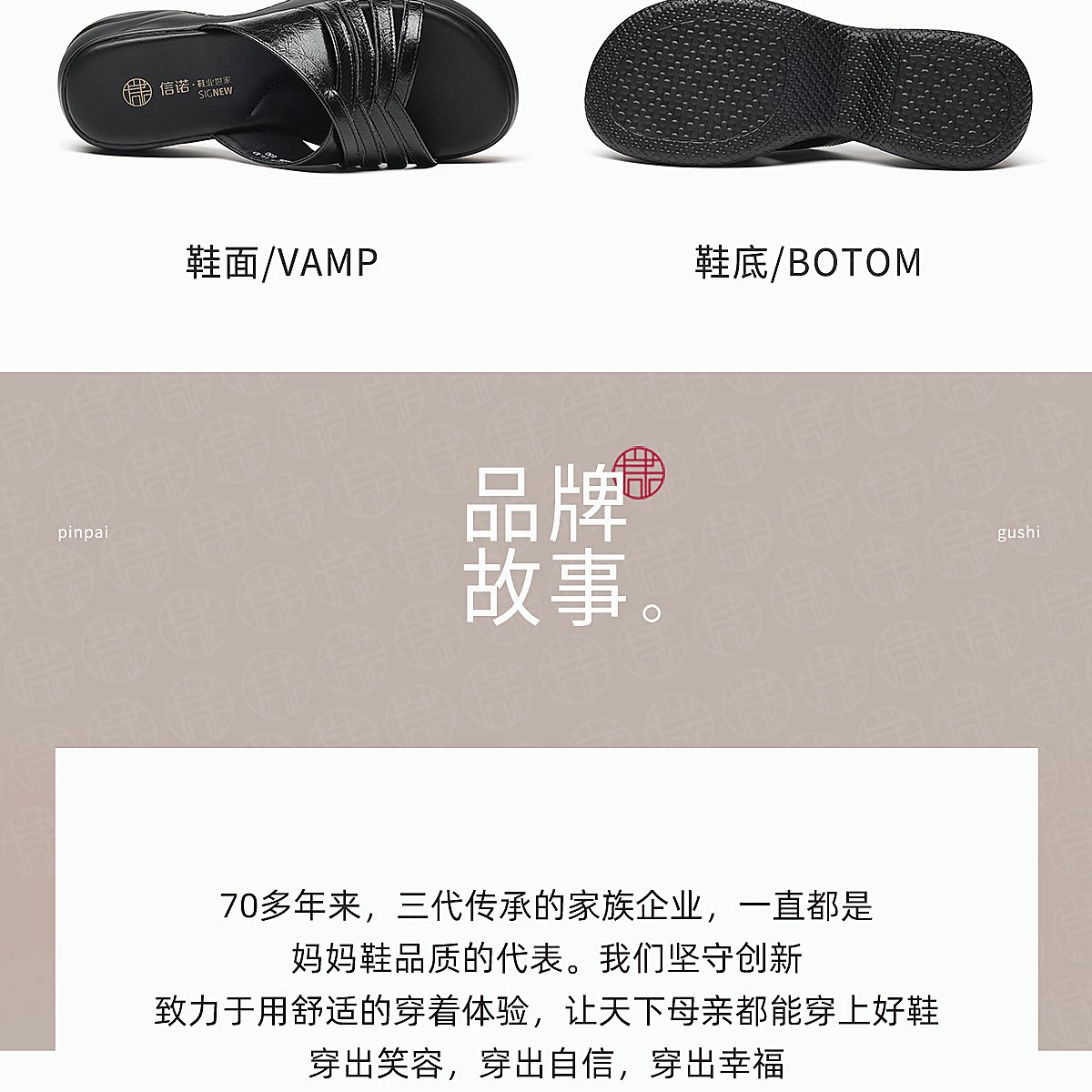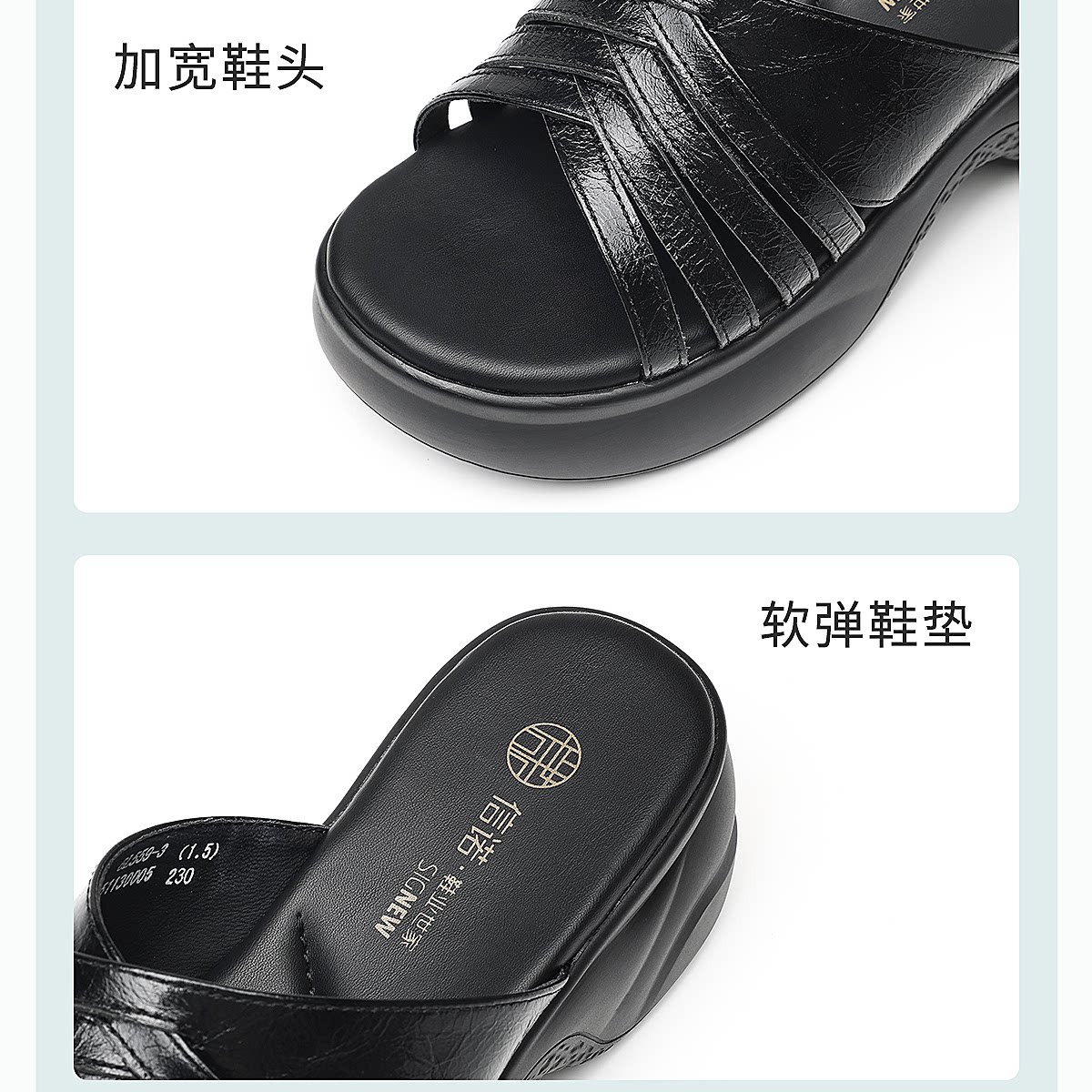 信诺真皮妈妈凉鞋厚底增高一字拖外穿舒适百搭女鞋子2026夏季新款6L559-3