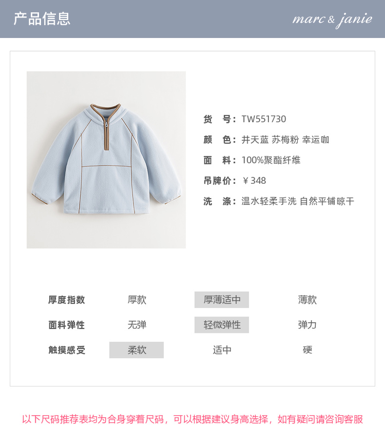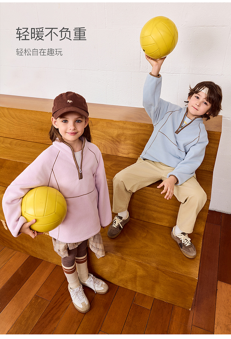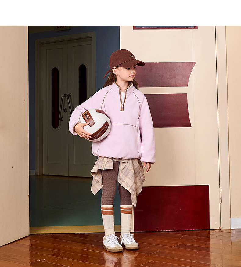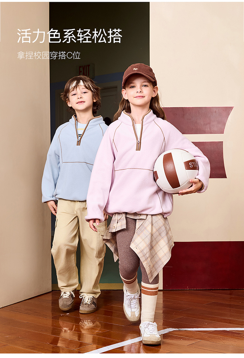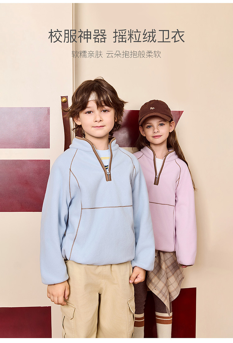 【抗静电】马克珍妮男女童摇粒绒半拉链卫衣2025年秋装新款551730