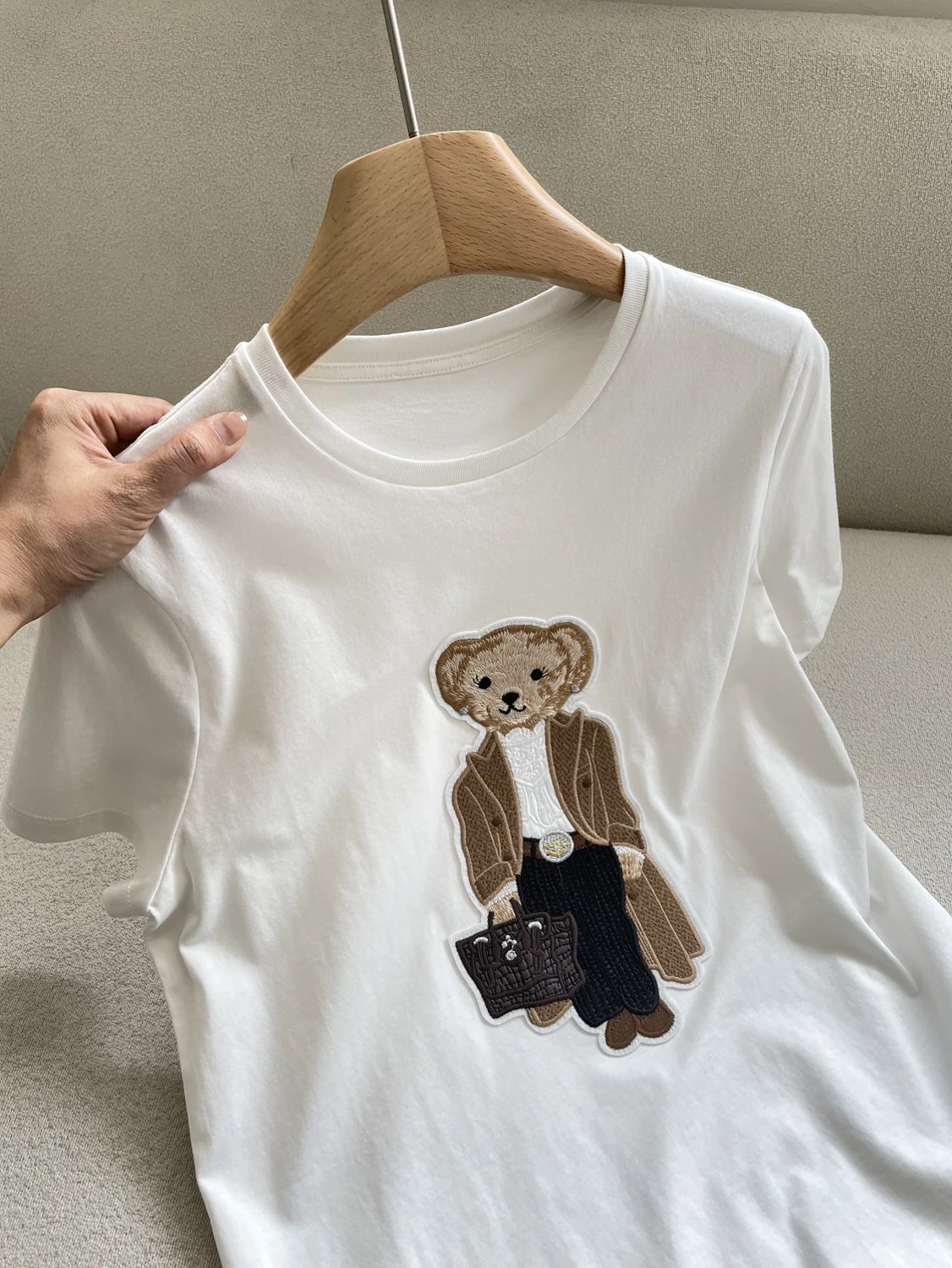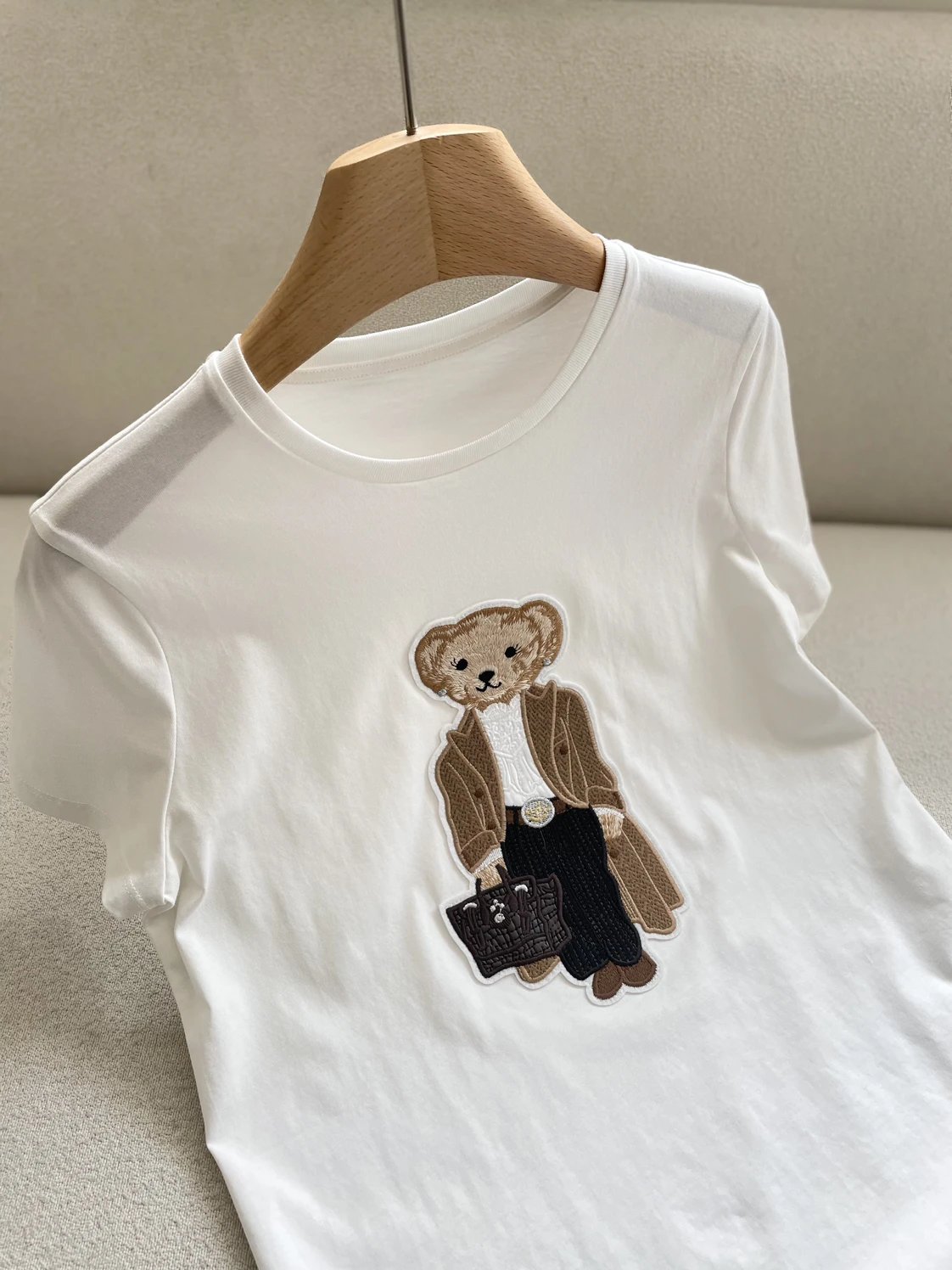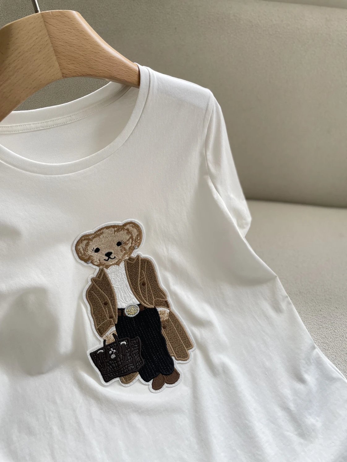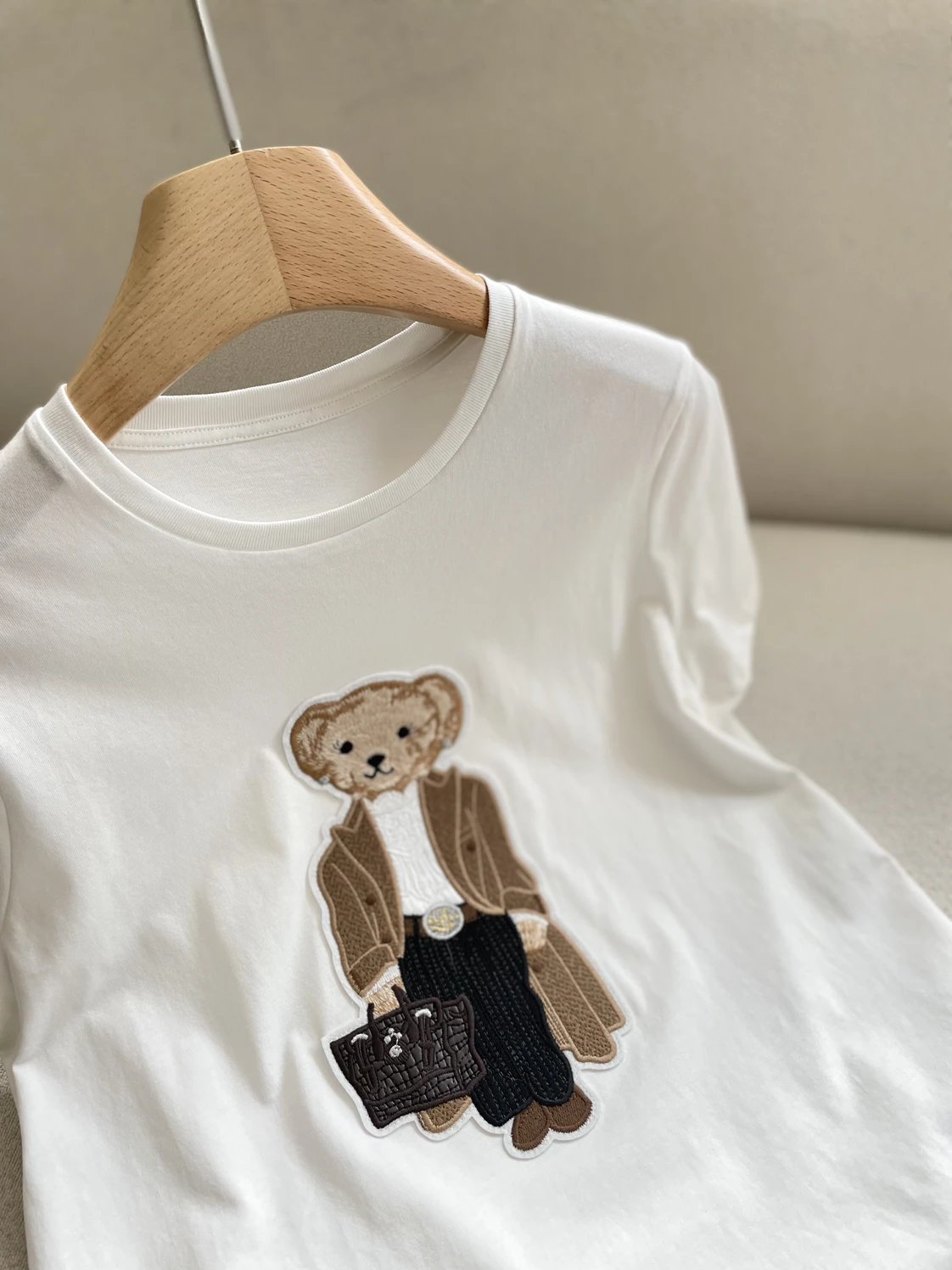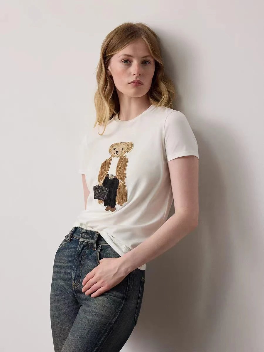 人手福利款 紫标小熊T 埃及长绒棉 小熊刺绣短袖T恤