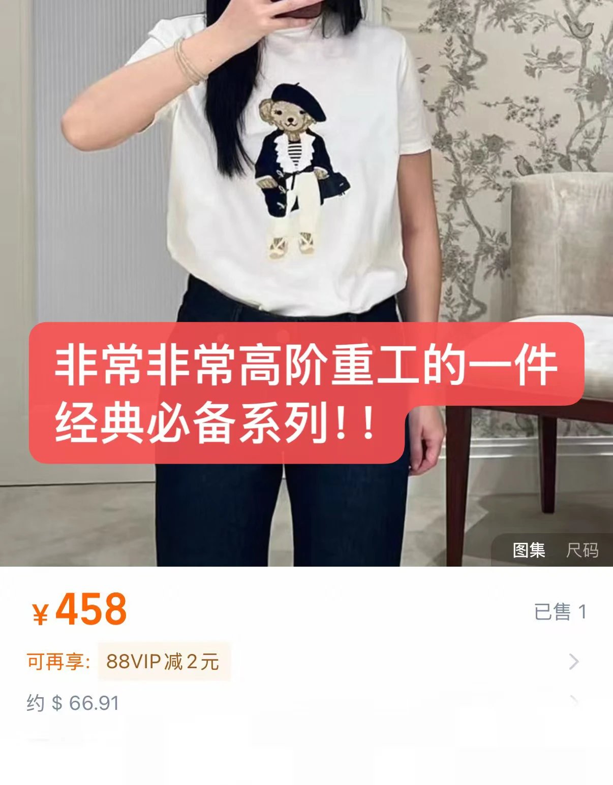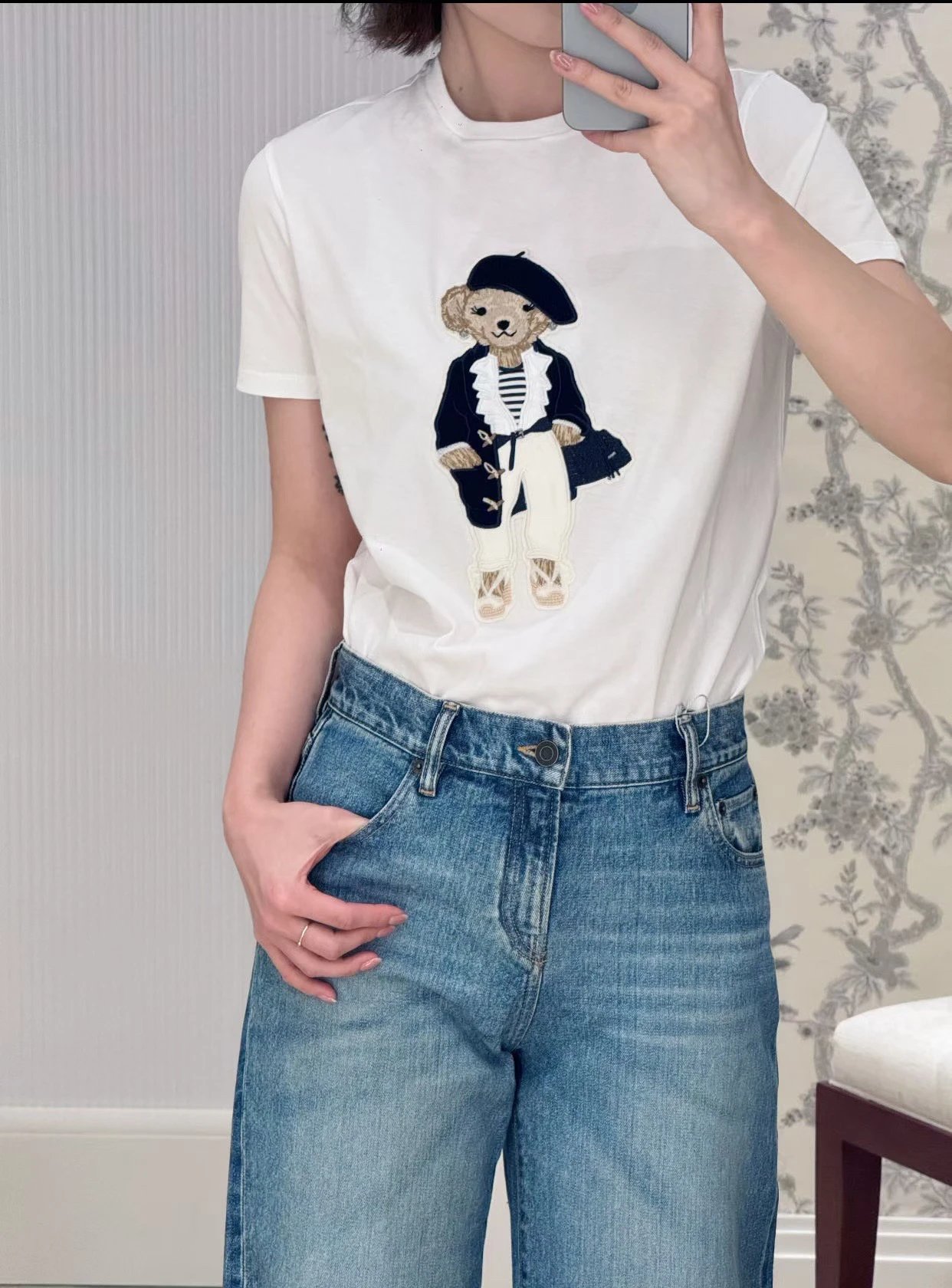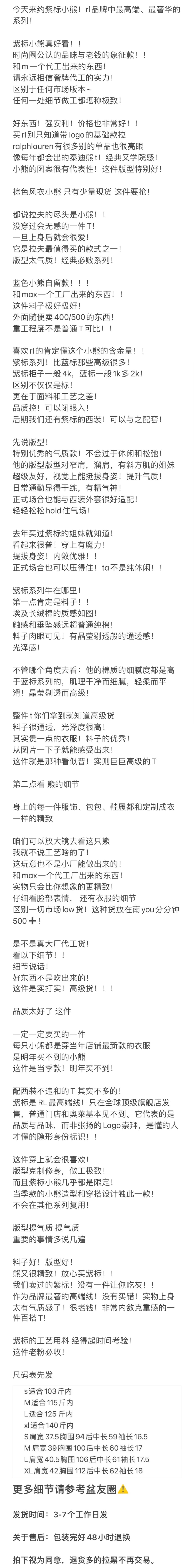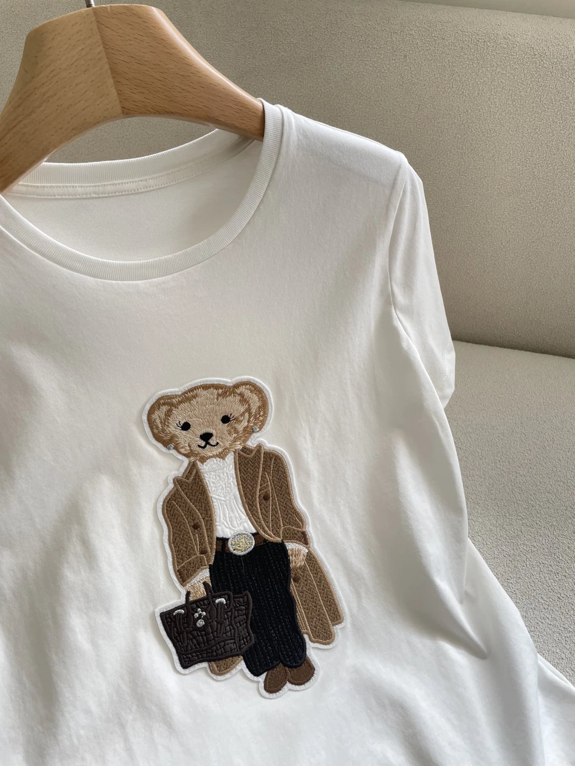 人手福利款 紫标小熊T 埃及长绒棉 小熊刺绣短袖T恤