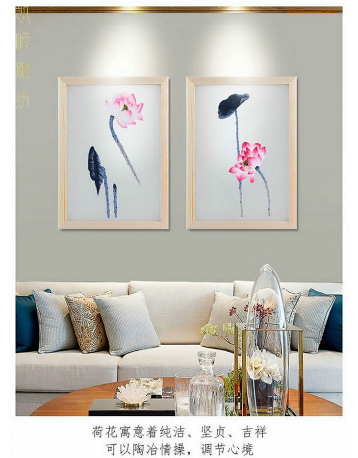 凯崎湘绣 梅兰竹菊双面绣 手工刺绣diy材料 初学绣花立体材料包 礼物套件 白色荷韵材料包 带框 喜上眉梢 材料包+框