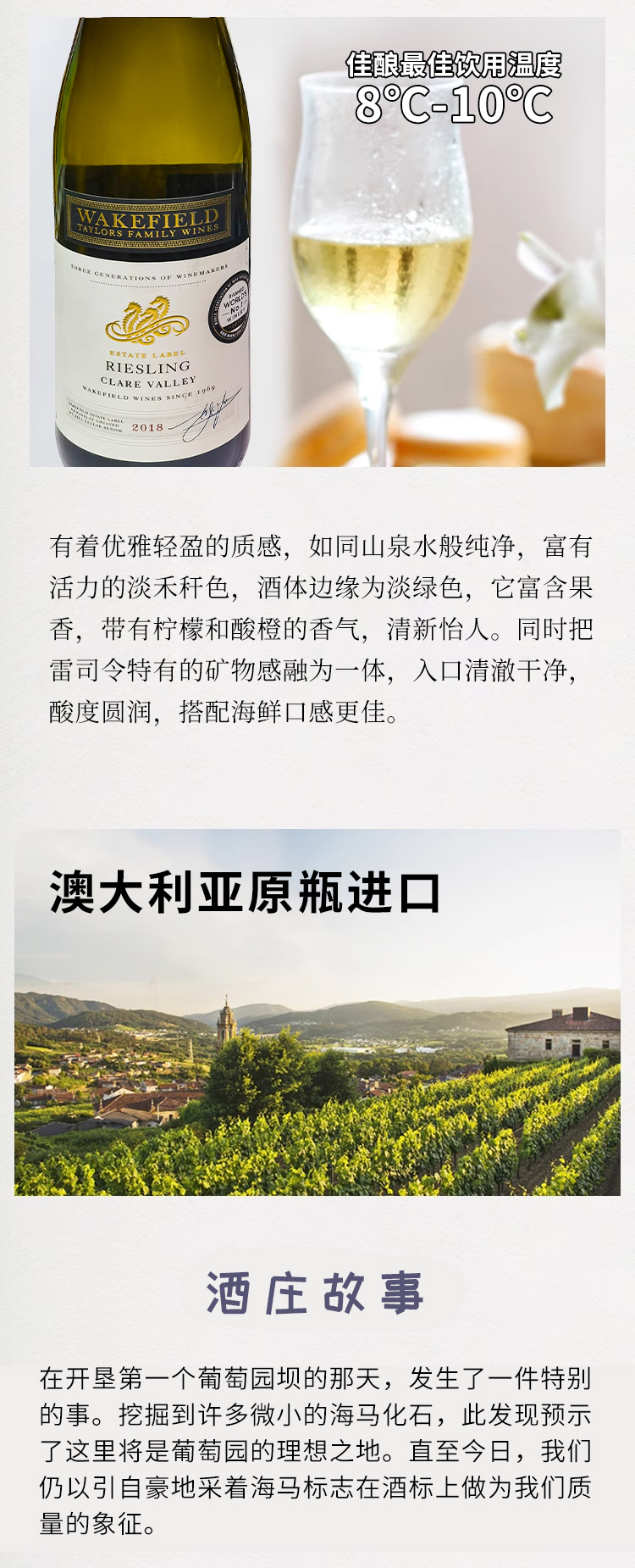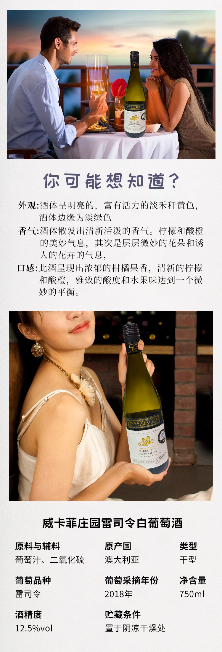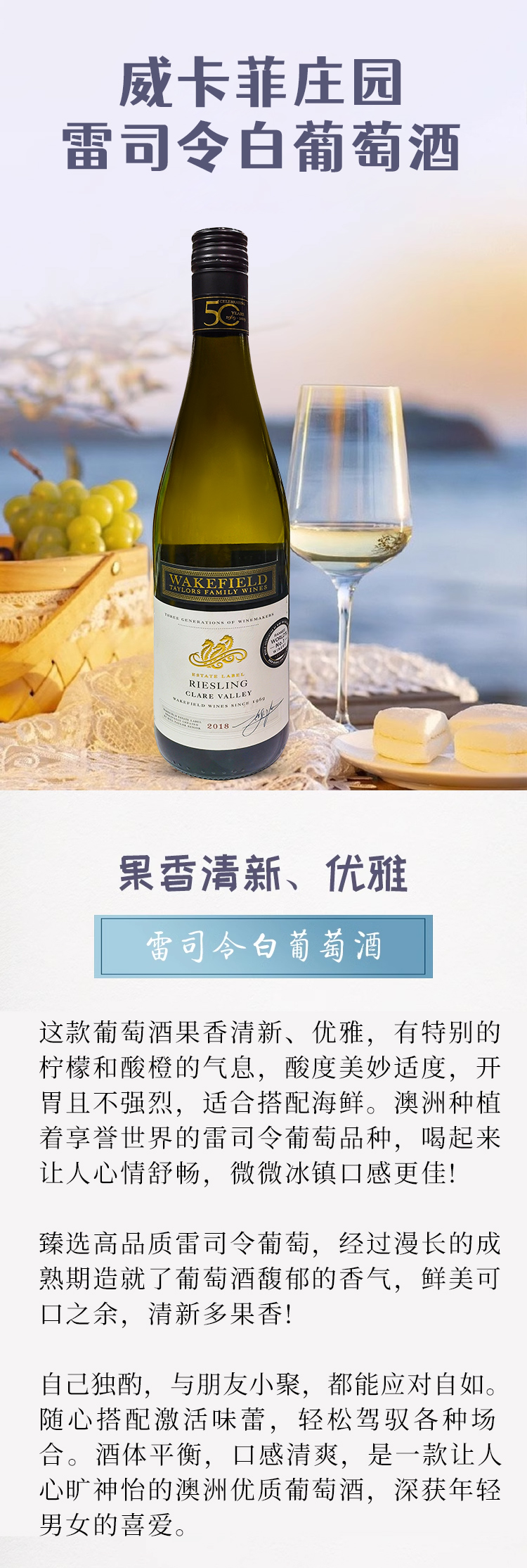澳大利亚进口威卡菲庄园雷司令白葡萄酒750ml