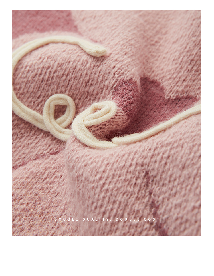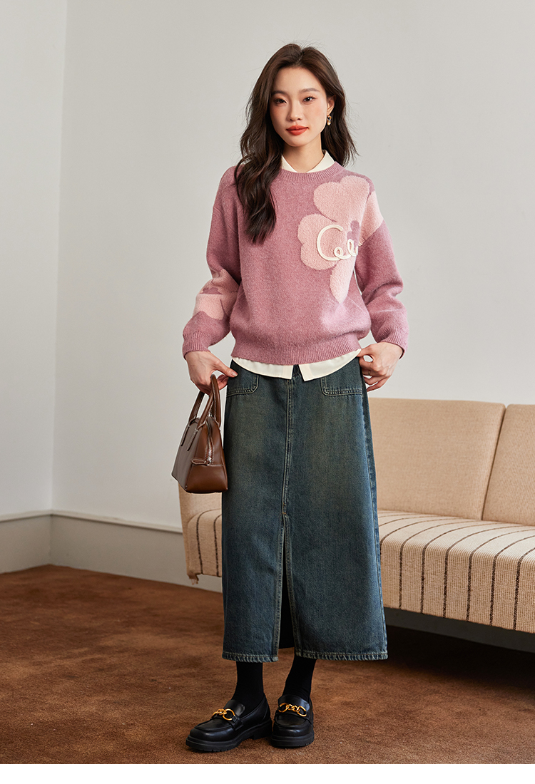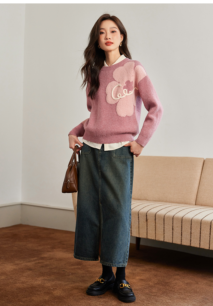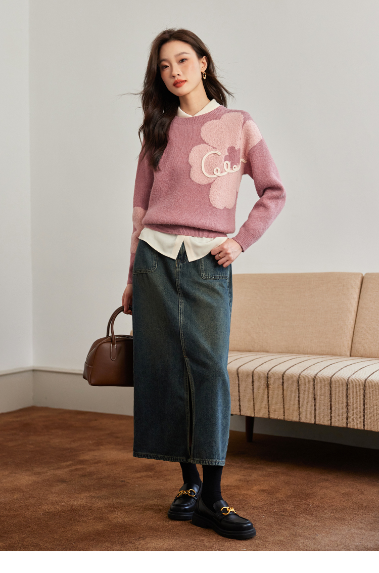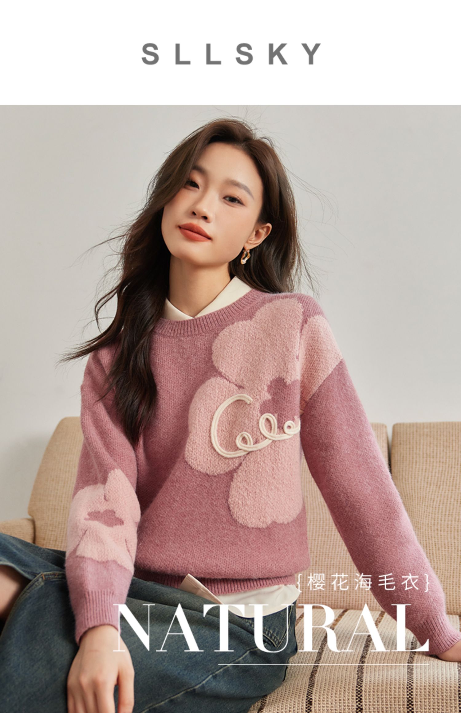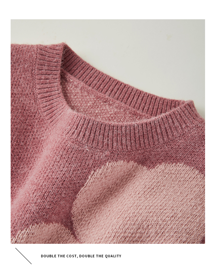 【129选3件,不退换】熙世界粉色花朵软糯毛衣女慵懒风2025秋冬新款超好看套头针织衫
