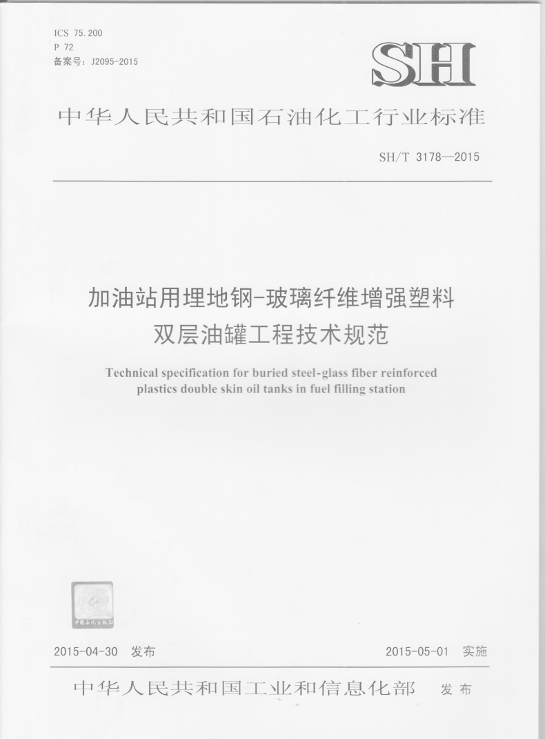 加油站用埋地钢-玻璃纤维增强塑料双层油罐工程技术规范SH/T 3178-2015
