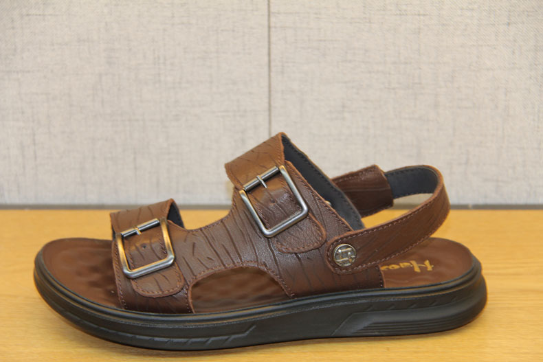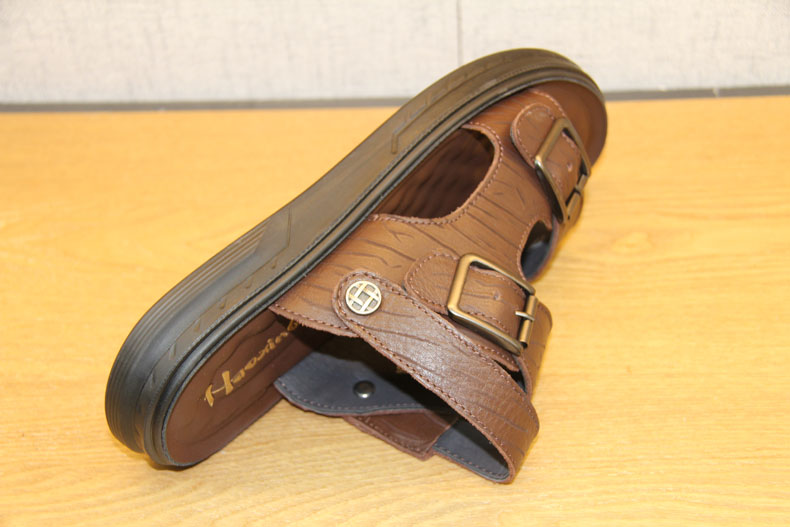 豪行夏季新款10255255真皮露趾软底两用凉鞋潮鞋真皮沙滩鞋凉拖鞋 专柜正品