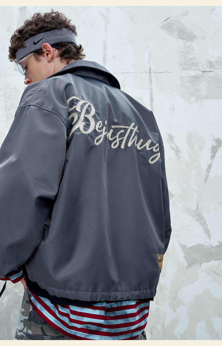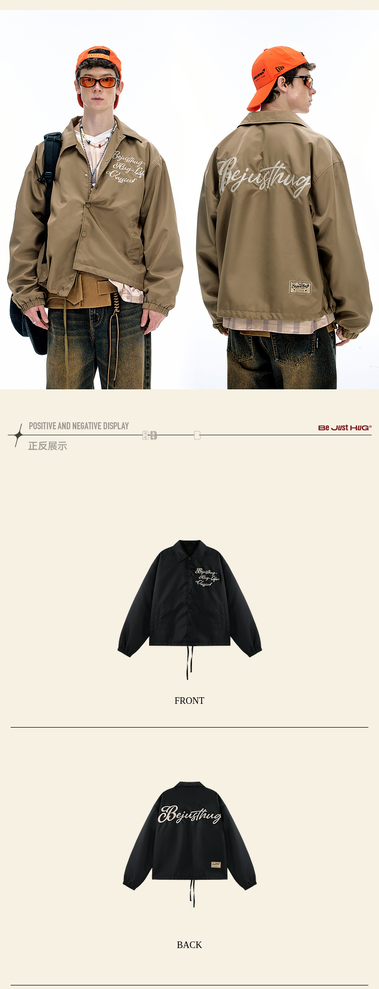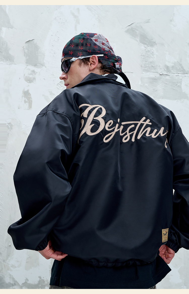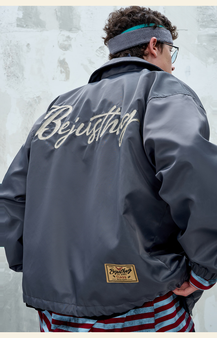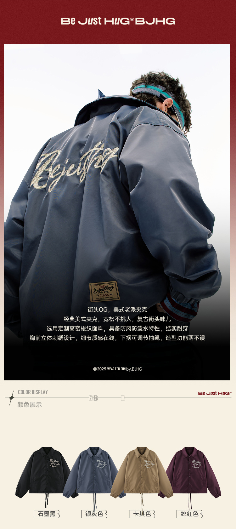 BJHG不计后果美式复古外套男女款秋季新款刺绣棒球服教练夹克外套
