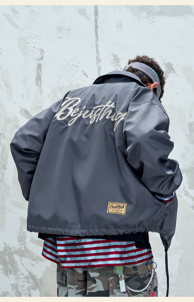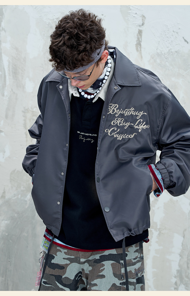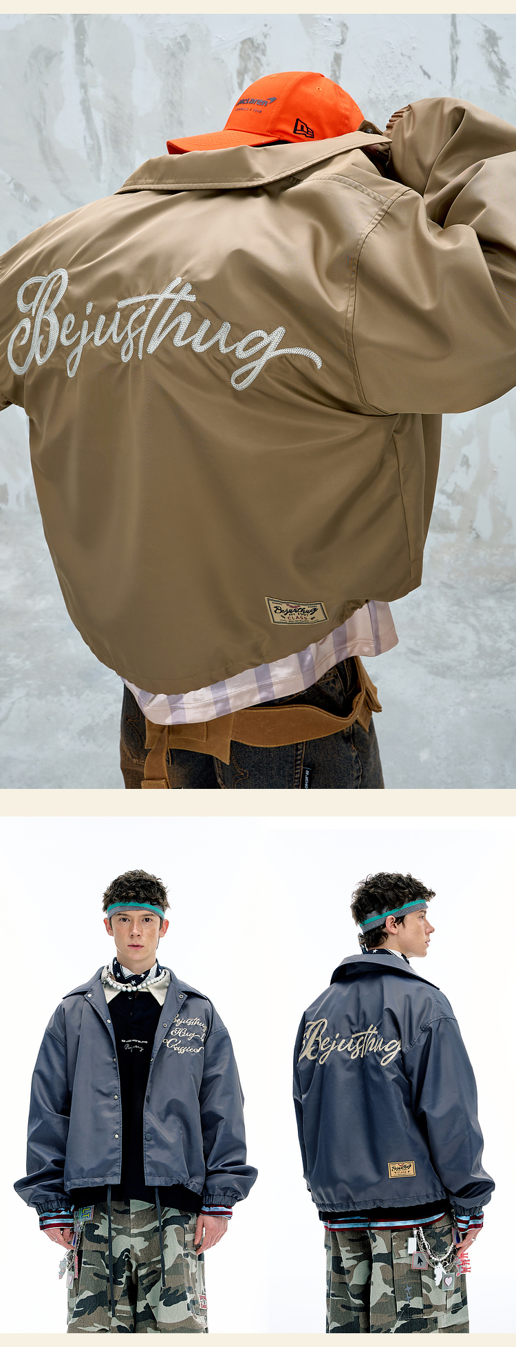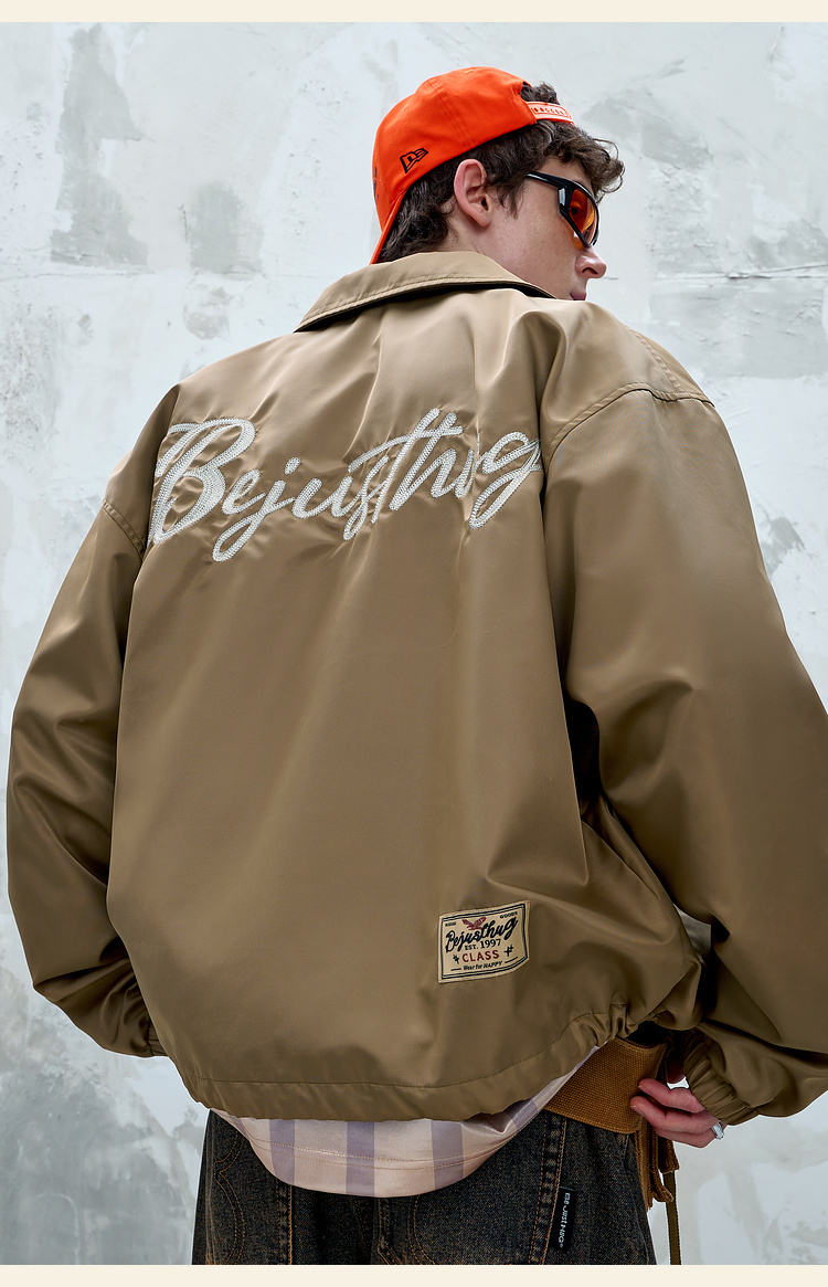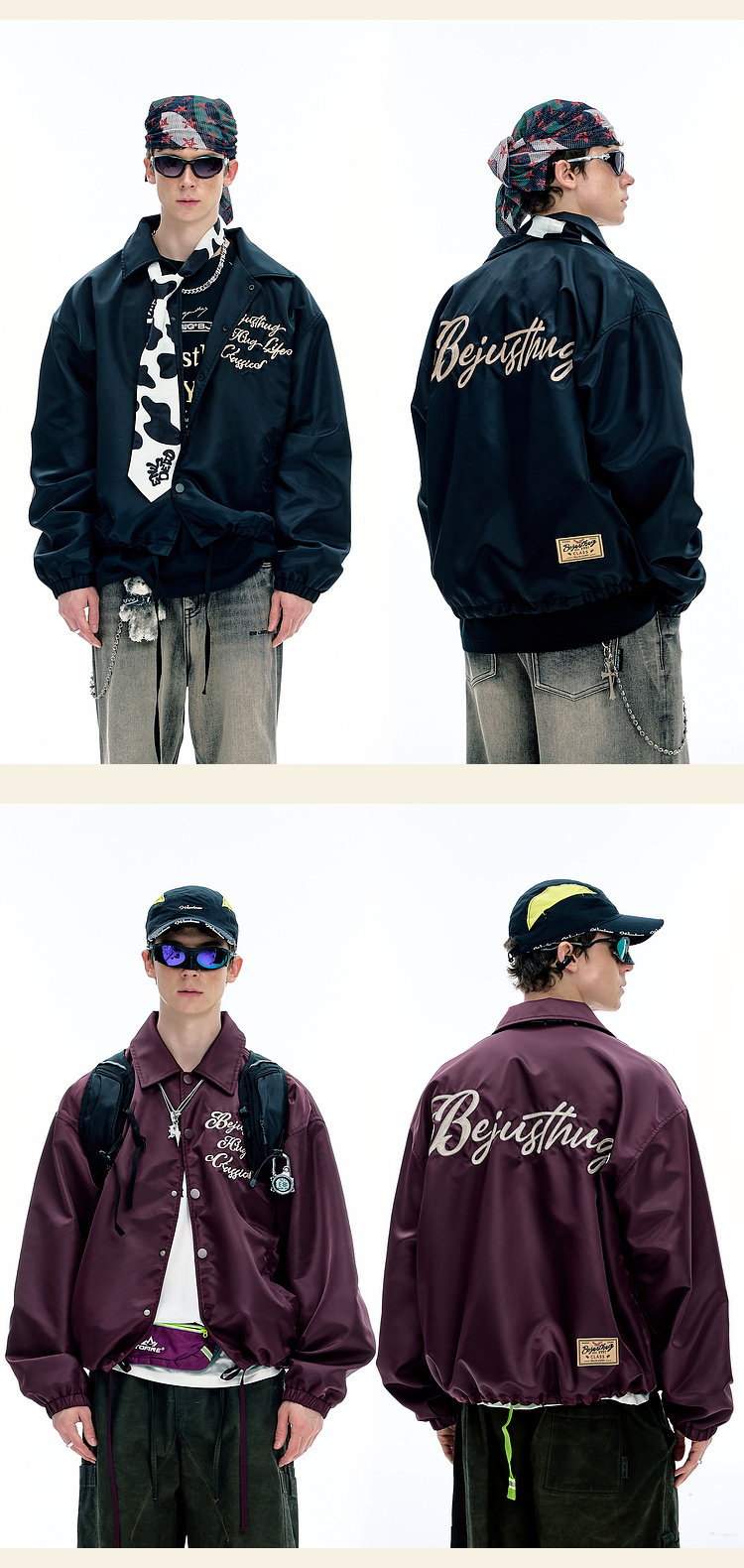 BJHG不计后果美式复古外套男女款秋季新款刺绣棒球服教练夹克外套