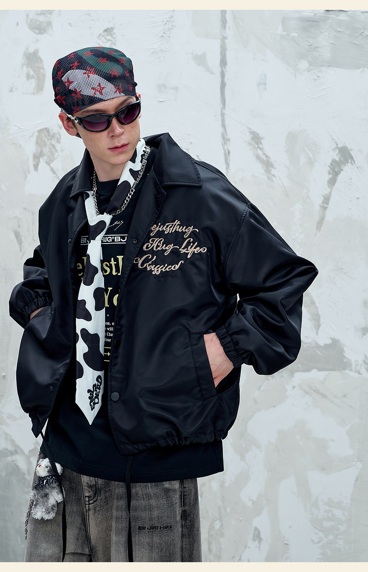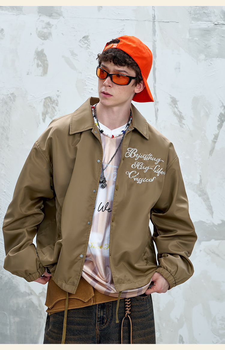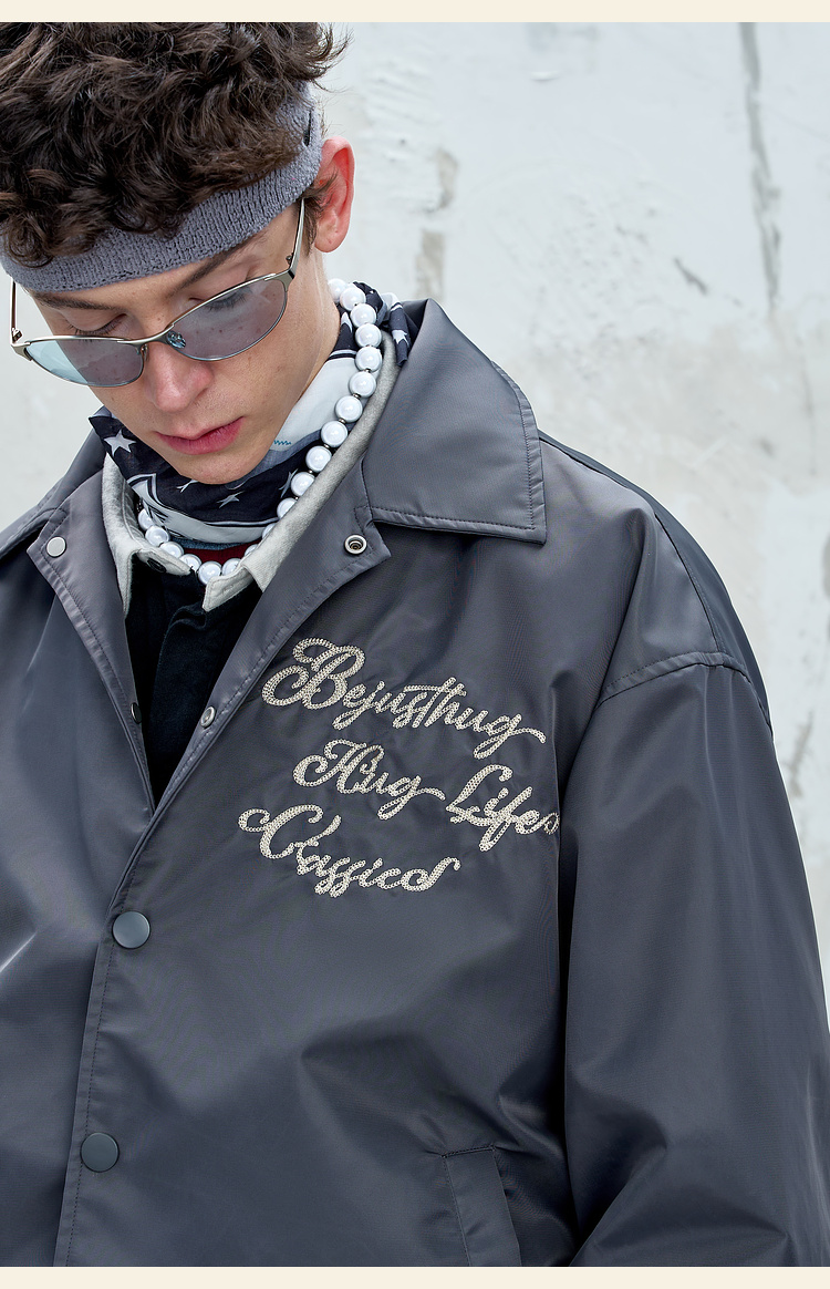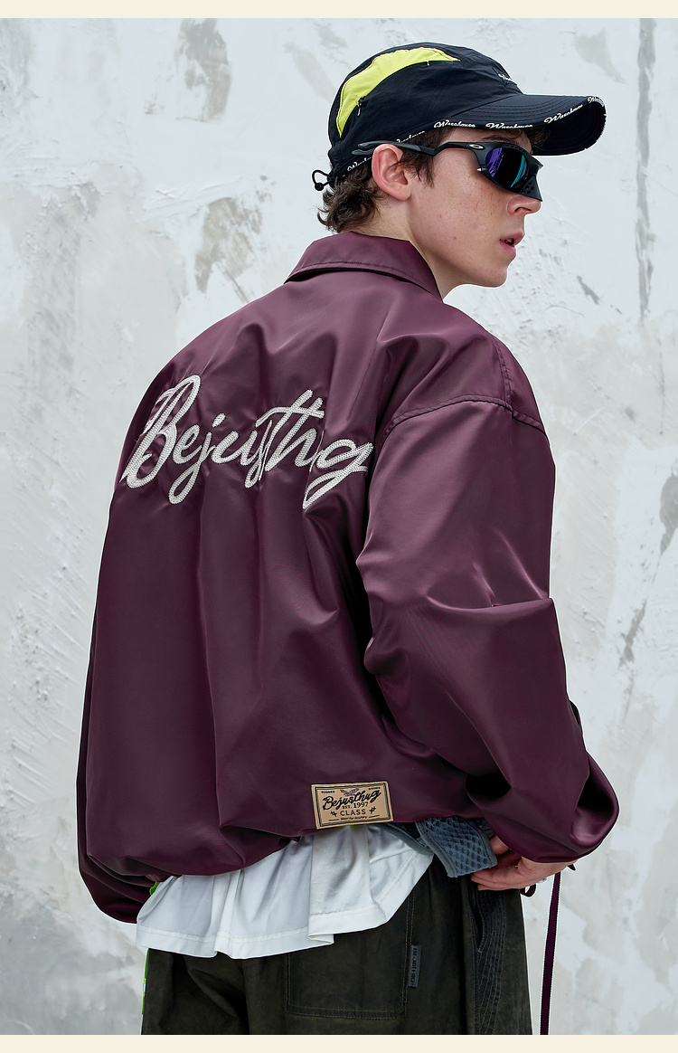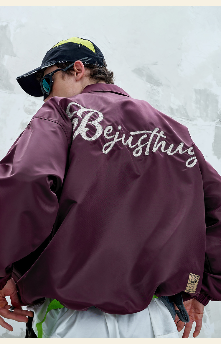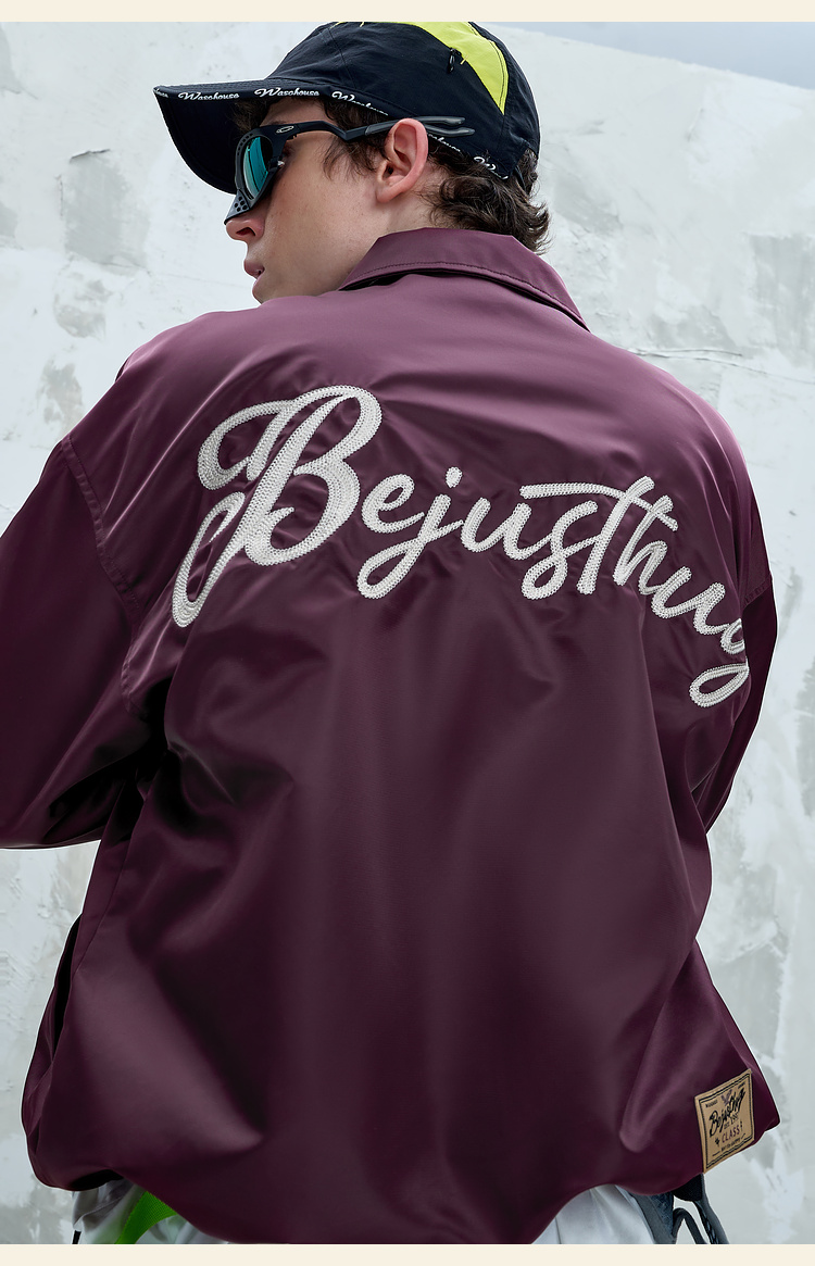 BJHG不计后果美式复古外套男女款秋季新款刺绣棒球服教练夹克外套